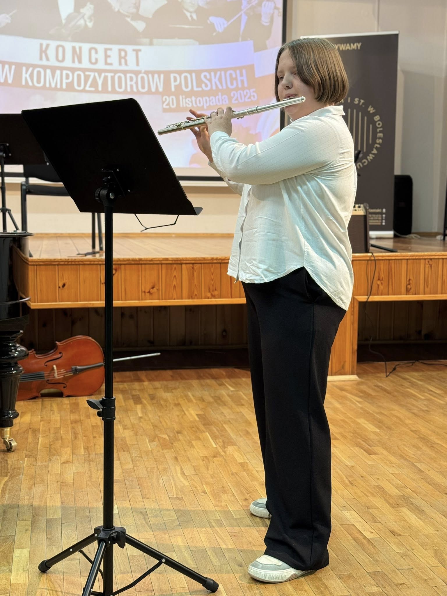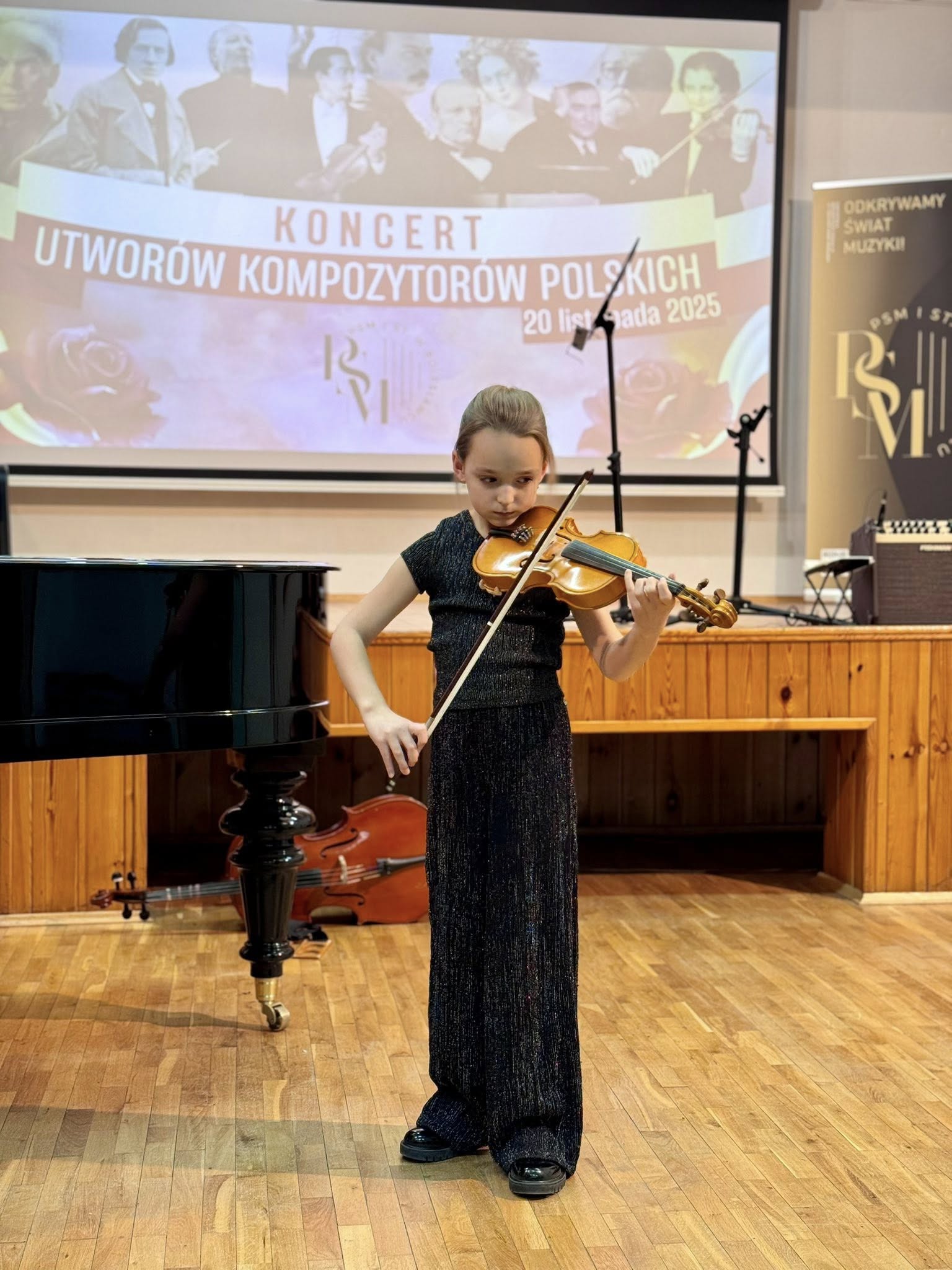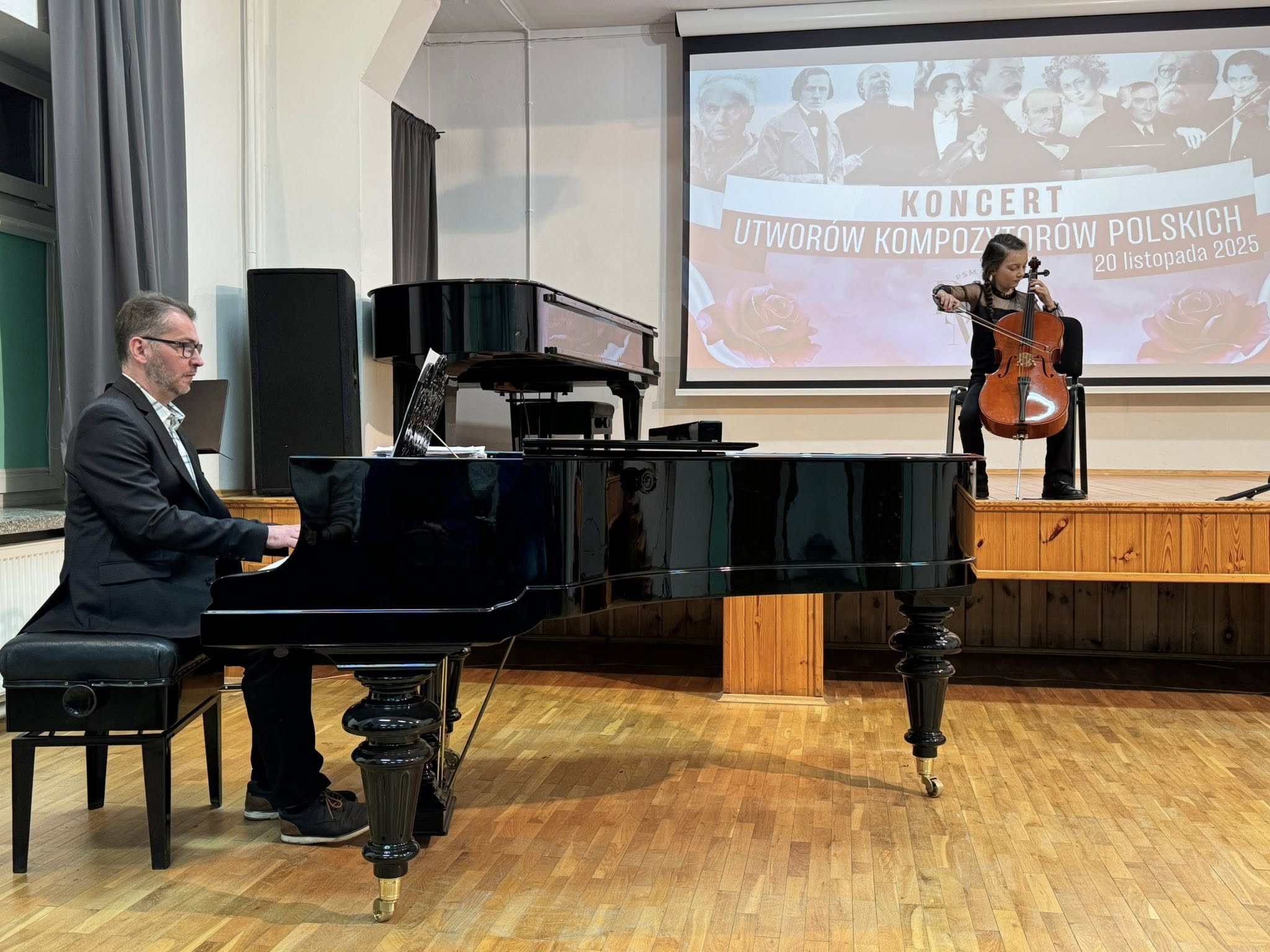 Koncert poprowadziła Pani Dorota Straburzyńska. Usłyszeliśmy m.in. kompozycje Antoniego Cofalika, Witolda Lutosławskiego, Fryderyka Chopina, Mirosława Gąsieńca, Janiny Garści, Henryka Wieniawskiego oraz Wojciecha Kilara — twórców, którzy od lat budują i współtworzą niezwykle różnorodny krajobraz muzycznej kultury Polski. To właśnie dzięki nim możemy cieszyć się dziedzictwem pełnym pasji, melodyjności, tradycji i odwagi artystycznej.