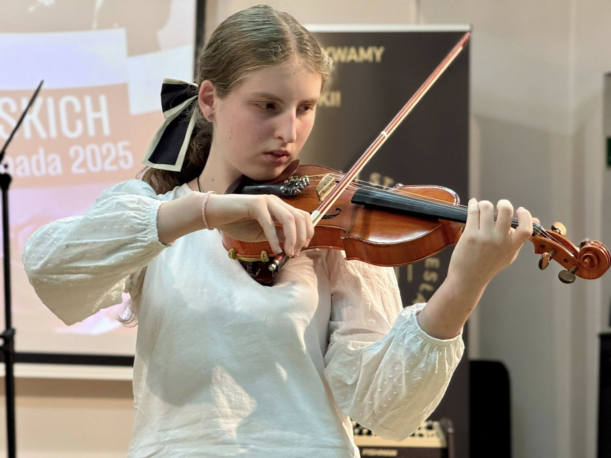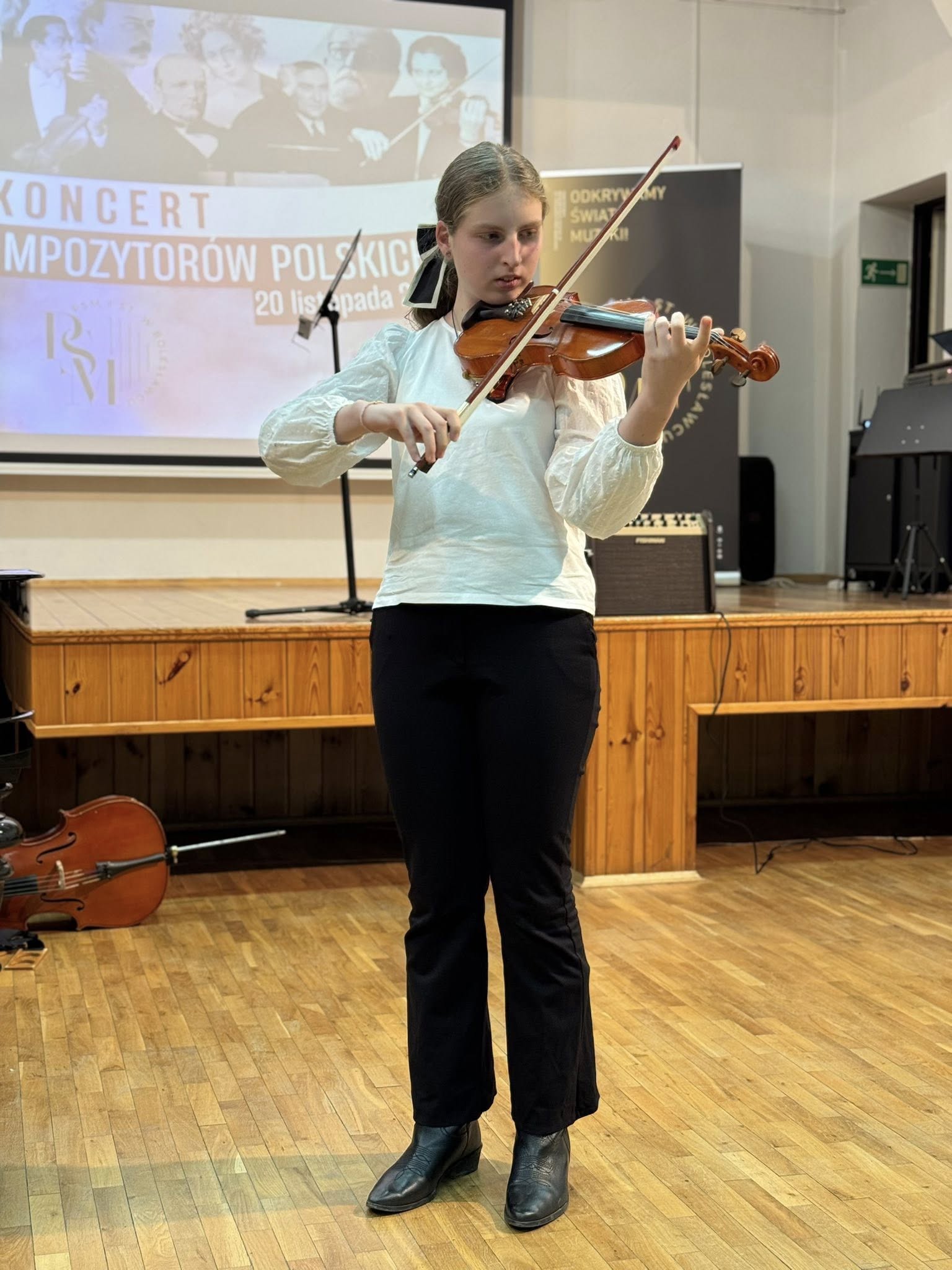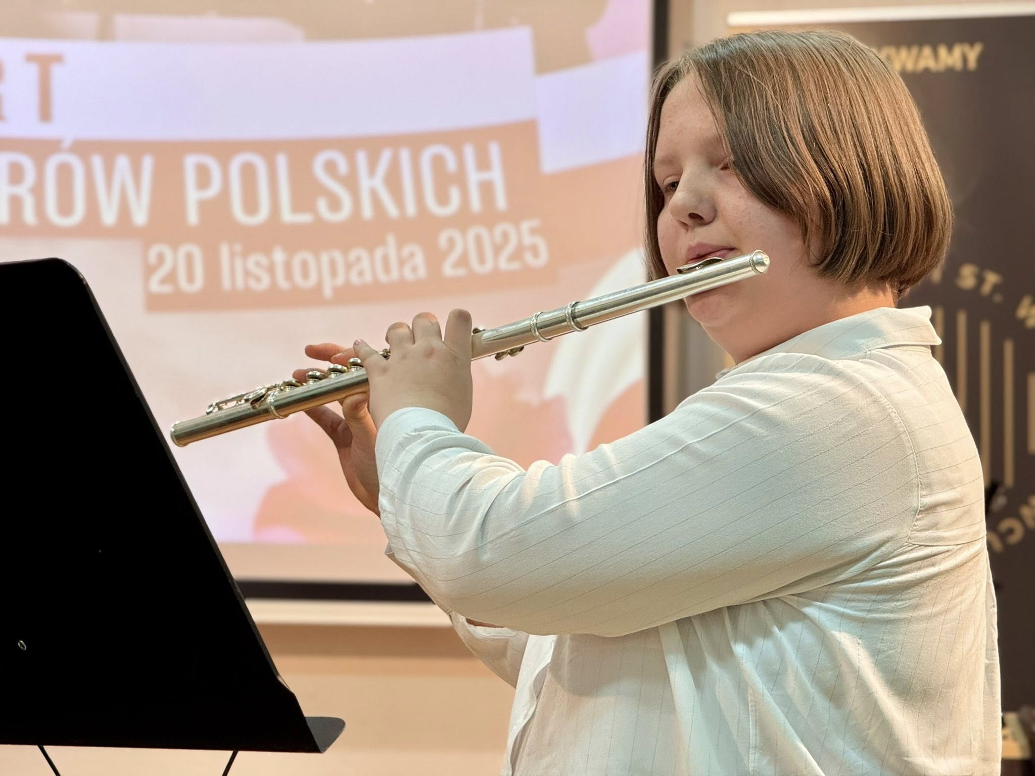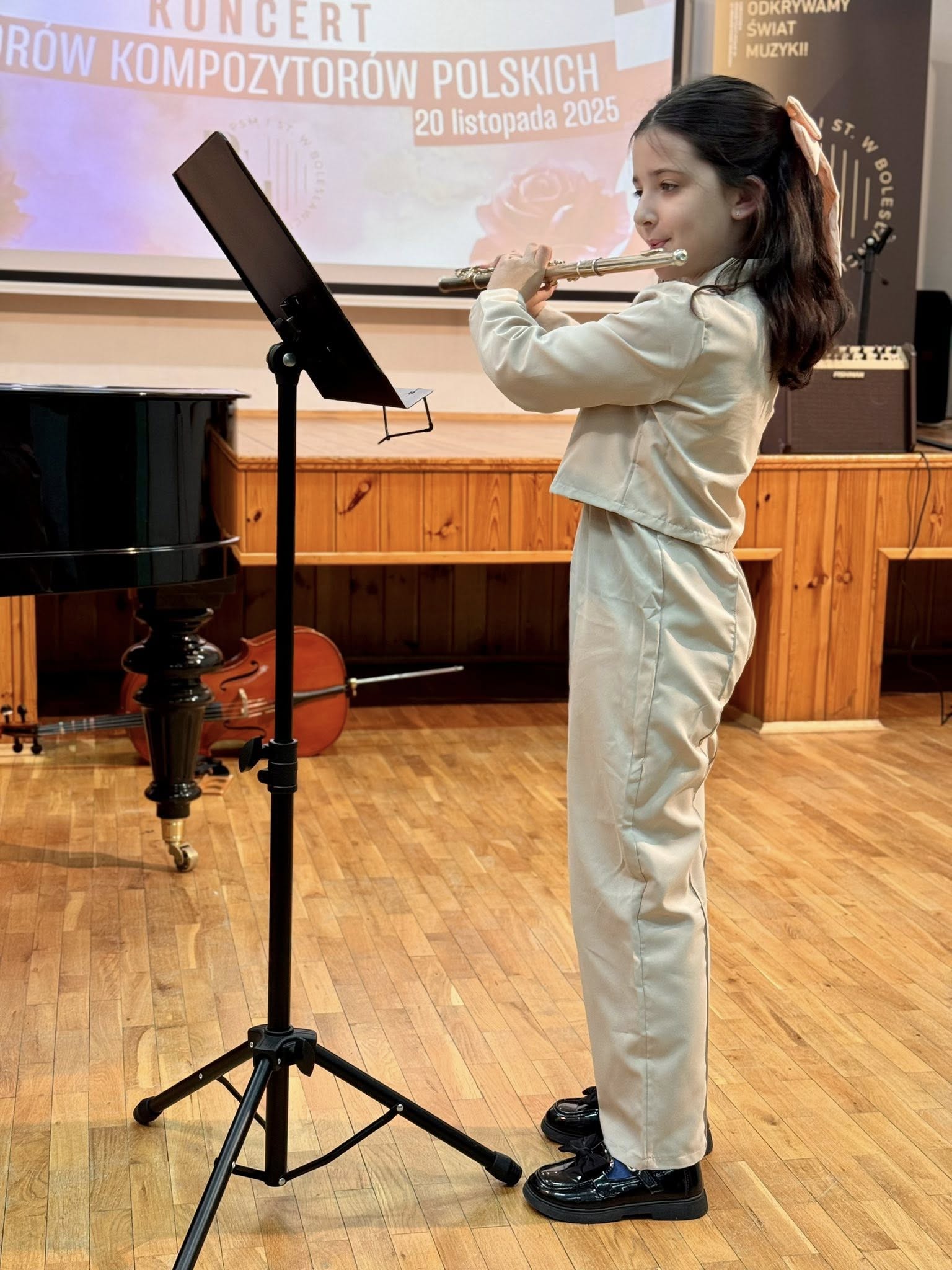 Koncert poprowadziła Pani Dorota Straburzyńska. Usłyszeliśmy m.in. kompozycje Antoniego Cofalika, Witolda Lutosławskiego, Fryderyka Chopina, Mirosława Gąsieńca, Janiny Garści, Henryka Wieniawskiego oraz Wojciecha Kilara — twórców, którzy od lat budują i współtworzą niezwykle różnorodny krajobraz muzycznej kultury Polski. To właśnie dzięki nim możemy cieszyć się dziedzictwem pełnym pasji, melodyjności, tradycji i odwagi artystycznej.