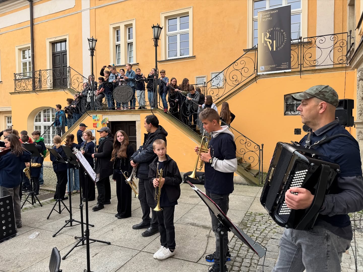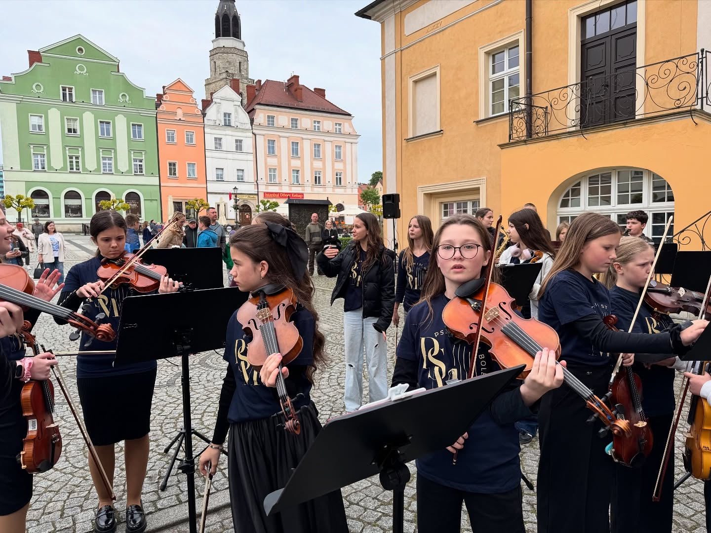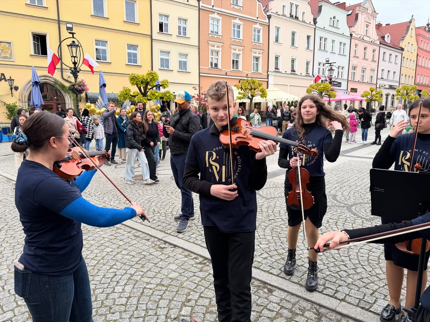 . Dźwiękowe wydarzenie przygotowane specjalnie na tę okazję przez uczniów i nauczycieli Państwowej Szkoły Muzycznej I st. w Bolesławcu. Był to wyjątkowy flash mob, czyli w dużej mierze improwizowana, muzyczna akcja, która dostarczyła mieszkańcom wyjątkowych wrażeń, a naszym uczestnikom niezapomnianych doświadczeń. Wysłuchaliśmy dźwięków gitary, perkusji, chóru i orkiestry. To pierwsze takie wydarzenie w historii Bolesławca!