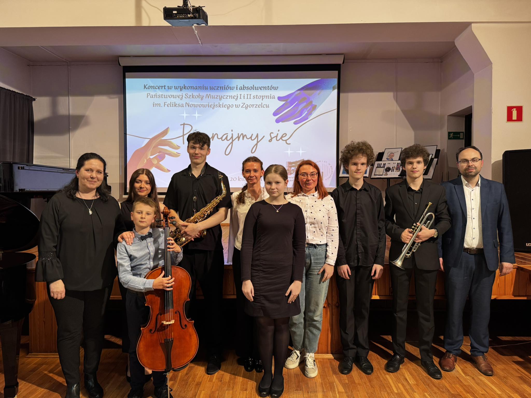 Publiczność miała okazję nie tylko wysłuchać prezentacji uczniów zgorzeleckiej szkoły muzycznej, ale również naszych absolwentów, którzy kontynuują swoją edukację w szkole muzycznej II stopnia. Wśród nich szczególnie wyróżniły się Alicja Śmigalska-Klepaczek (absolwentka z klasy fortepianu pani Halyny Hachak w I stopniu, a obecnie uczennica pani Lilii Tarasenko w II stopniu) oraz Maja Mikołajewska (uczennica z klasy wiolonczeli pani Doroty Straburzyńskiej zarówno w bolesławieckiej, jak i obecnie w zgorzeleckiej szkole muzycznej) – jesteśmy z Was ogromnie dumni!