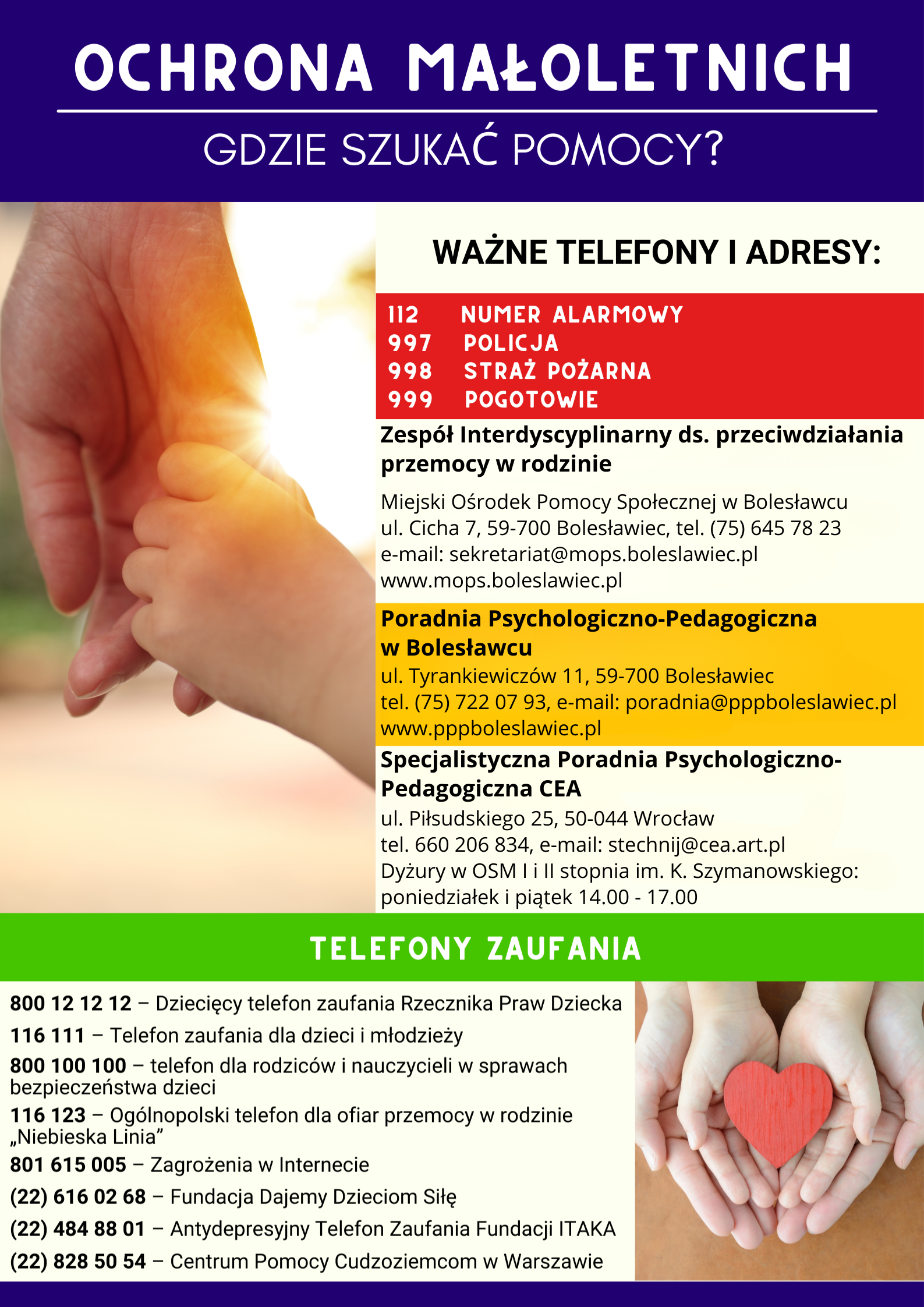 - małoletni wiedzą, do kogo się zwracać i prosić o pomoc w sytuacjach dla nich trudnych;
