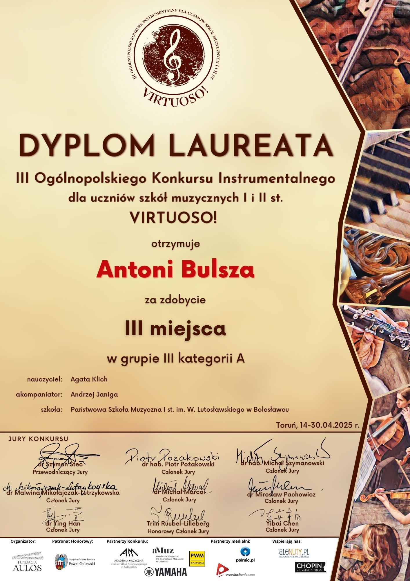 na VII Międzynarodowym Konkursie Muzycznym „OPUS 2025”,