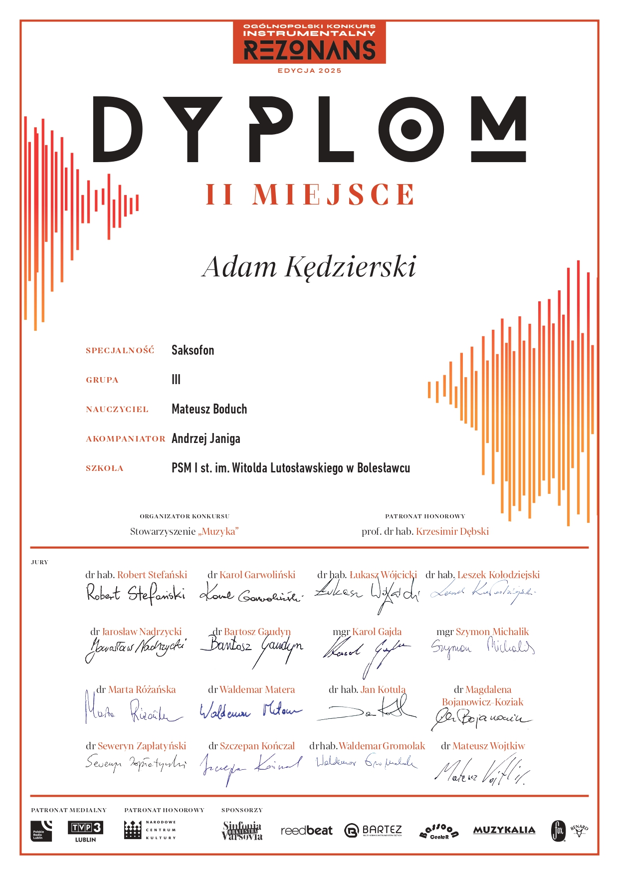w Ogólnopolskim Konkursie Instrumentalnym REZONANS (edycja 2025)