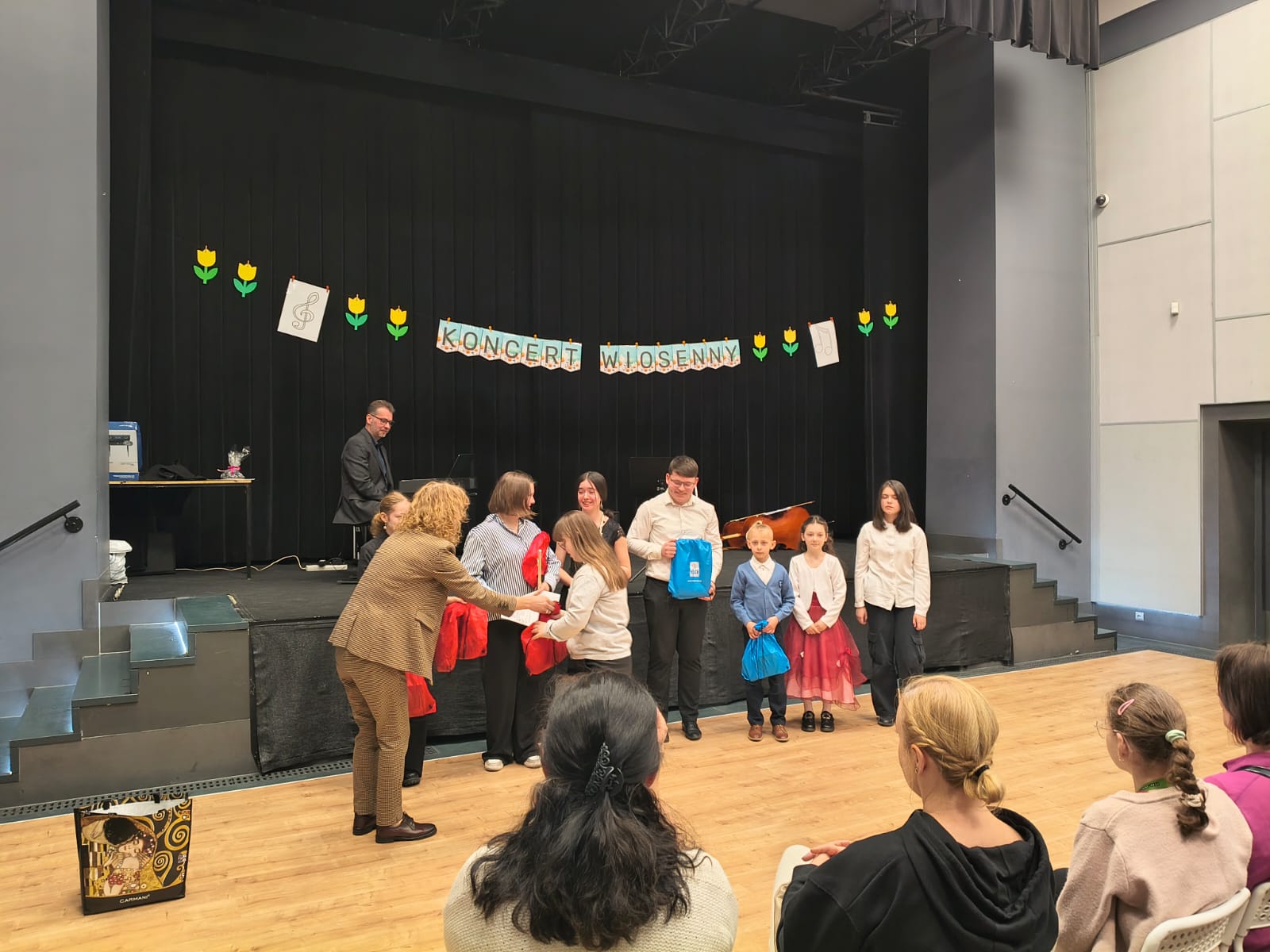Wspaniała akustyka sali oraz pełna skupienia publiczność sprawiły, że był to naprawdę wyjątkowy koncert. Nasi młodzi artyści zostali nagrodzeni nie tylko brawami, ale również drobnymi upominkami
