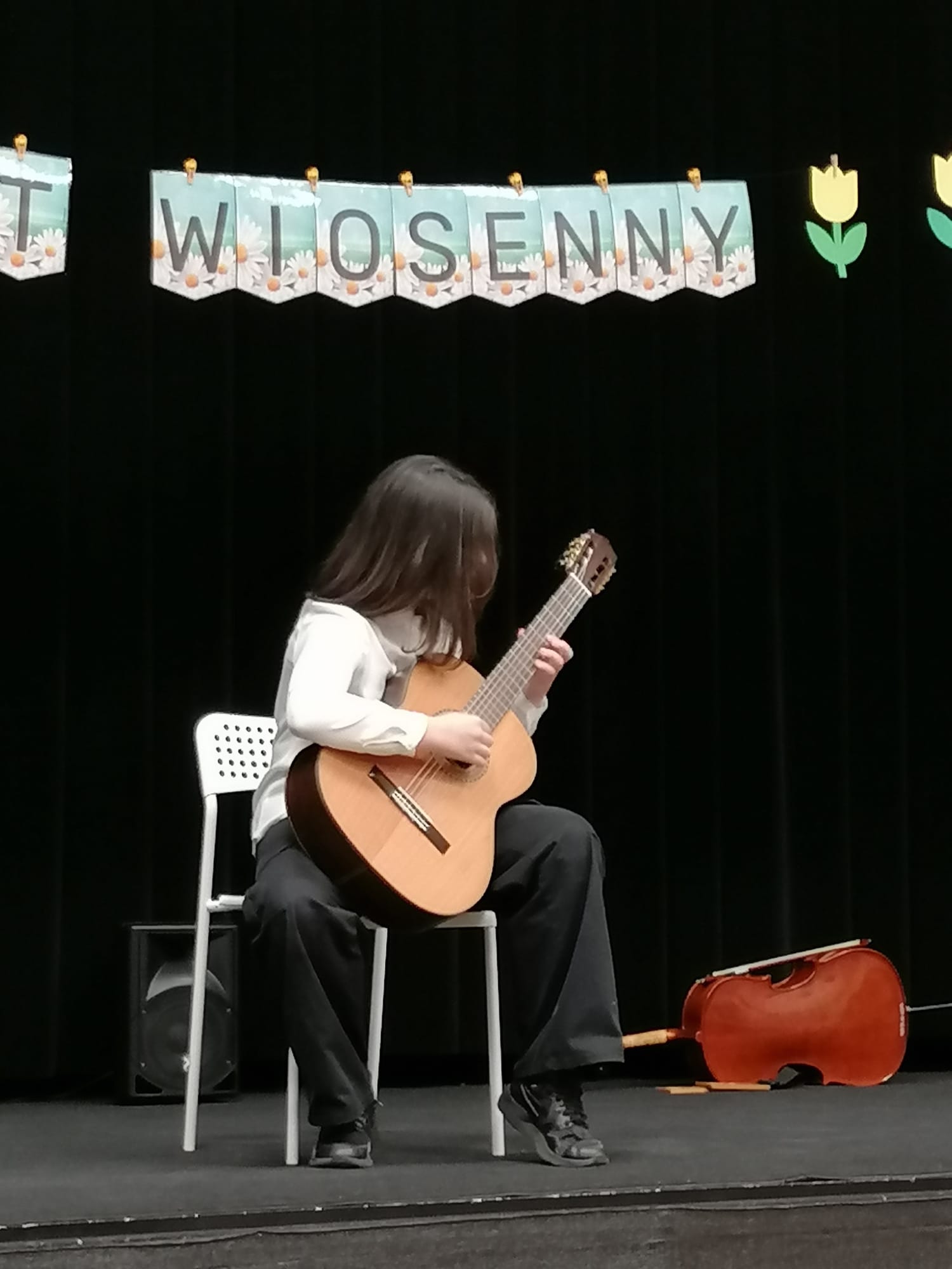 Na scenie zaprezentowali się nasi utalentowani uczniowie, którzy oczarowali słuchaczy grą na różnych instrumentach: