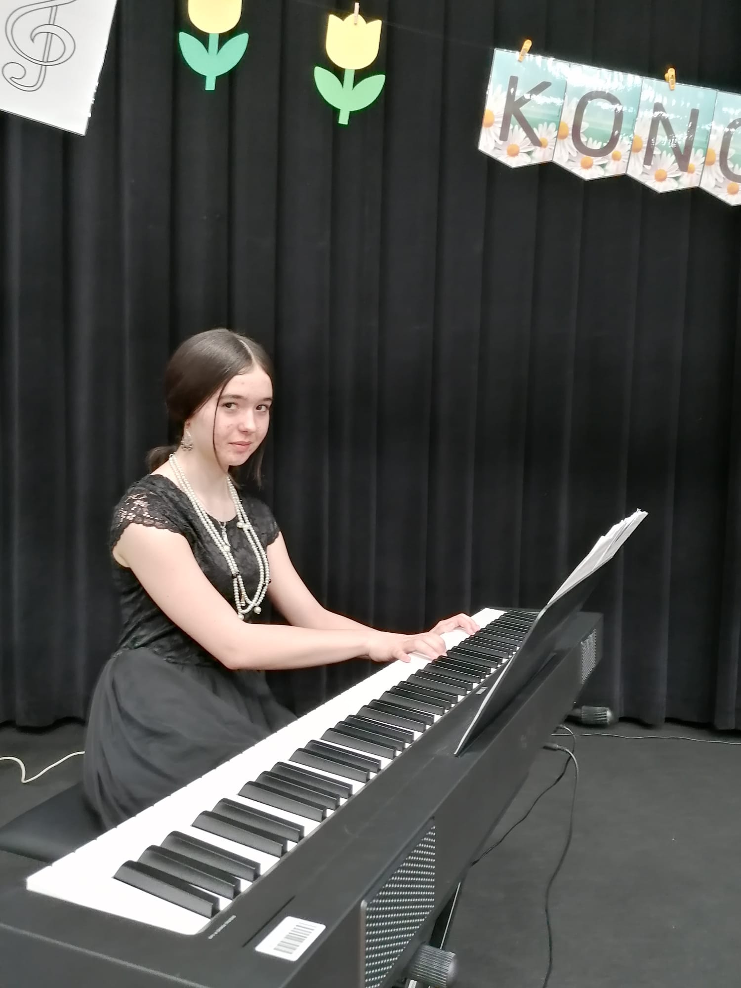 Akompaniament fortepianowy zapewnił pan Szymon Grab, tworząc piękne muzyczne tło dla wszystkich występów.