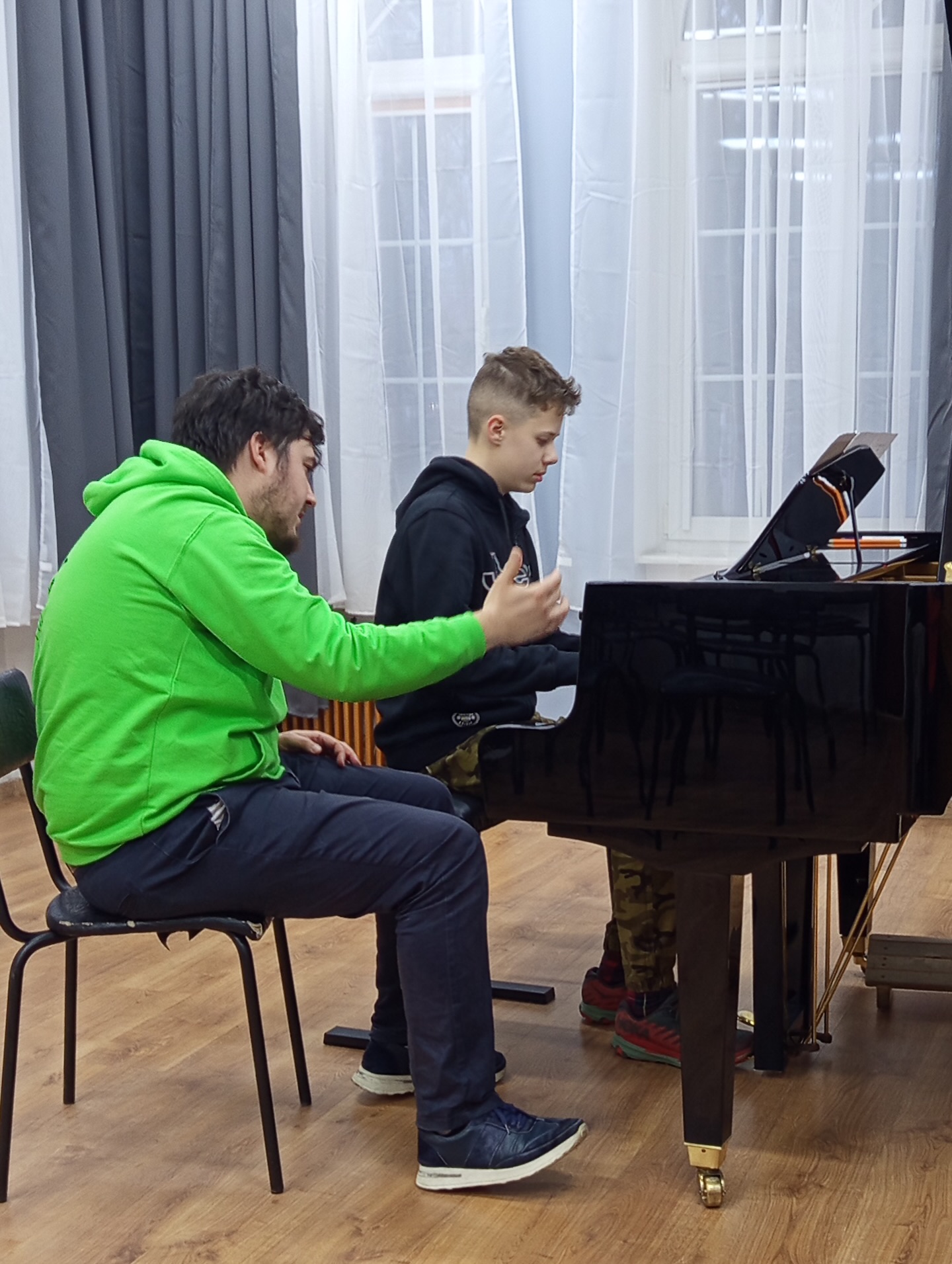 Serdecznie dziękujemy Panu Michałowi za poprowadzenie tych cennych zajęć oraz za wszystkie wskazówki dotyczące doskonalenia aparatu gry. Jesteśmy przekonani, że zdobyte doświadczenia i konsultacje w znacznym stopniu przyczynią się do dalszego rozwoju artystycznego naszych młodych muzyków.