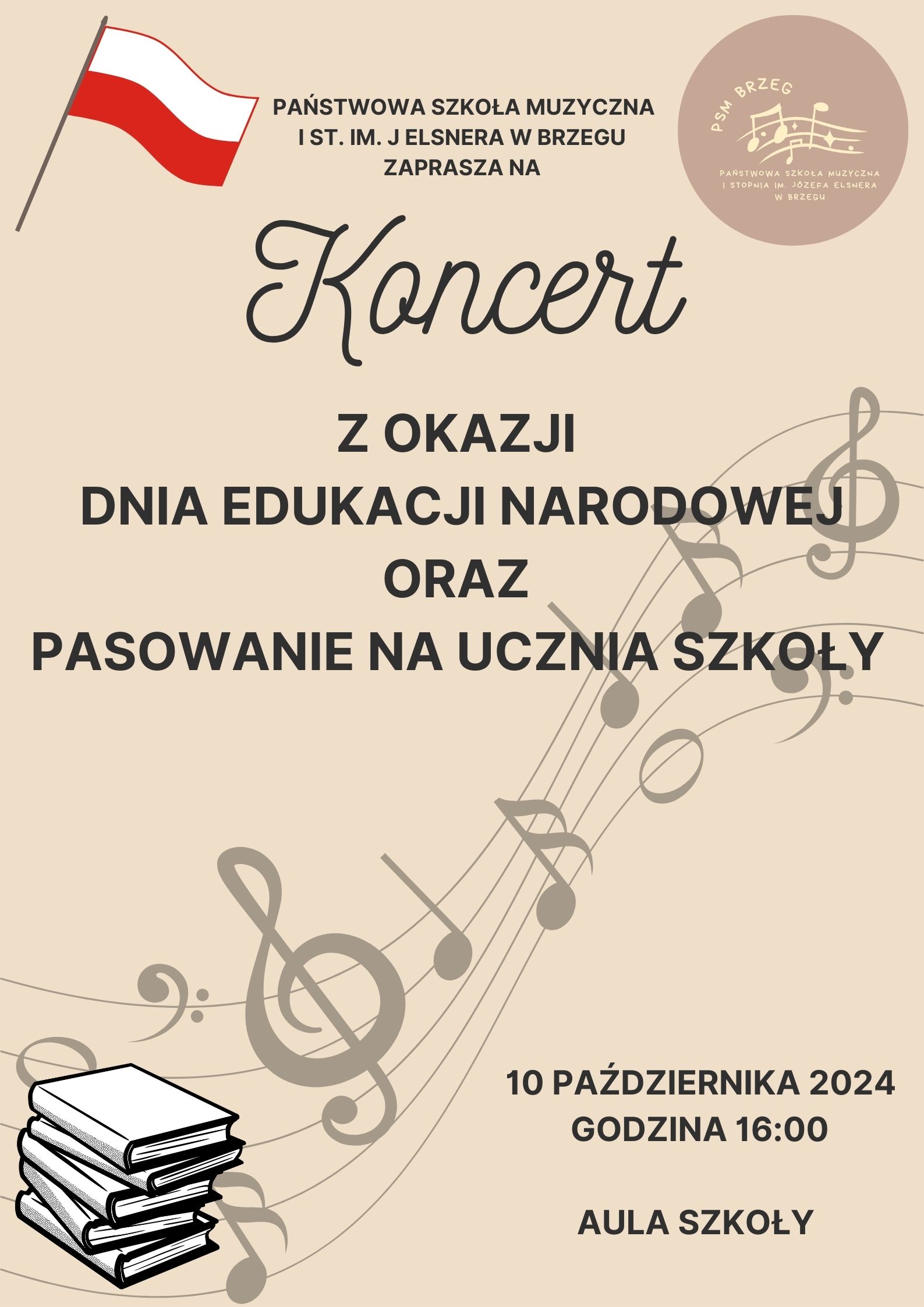 Koncert oraz pasowanie odbędzie się 10 października 2024 o godz. 16:00 w auli szkoły.