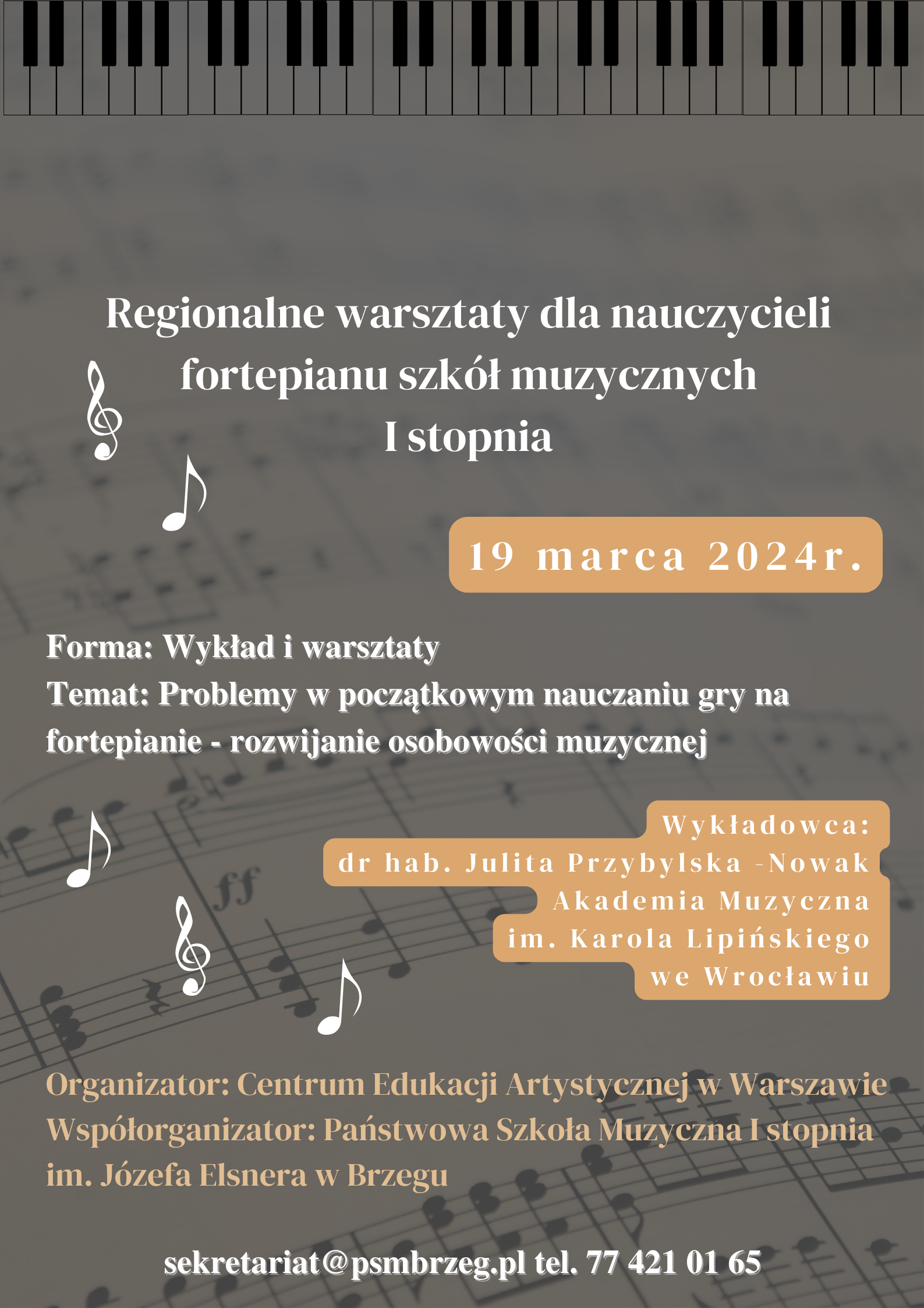 Dyrektor Państwowej Szkoły Muzycznej I stopnia im. Józefa Elsnera w Brzegu zaprasza na Regionalne warsztaty dla nauczycieli fortepianu.
