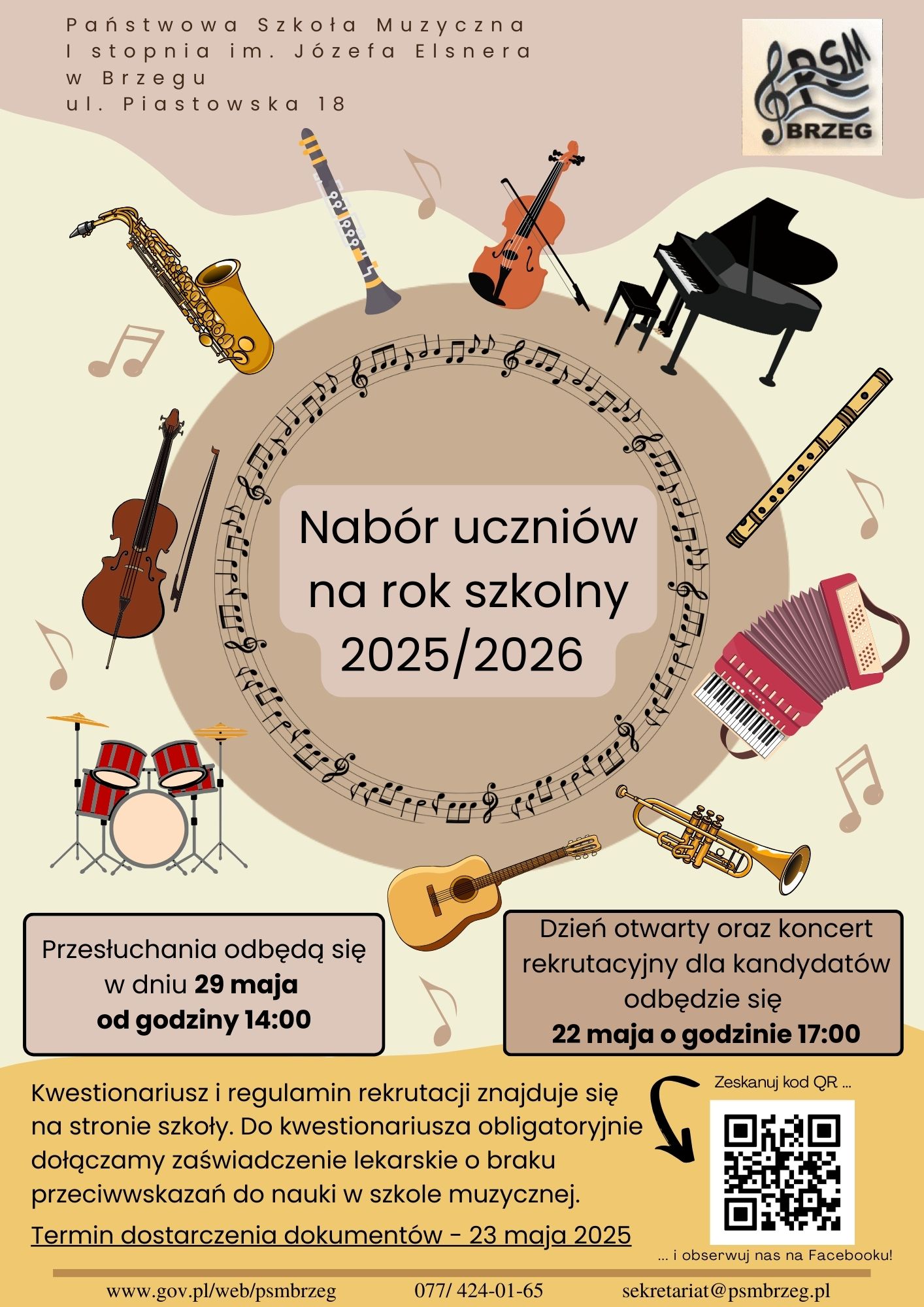 Serdecznie zapraszamy wszystkich chętnych kandydatów do nauki w Państwowej Szkole Muzycznej I stopnia w Brzegu