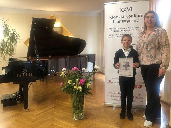 Nasz pierwszoklasista Artur Słuja z klasy fortepianu pani Iriny Yakymets na XXVI Kłodzkim Konkursie Pianistycznym I International Kłodzko Piano Competition, który odbył się w piatek 17 maja 2024 r., otrzymał wyróżnienie. Serdecznie gratulujemy i cieszymy się kolejnym sukcesem!