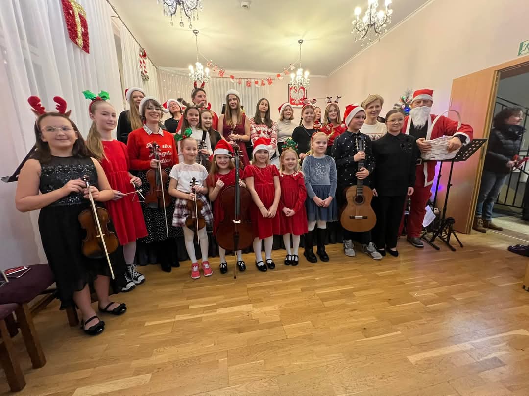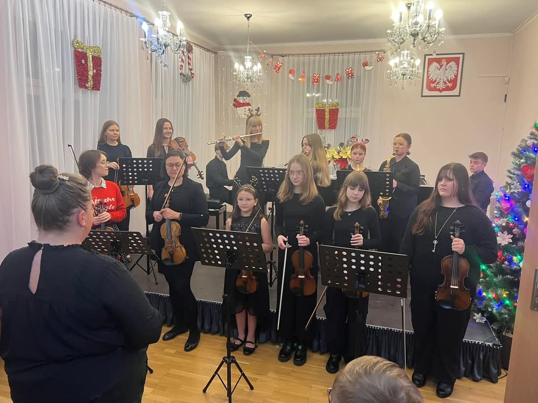Podczas wyjątkowego, charytatywnego koncertu mikołajkowego zaprezentowali się soliści, zespoły instrumentalne i orkiestra szkolna pod kierownictwem pani Agnieszki Dubik. Licznie zgromadzona publiczność miała okazję wysłuchać różnorodnego repertuaru, a świąteczne akcenty wprowadziły wszystkich w magiczny nastrój.
