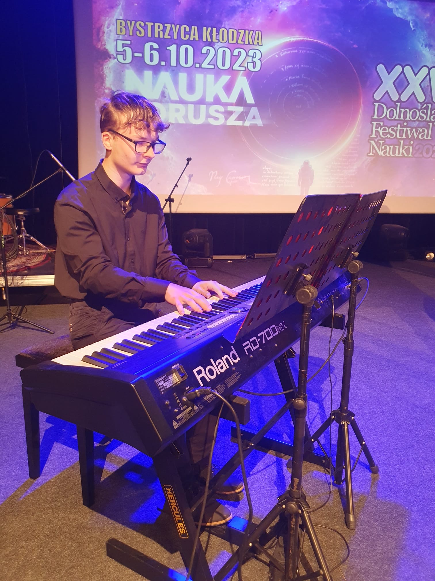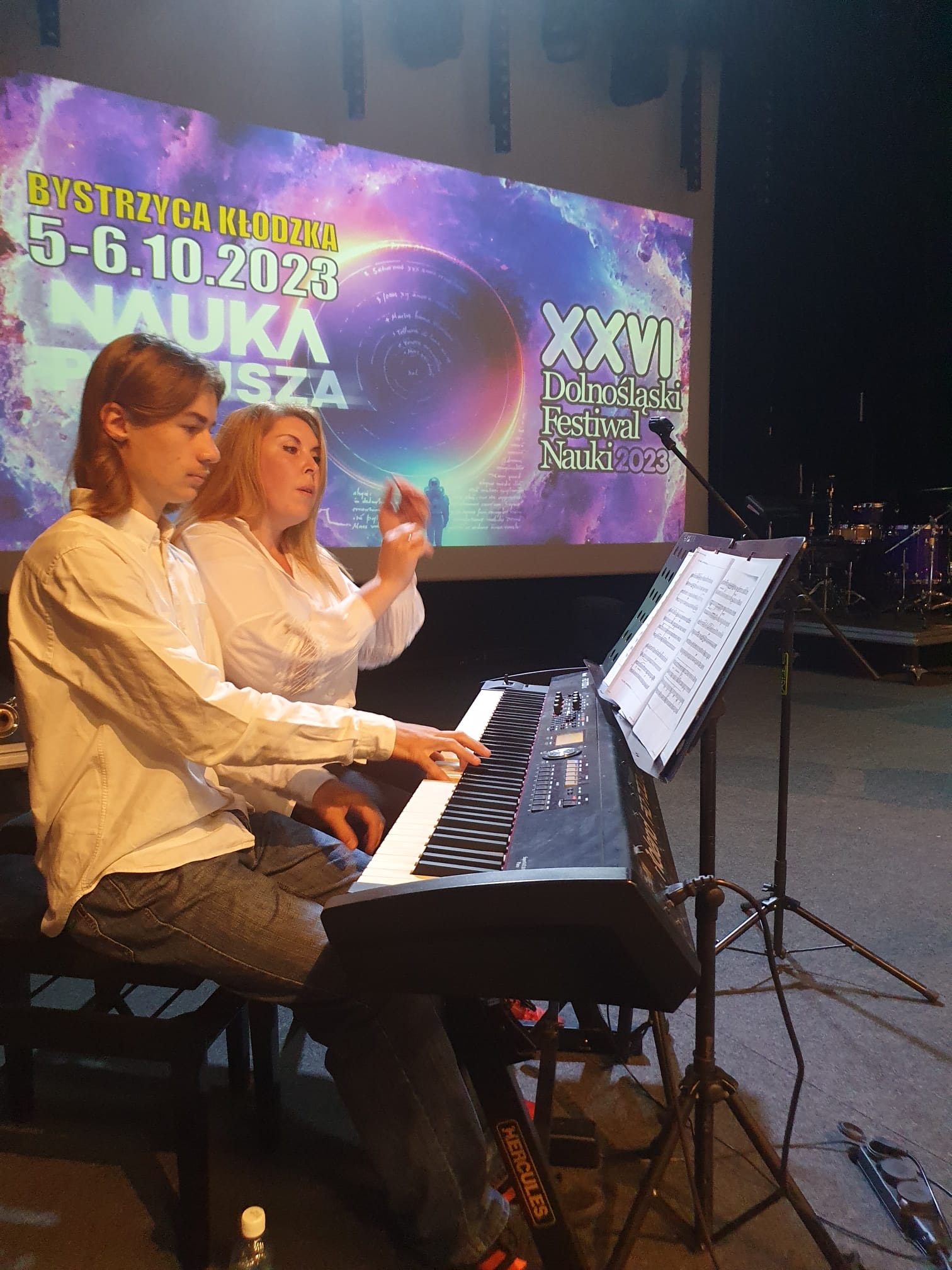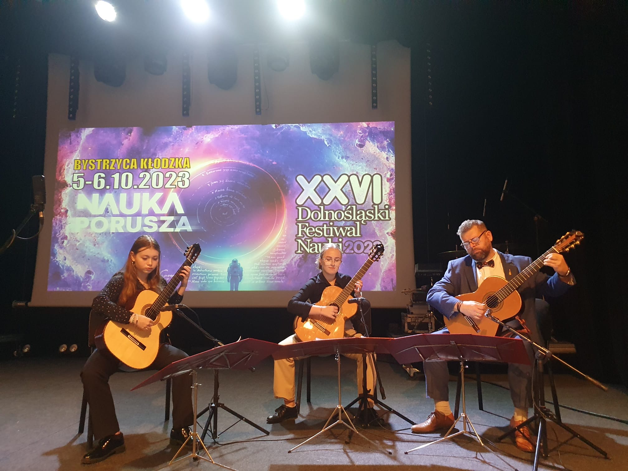 6 października 2023 uczniowie i nauczyciele naszej szkoły wystąpili na koncercie w ramach Dolnośląskiego Festiwalu Nauki. Tegoroczna edycja tej imprezy, obejmującej wykłady, warsztaty i występy artystyczne, odbywa się pod hasłem "Nauka porusza". My staraliśmy się udowodnić, że muzyka też porusza - zarówno w sensie fizycznym, jak i emocjonalnym.