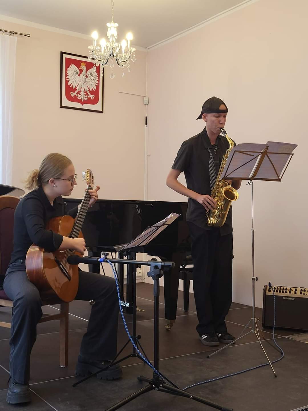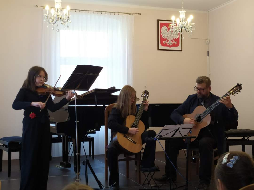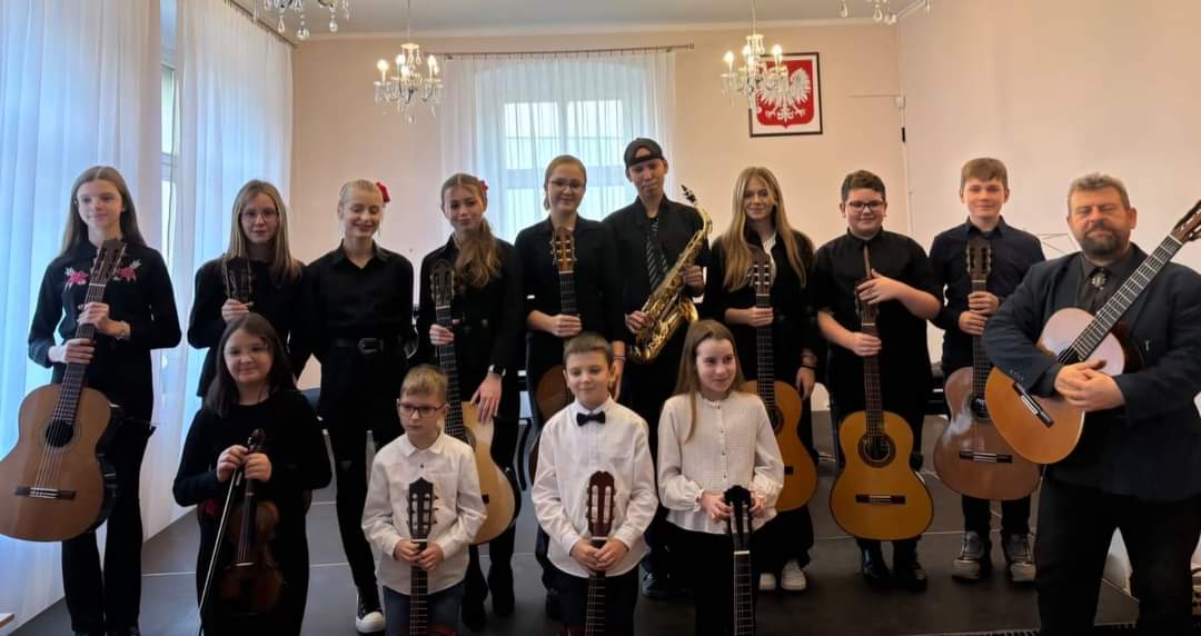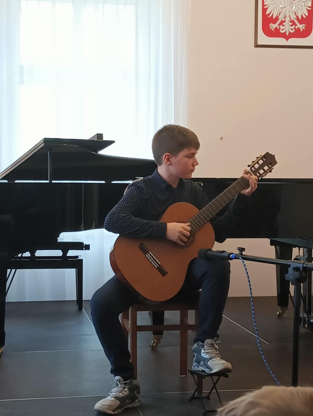 W sobotę 16 listopada br. w naszej szkole zaprezentowali się na szkolnej scenie uczniowie klasy gitary Witolda Kozakowskiego w koncercie pt. "Gitara w barwach jesieni". Wystąpili soliści oraz zespoły, także mniej typowe, np. fortepianowo-gitarowy czy gitarowo-saksofonowy. Wszyscy występujący byli solidnie przygotowani a liczna publiczność dziękowała młodym artystom głośnymi oklaskami. Gratulujemy wszystkim udanego koncertu!