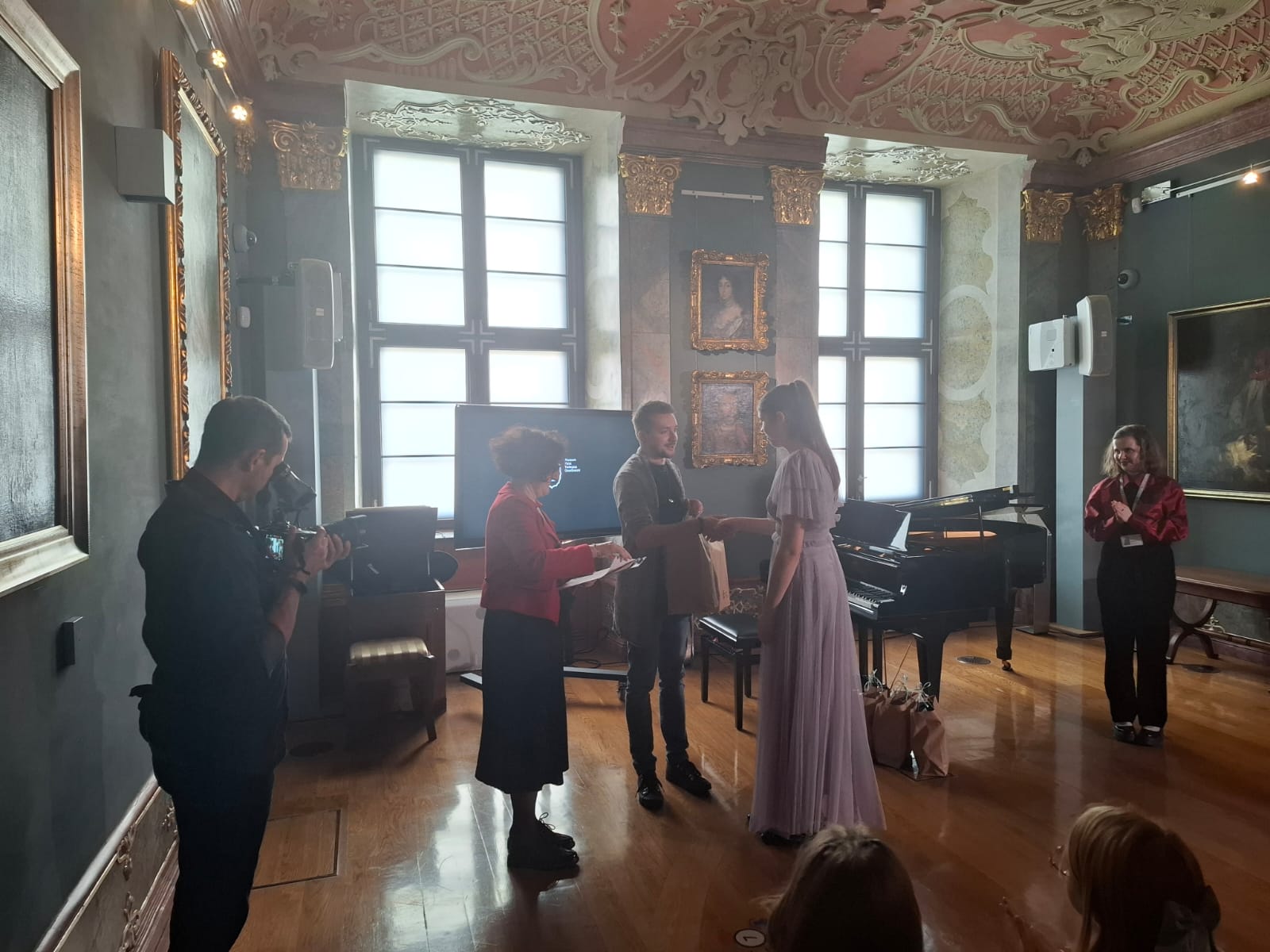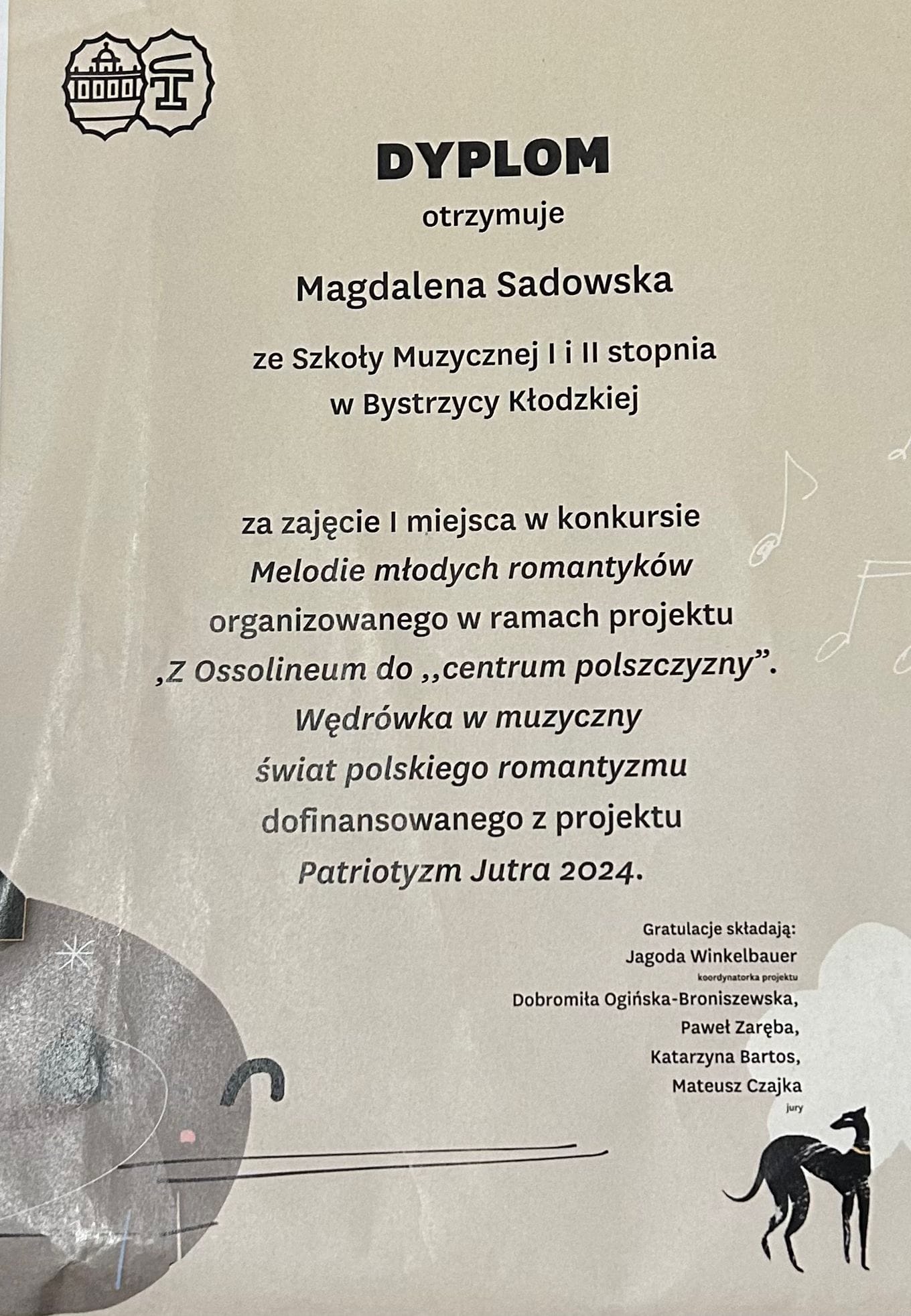 Uczniowie, którzy pojechali do Wrocławia pod opieką pani Iryny Yakymets, mieli okazję podziwiać występy laureatów konkursu "Melodie młodych romantyków". Było to tym milsze, że I nagrodę otrzymała nasza uczennica - Magdalena Sadowska z klasy pana Rafała Żurakowskiego. Wielkie gratulacje!