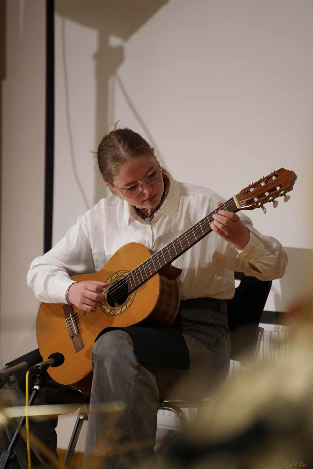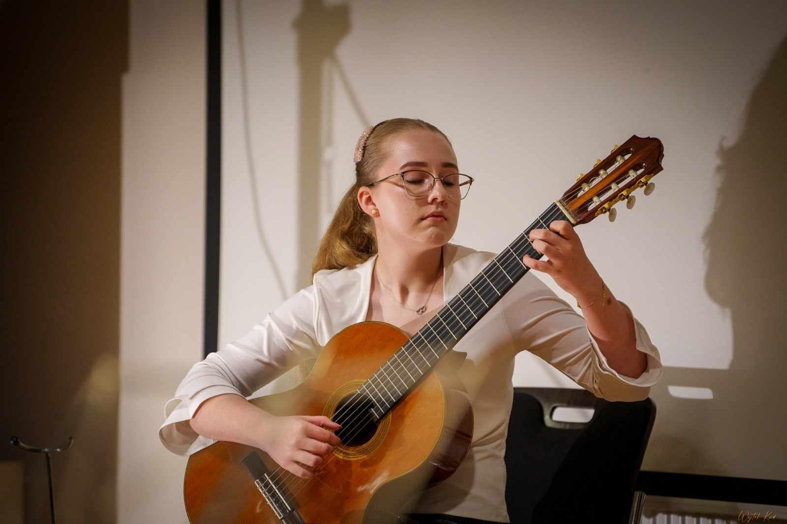 W sobotę 15 czerwca 2024 r. w Dusznikach-Zdroju odbył się IV Zlot Młodych Gitarzystów na Ziemi Kłodzkiej. Na tydzień przed wakacjami w chopinowskim kurorcie spotkali się uczniowie-gitarzyści z trzech szkół muzycznych: Bystrzycy Kłodzkiej, Kłodzka i Wałbrzycha. Z naszej szkoły w przedsięwzięciu wzięli udział: Blanka Jarzębska, Hanna Grudzień, Agata Słuja, Małgorzata Łapińska, Martyna Lubas, Karol Gwizdak, Szymon Borysiewicz i Gabriel Adamus. Uczniowie wystąpili na koncercie w Muzeum Papiernictwa, skorzystali z lekcji muzealnej I warsztatów czerpania papieru, pospacerowali po kurorcie z przewodnikiem, wysłuchali recitalu gitarowego Jagody Religi (wyróżniającej się ubiegłorocznej Absolwentki naszej szkoły) w sali im. Jana Webera w siedzibie Fundacji Międzynarodowych Festiwali Chopinowskich. Gratulujemy wszystkim uczniom udziału i zaangażowania!