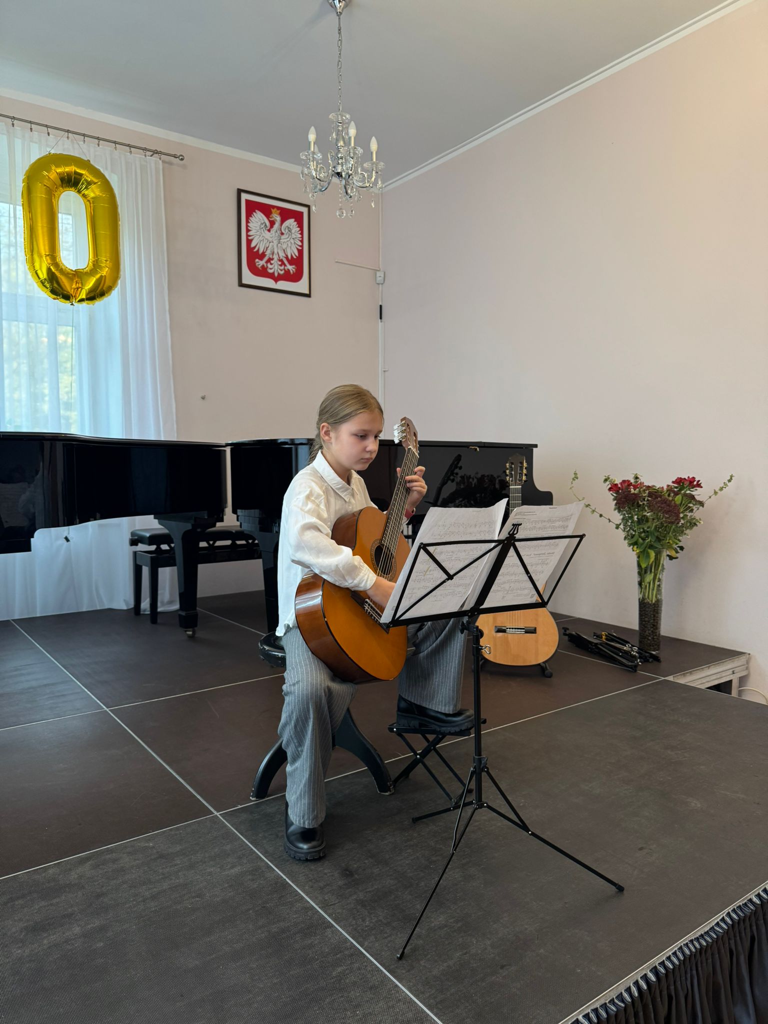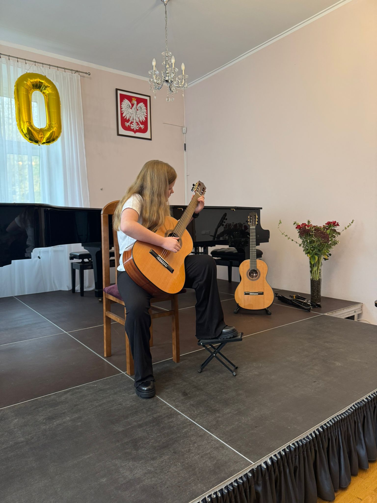 Uczniowie klas gitary p. Joanny Nowackiej i p. Justyny Dąbrowskiej wystąpili na scenie z utworami, nad którymi pilnie pracowali od początku września. Muzyka gitarowa z pewnością wprawiła publiczność w jesienny nastrój.