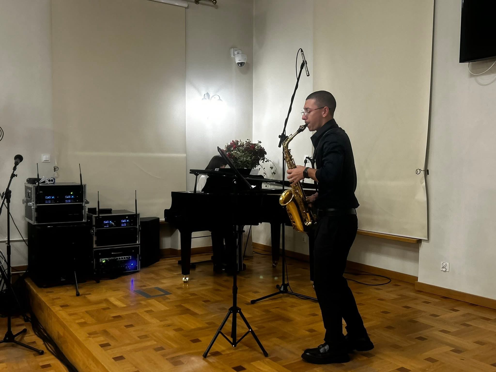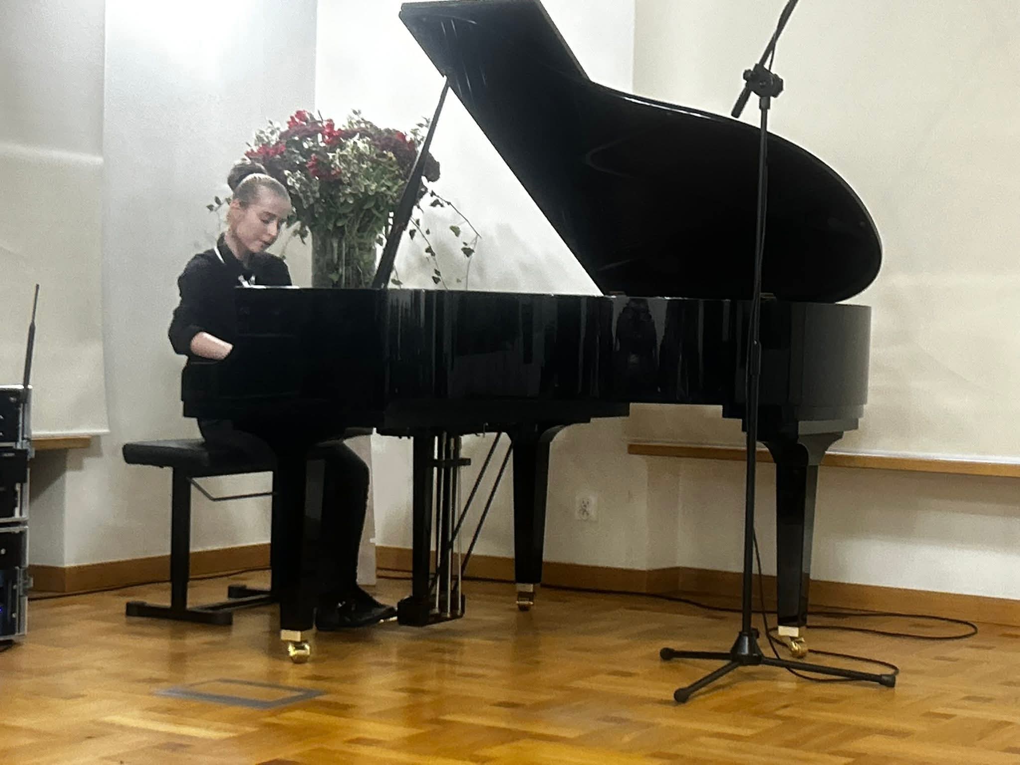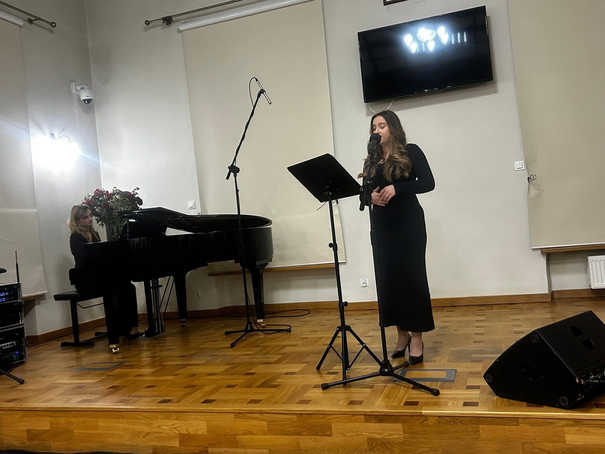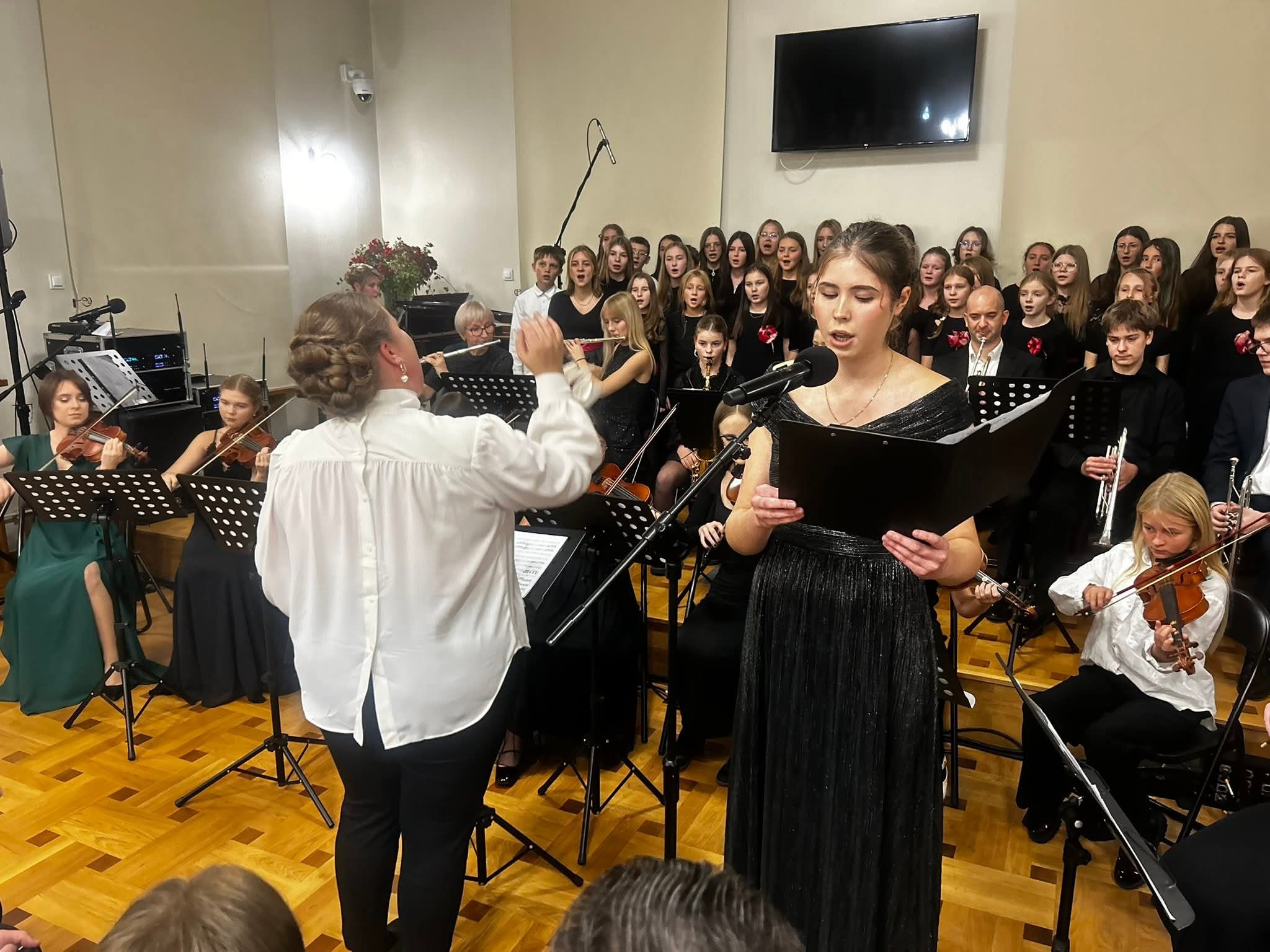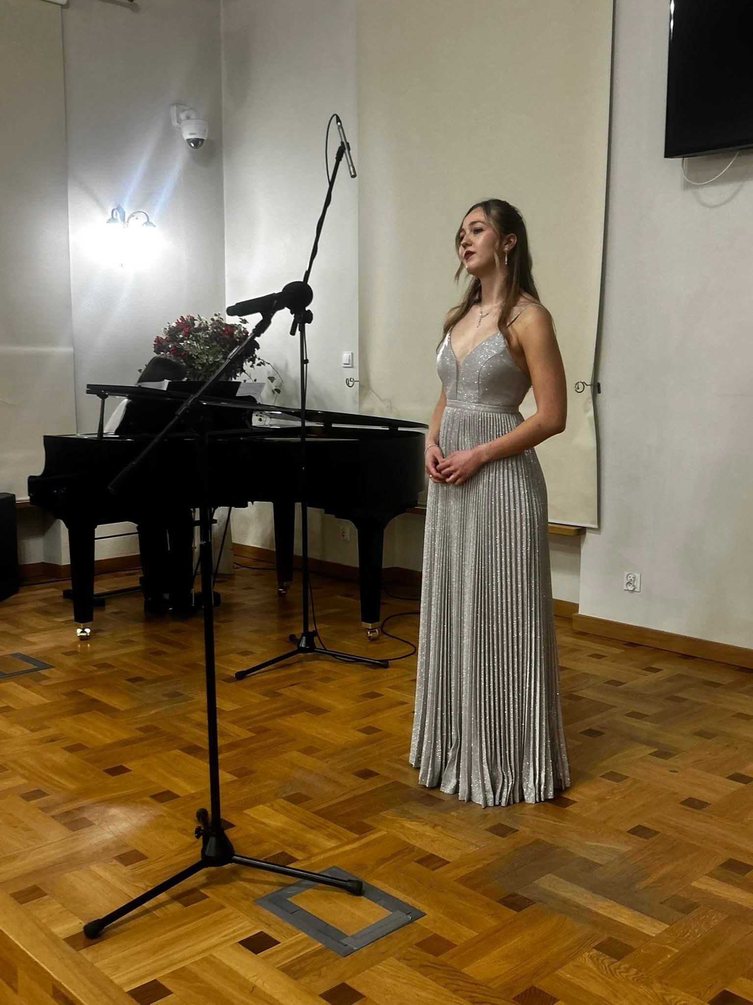 Zanim rozpoczął się jubileuszowy koncert, zgromadzeni obejrzeli jeszcze krótki film prezentujący historię i bieżącą działalność szkoły, w którym w roli lektorów wystąpili absolwenci: pan Bogdan Dmowski (rocznik 1971 i 1975) i Zuzanna Choińska (rocznik 2025).