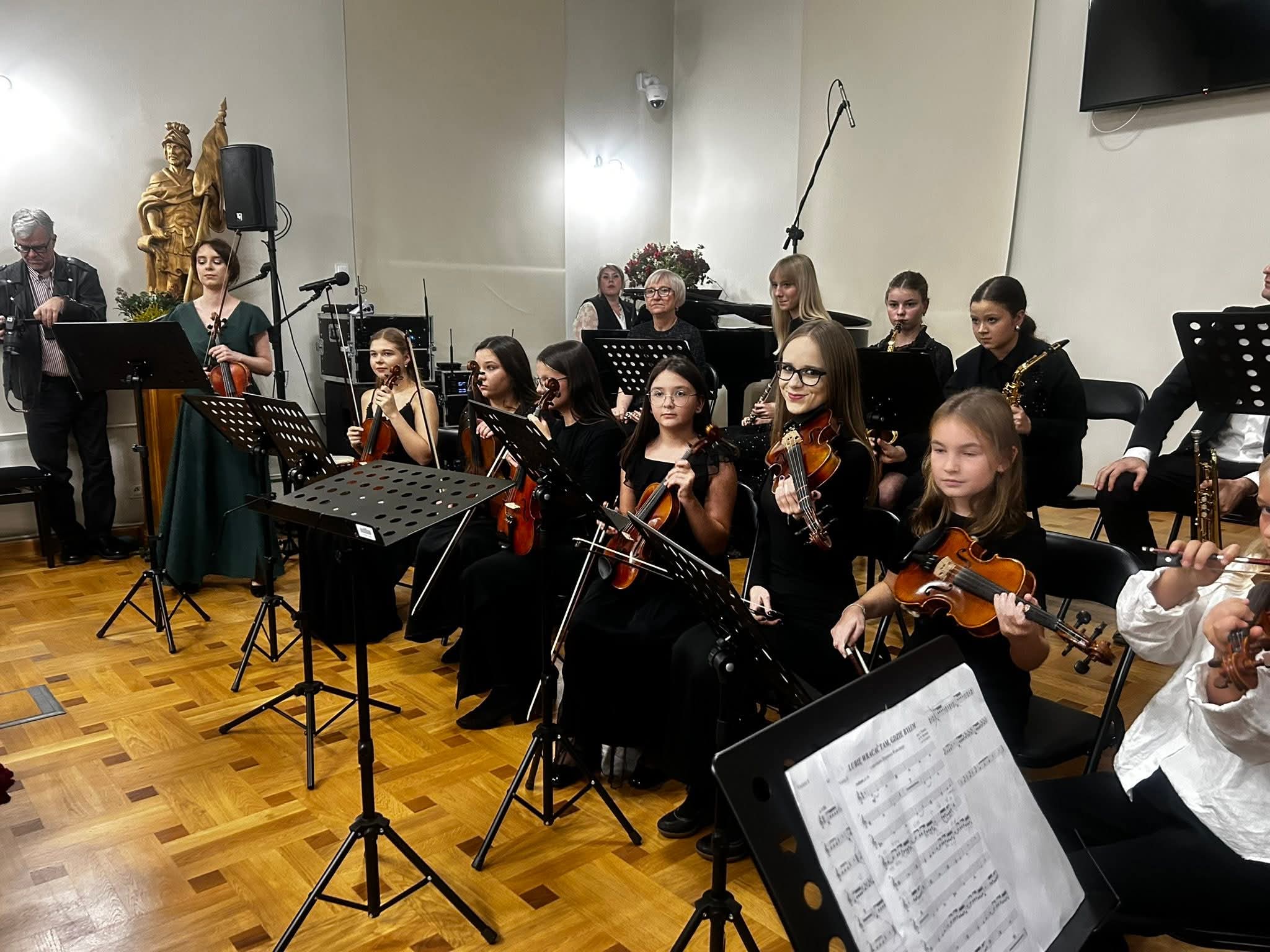 Podczas uroczystego koncertu zabrzmiały utwory wokalne i instrumentalne w wykonaniu uczniów, absolwentów oraz nauczycieli, co jest dowodem na to, że muzyka łączy pokolenia.