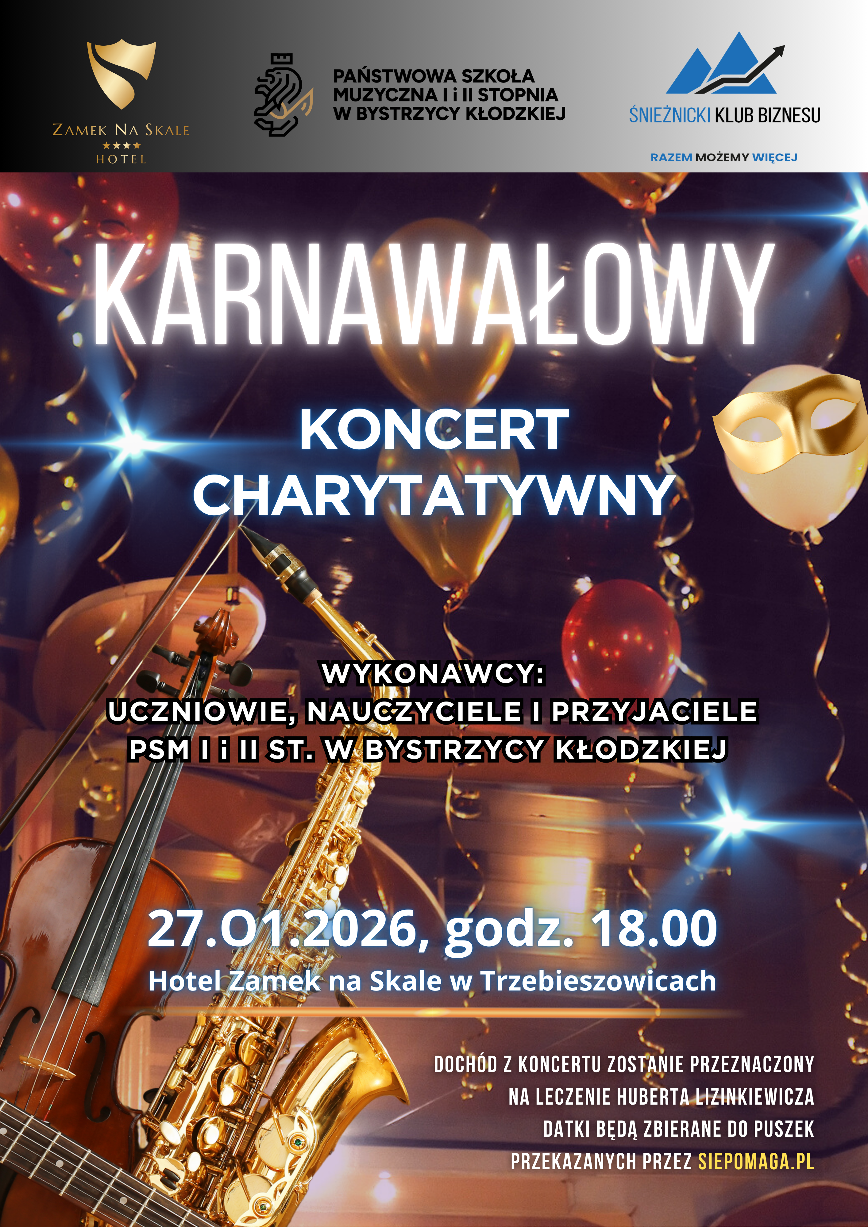 Mocnym akcentem kończymy pierwsze półrocze. 27 stycznia wraz z Hotelem "Zamek na Skale" zorganizowaliśmy charytatywny koncert karnawałowy.