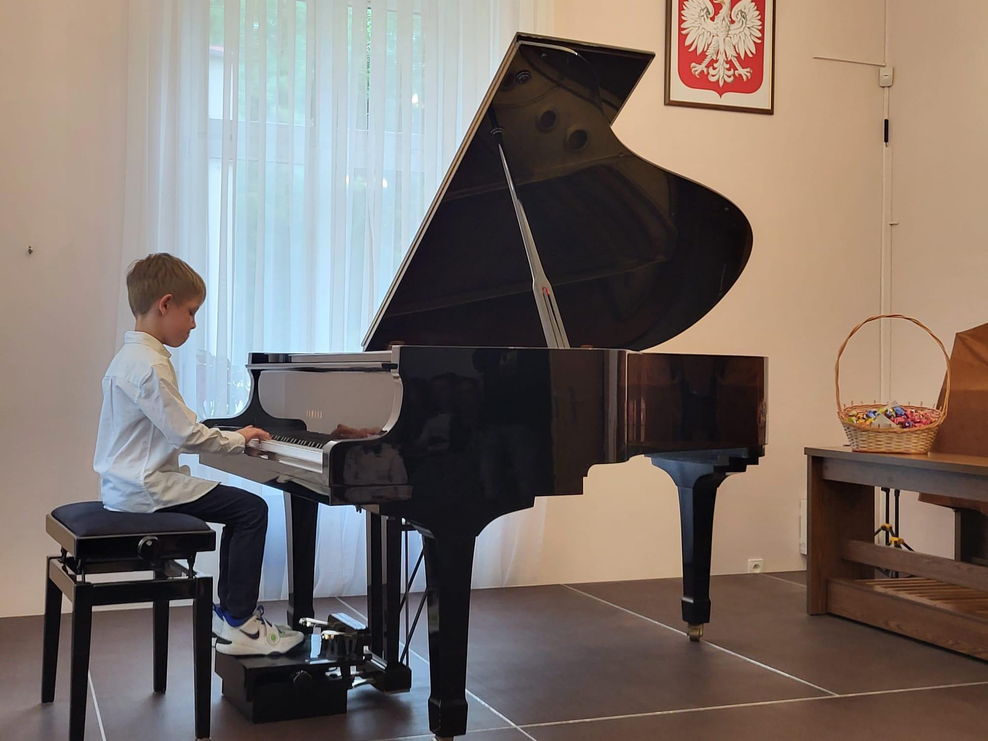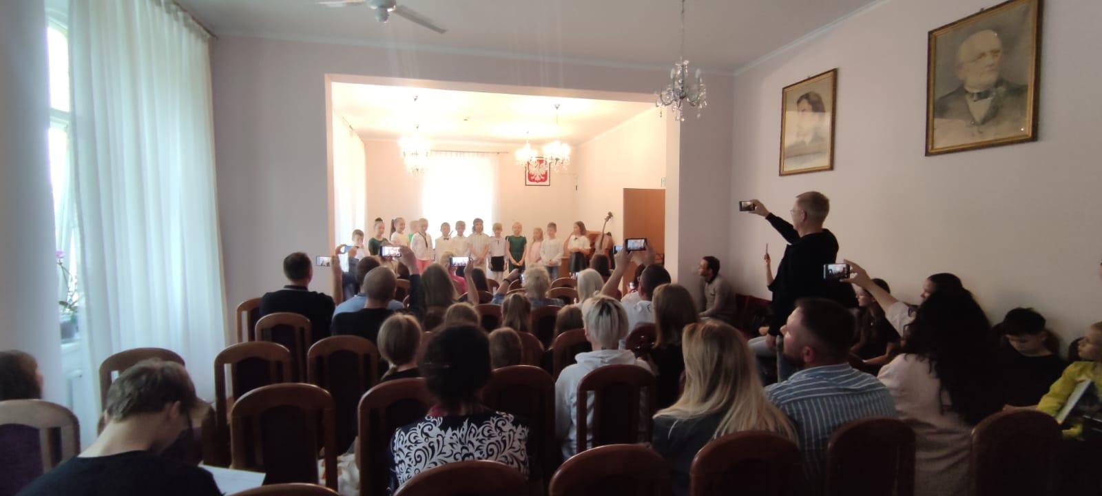 To ważny dzień i ważny koncert dla całej naszej społeczności szkolnej: Koncert Pierwszaków. Po blisko 9 miesiącach stawiania pierwszych kroków w świecie muzyki przyszedł czas na publiczną prezentację efektów pracy i ćwiczeń. Usłyszeliśmy pełnych zapału młodych akordeonistów, gitarzystów, skrzypków, pianistów i dwie... saksofonistki. Licznie zgromadzona publiczność z entuzjazmem oklaskiwała kolejnych występujących. Wszystkim przypadła też do gustu piosenka Jerzego Wasowskiego pomysłowo wykonana przez Pierwszoklasistów kształcących się w cyklu sześcioletnim. Gratulacje za piękny koncert wraz z życzeniami odkrywania radości muzykowania na kolejnych etapach kształcenia muzycznego w naszej szkole! Brawa dla uczniów, rodziców i nauczycieli!