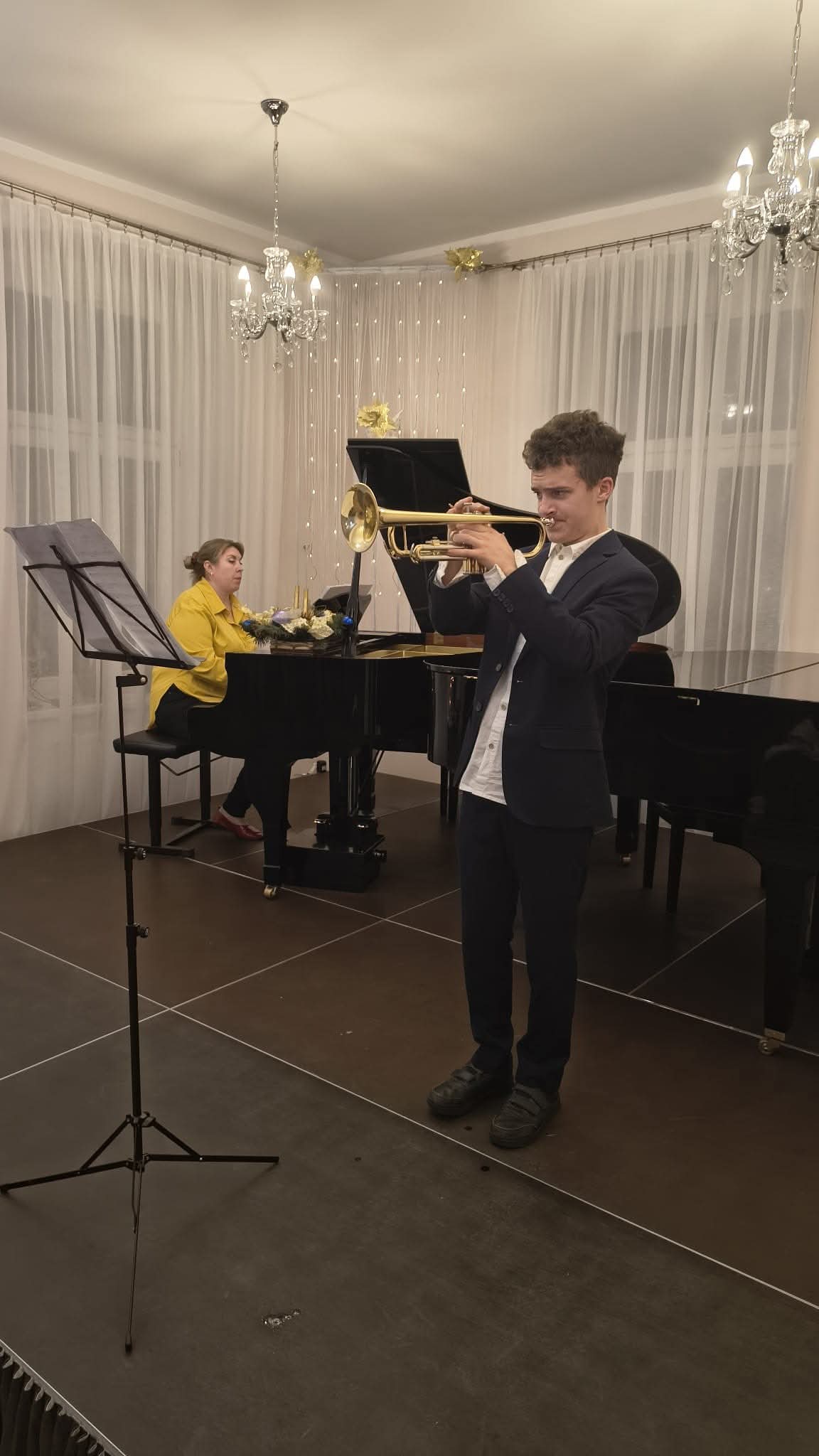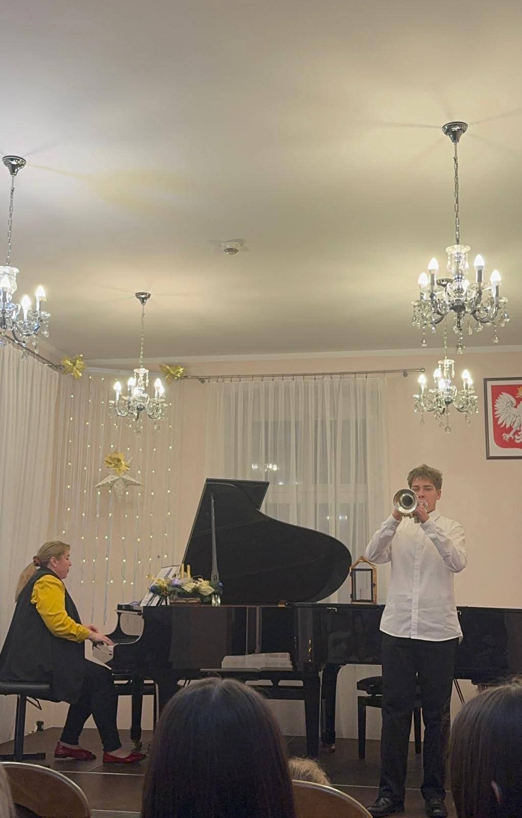 2.12.25 odbył się koncert klas: fortepianu p.Iriny Yakymets i klasy trąbki p. Wojciecha Lizureja.