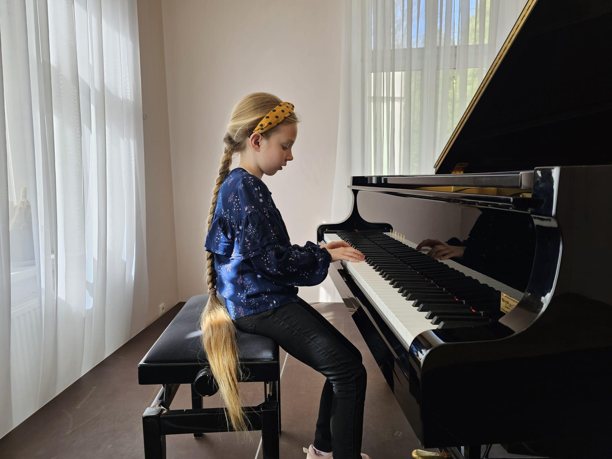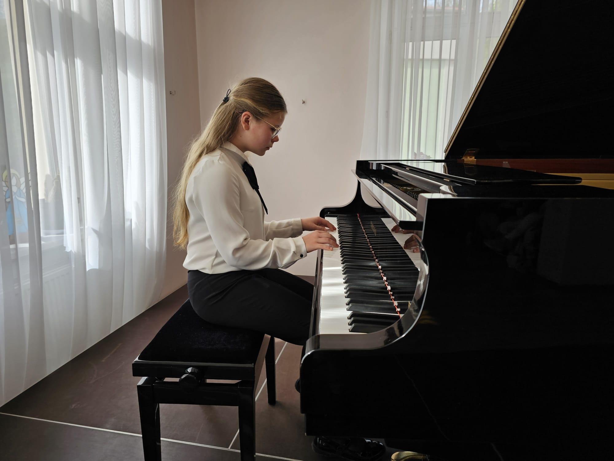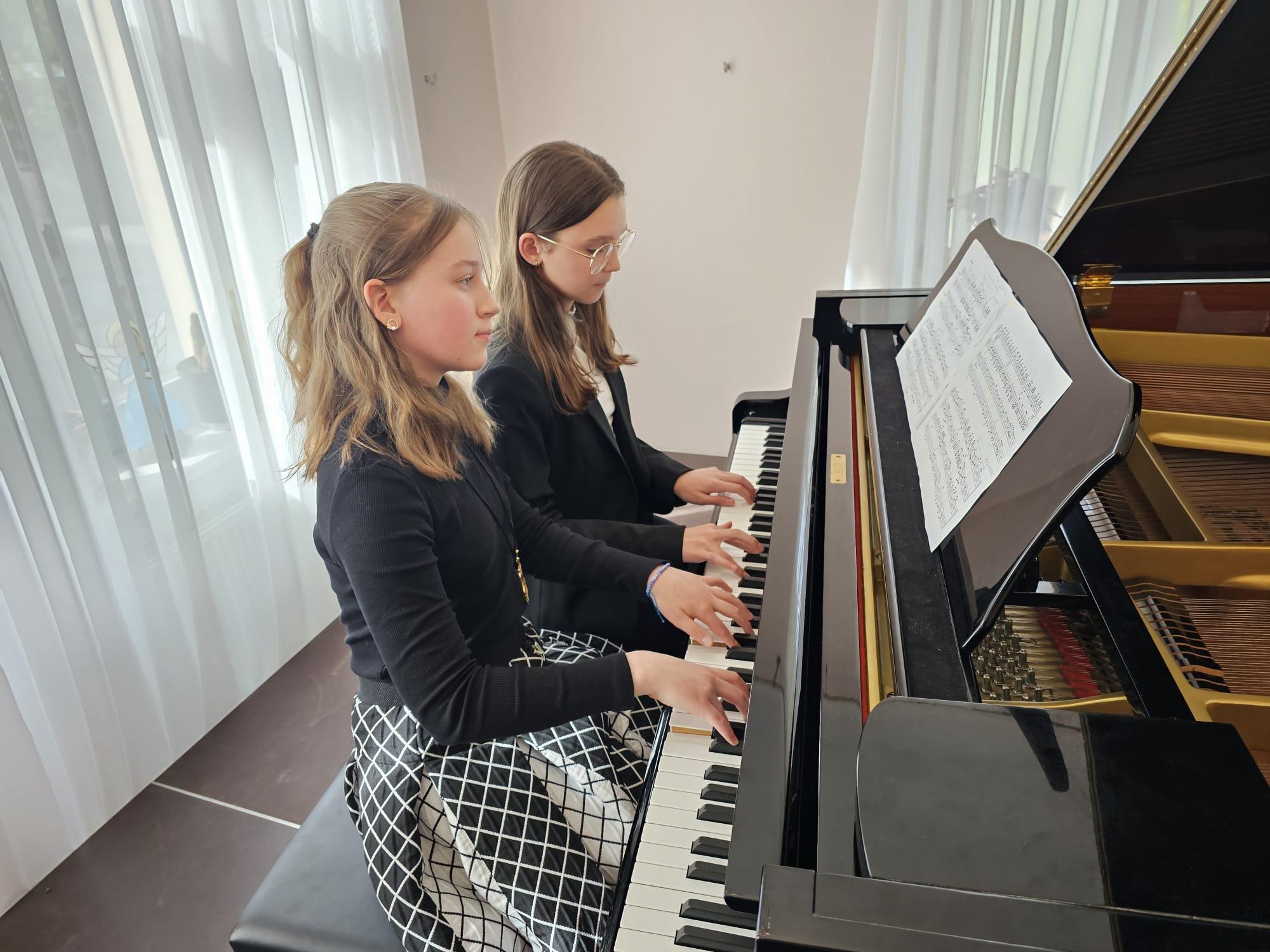 29.04.2024 odbył się koncert "Mój ulubiony utwór" w wykonaniu uczniów klasy fortepianu pani Angeliki Strzygockiej. Podczas występów solowych i zespołowych można było usłyszeć muzykę filmową, musicalową, nawet rockową, nie zabrakło również dzieł W. A. Mozarta i L. v. Beethovena. Gościnnie wystąpiła Magdalena Dworzańska z klasy fletu p. Bożeny Adamskiej a także w roli pianistki z klasy p. Iryny Yakymets oraz Maja Szymczak i Nadia Maryniak z klasy fortepianu p. Katarzyny Gałczyńskiej. Koncert upłynął w przyjaznej i życzliwej atmosferze. Gratulujemy młodym artystom!