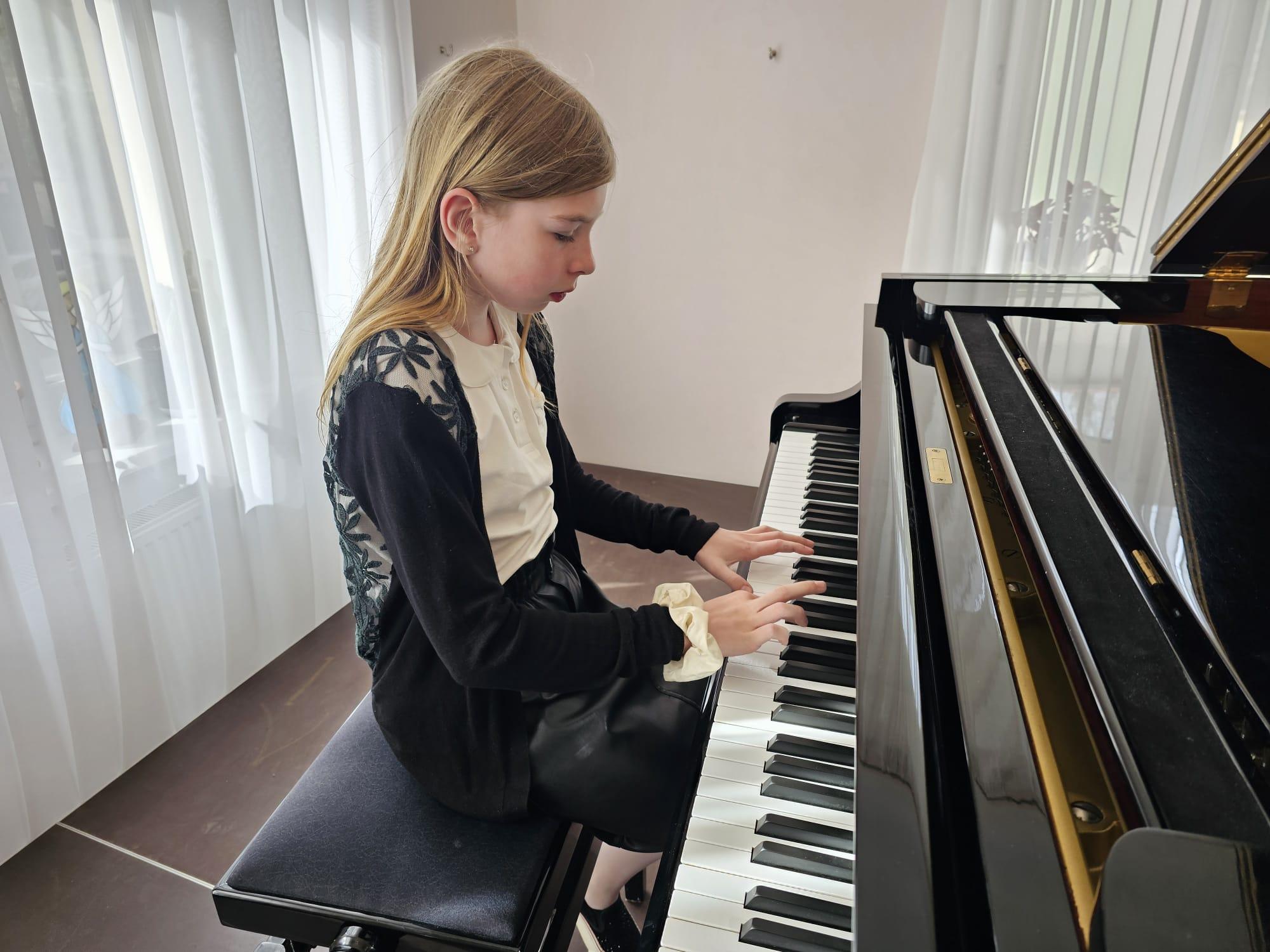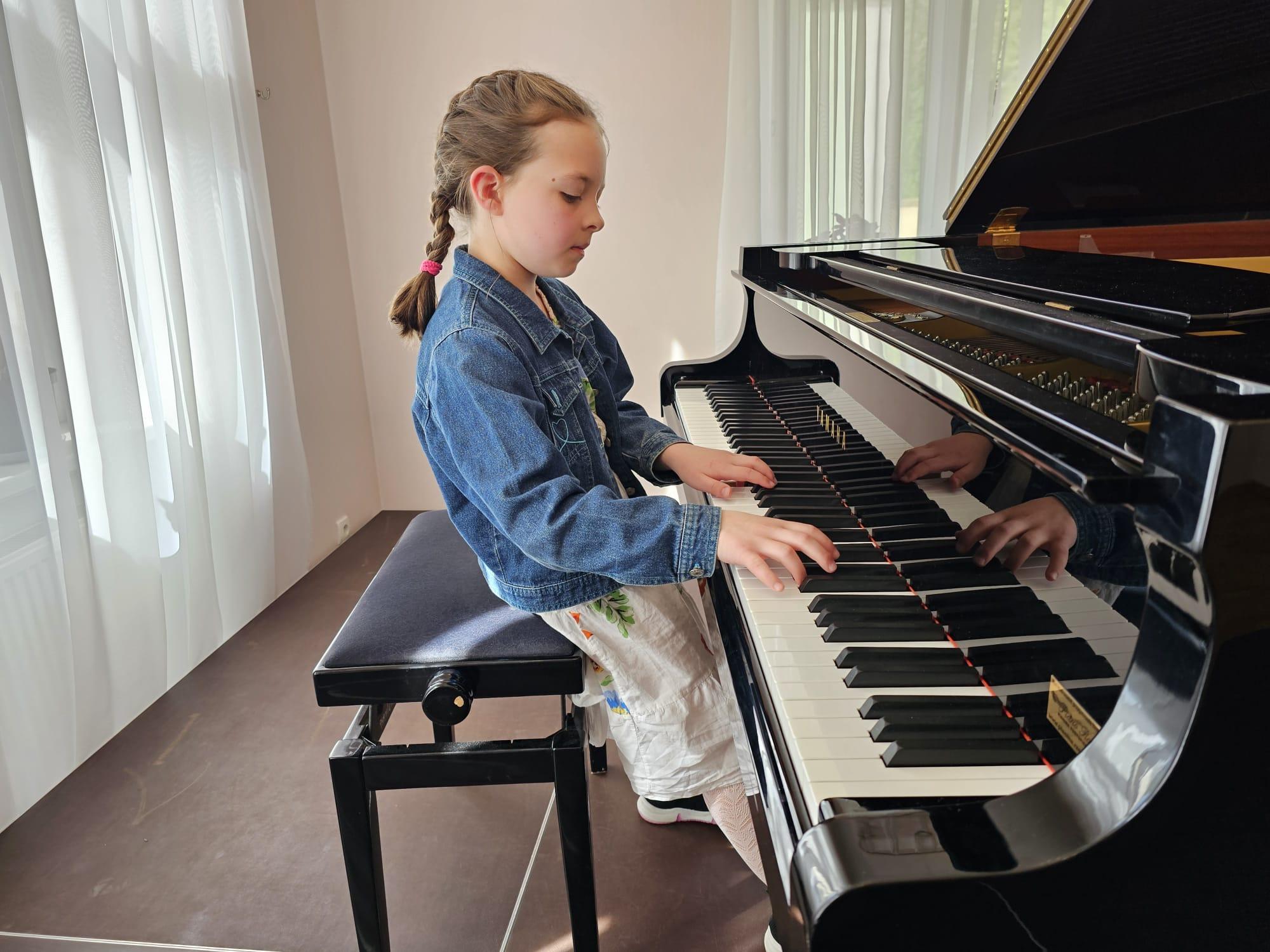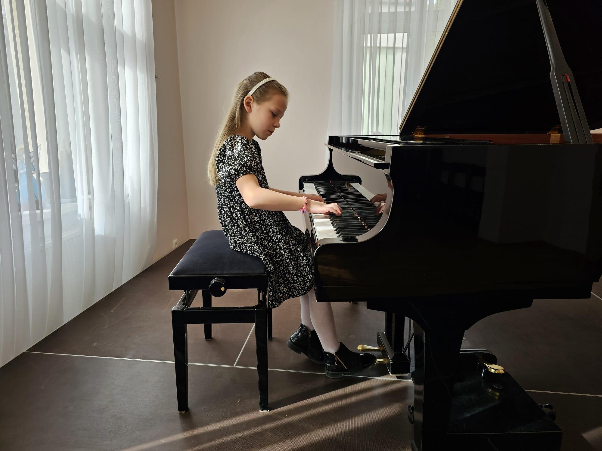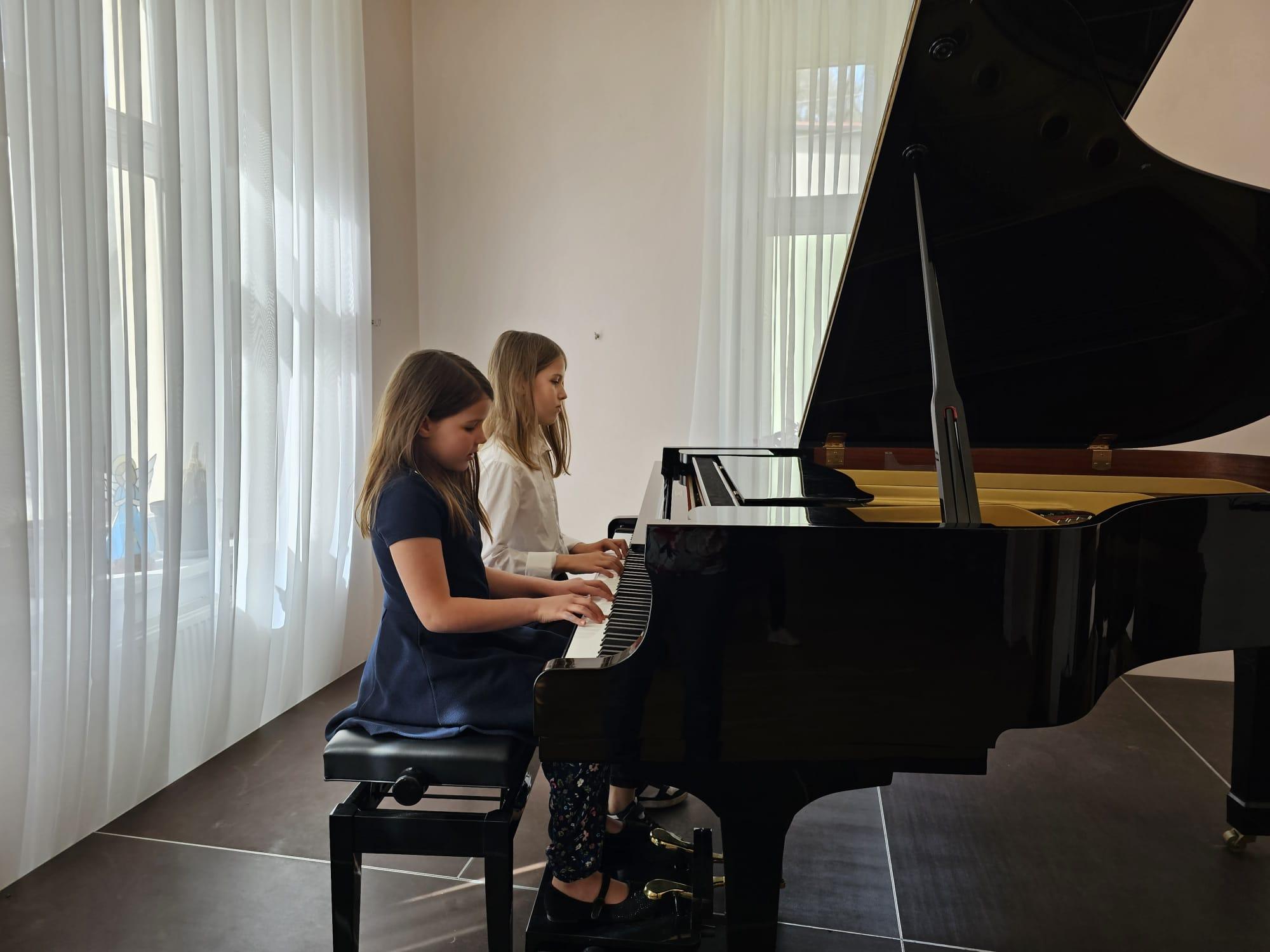 29.04.2024 odbył się koncert "Mój ulubiony utwór" w wykonaniu uczniów klasy fortepianu pani Angeliki Strzygockiej. Podczas występów solowych i zespołowych można było usłyszeć muzykę filmową, musicalową, nawet rockową, nie zabrakło również dzieł W. A. Mozarta i L. v. Beethovena. Gościnnie wystąpiła Magdalena Dworzańska z klasy fletu p. Bożeny Adamskiej a także w roli pianistki z klasy p. Iryny Yakymets oraz Maja Szymczak i Nadia Maryniak z klasy fortepianu p. Katarzyny Gałczyńskiej. Koncert upłynął w przyjaznej i życzliwej atmosferze. Gratulujemy młodym artystom!