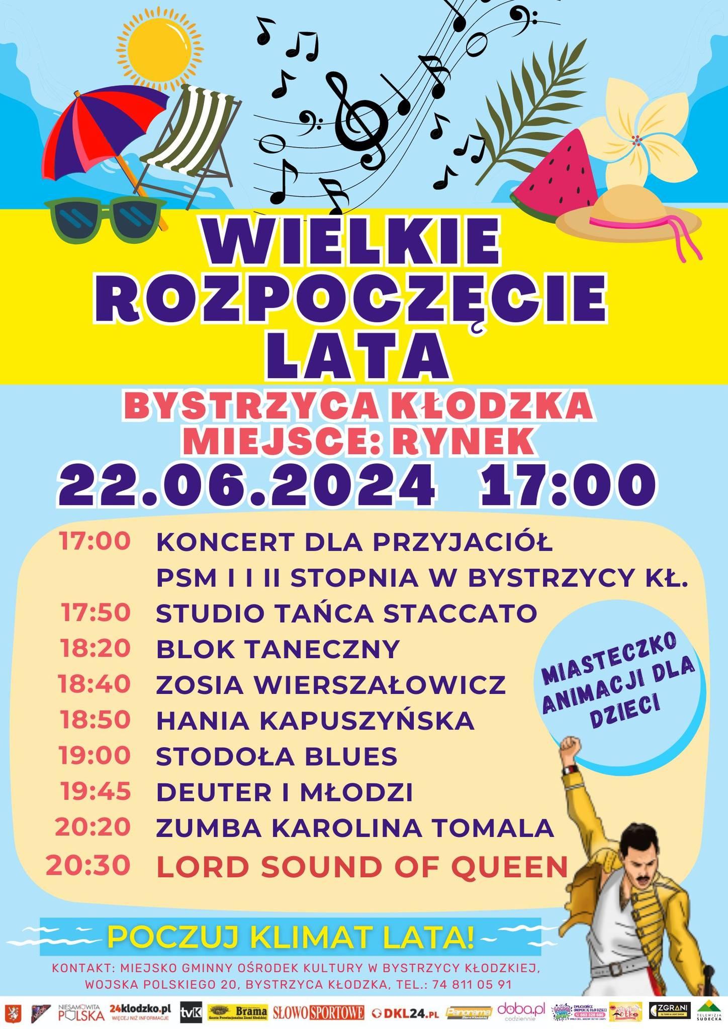 22 CZERWCA 2024 R. Zagraliśmy na bystrzyckim rynku, dając koncert w ramach "Wielkiego Rozpoczęcia Lata" zorganizowanego przez Miejsko Gminny Ośrodek Kultury w Bystrzycy Kłodzkiej.
