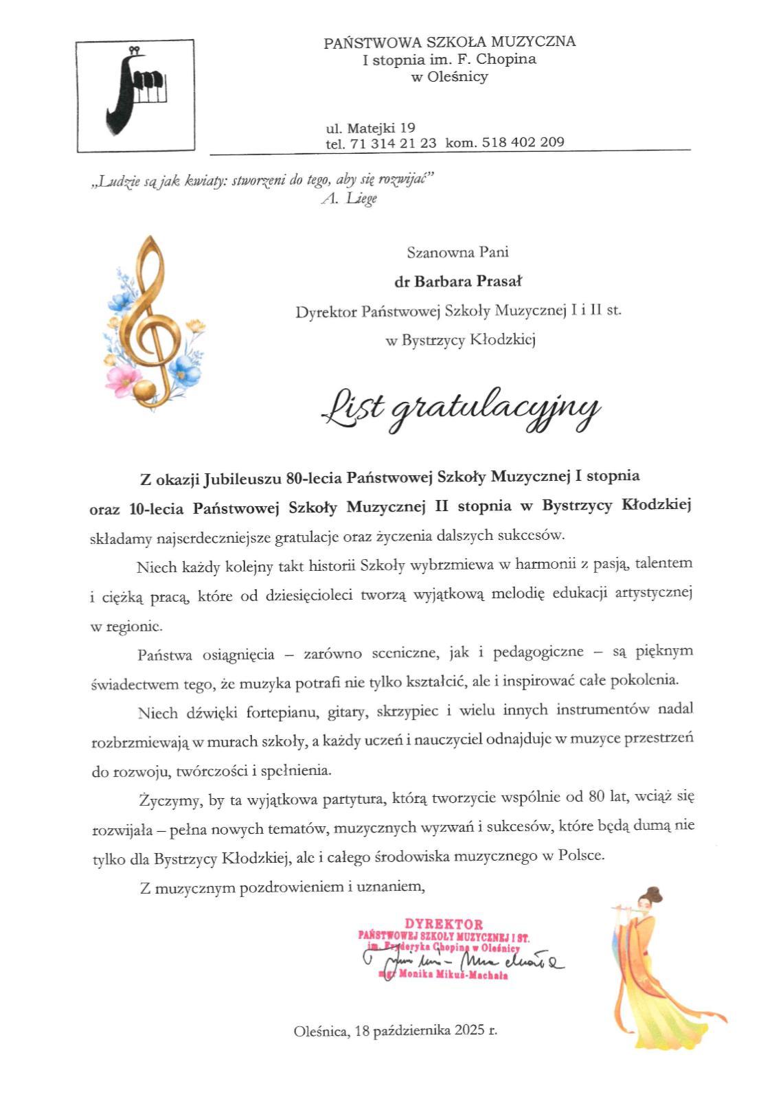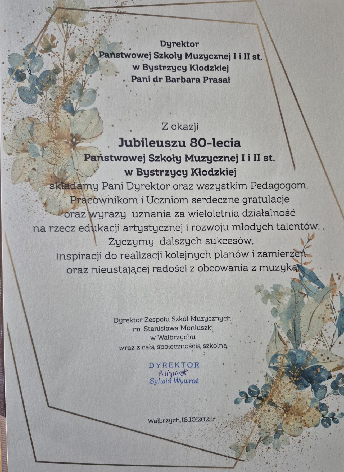 Podsumowując jubileusz 80- lecia naszej szkoły, pragniemy z całego serca podziękować za przekazane życzenia, gratulacje, prezenty, kwiaty oraz okolicznościowe dyplomy.
