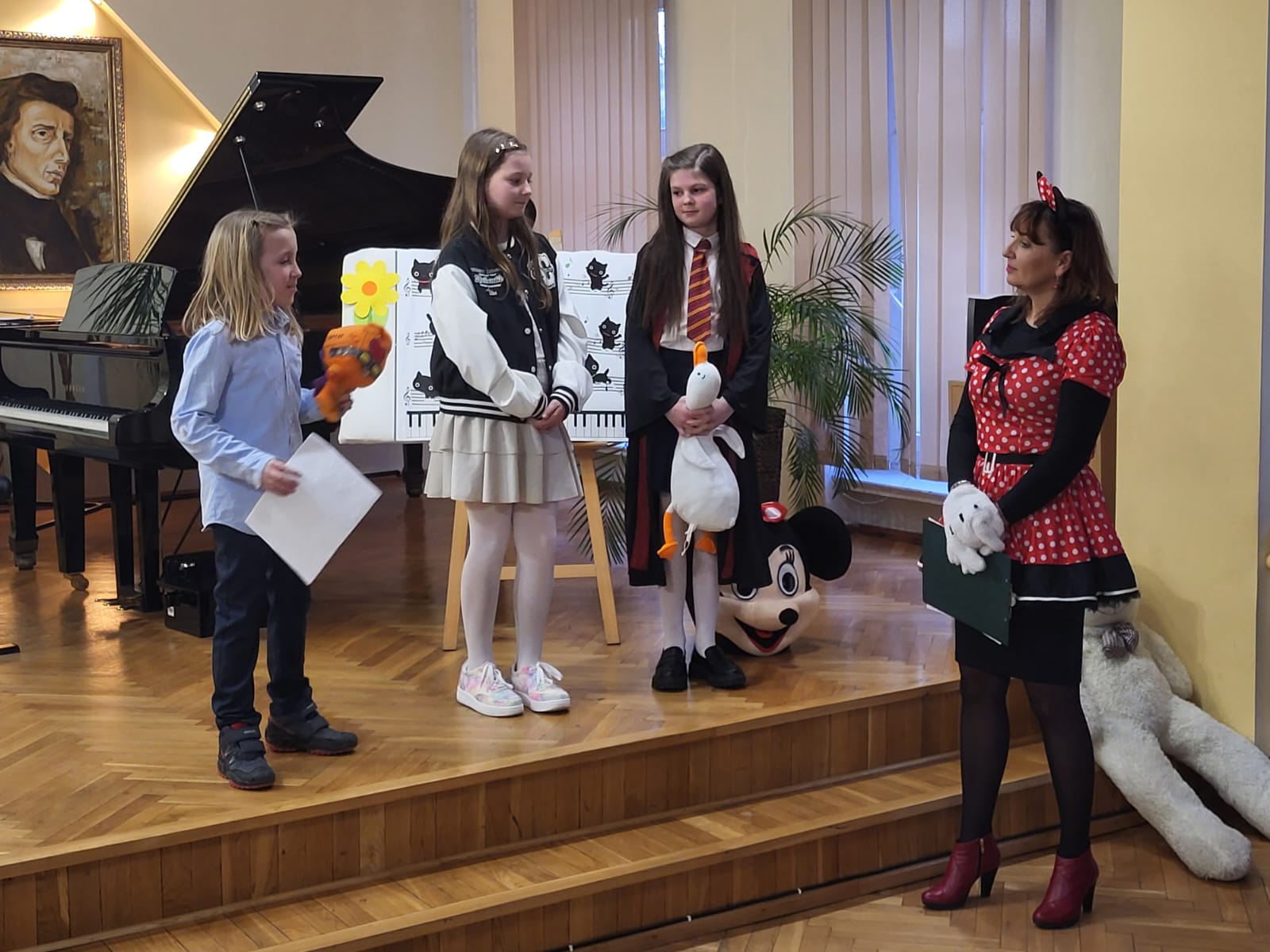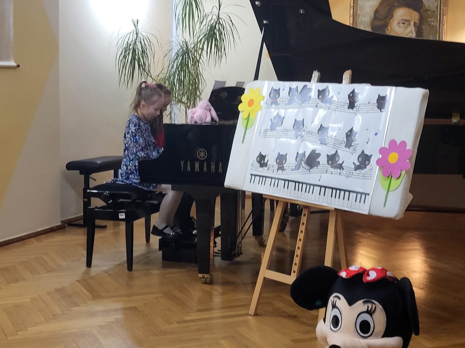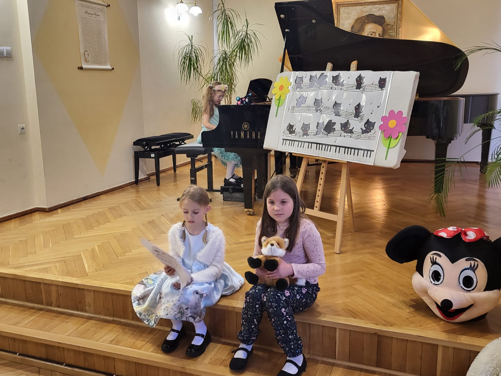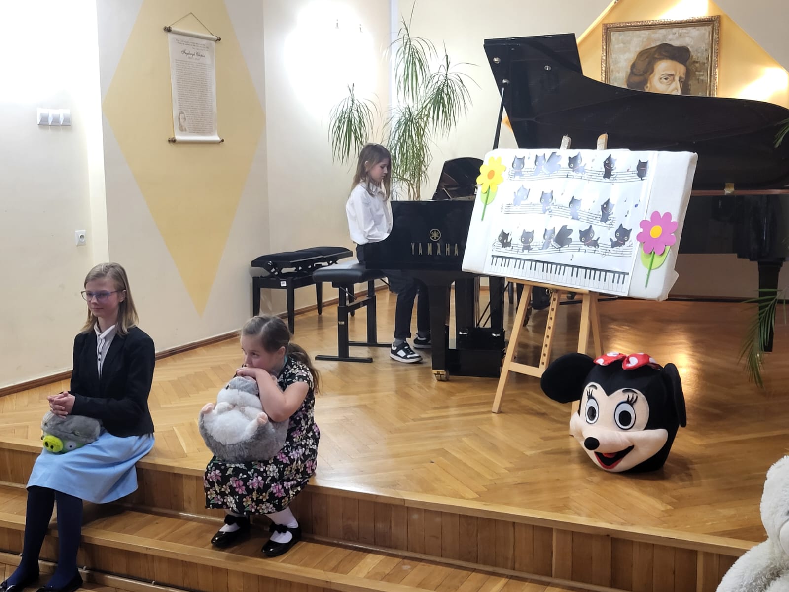 27.03.2024 odbył się w sali koncertowej PSM I stopnia w Kłodzku nadzwyczajny koncert z pluszakiem. W ramach "Międzyszkolnych Prezentacji Najmłodszych Pianistów" uczniowie pierwszych i drugich klas fortepianu z zaprzyjaźnionych szkół muzycznych w Bystrzycy Kłodzkiej i Kłodzka, wspólnie prezentowali swoje umiejętności w grze na fortepianie. Koncert poprowadziła, w osobie pani Joanny Kocyan, sympatyczna postać z bajki "Myszka Miki". Spotkanie upłynęło w wesołej i prawdziwie pianistycznej atmosferze. Gratulujemy wspaniałych występów pianistom i już czekamy na kolejne prezentacje!