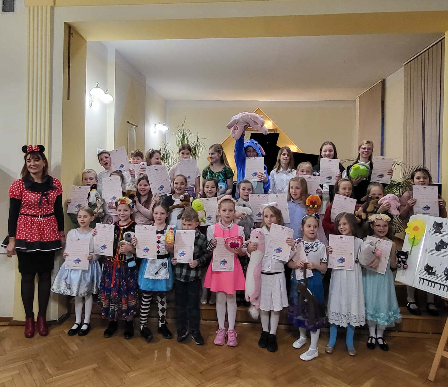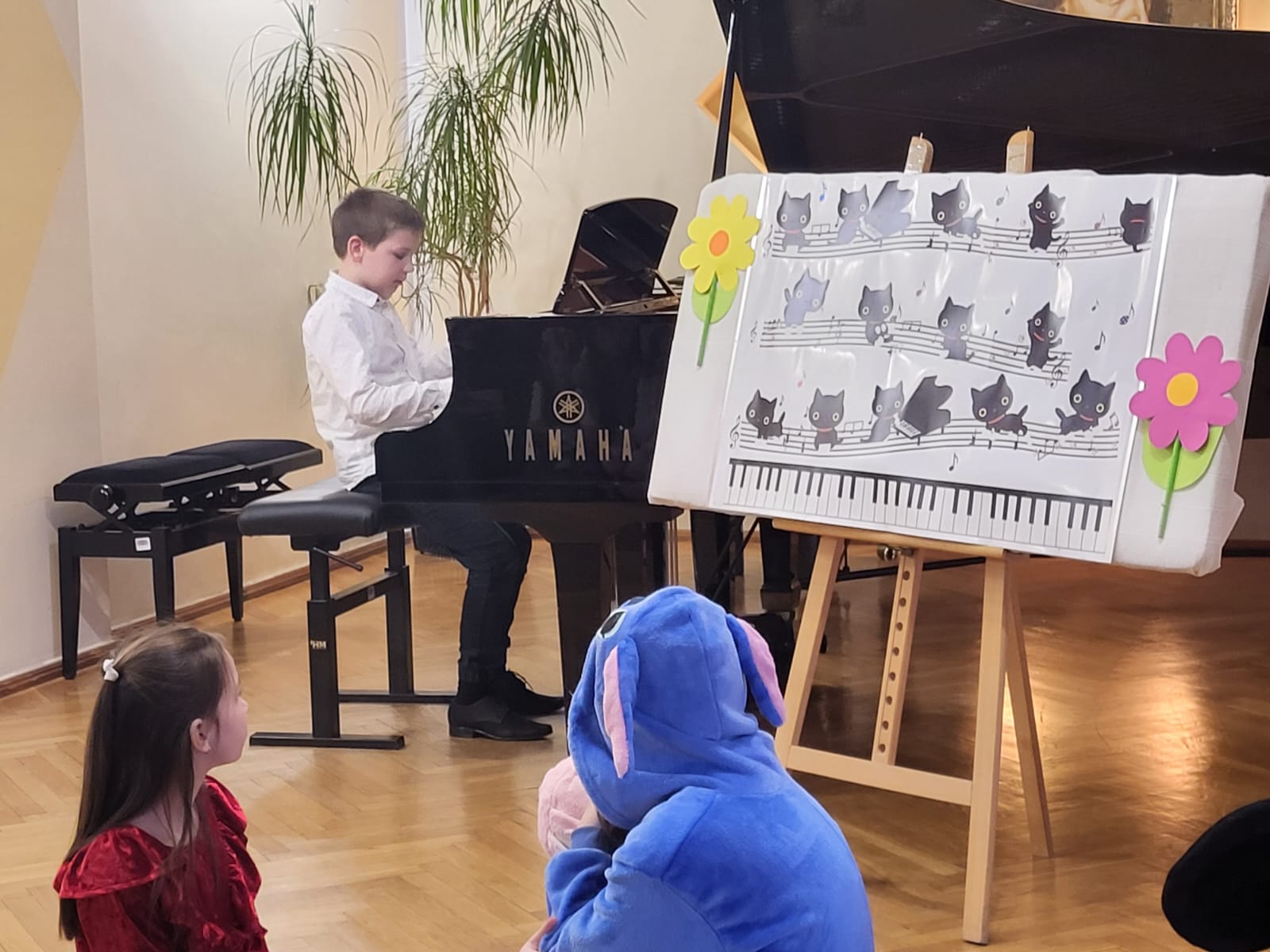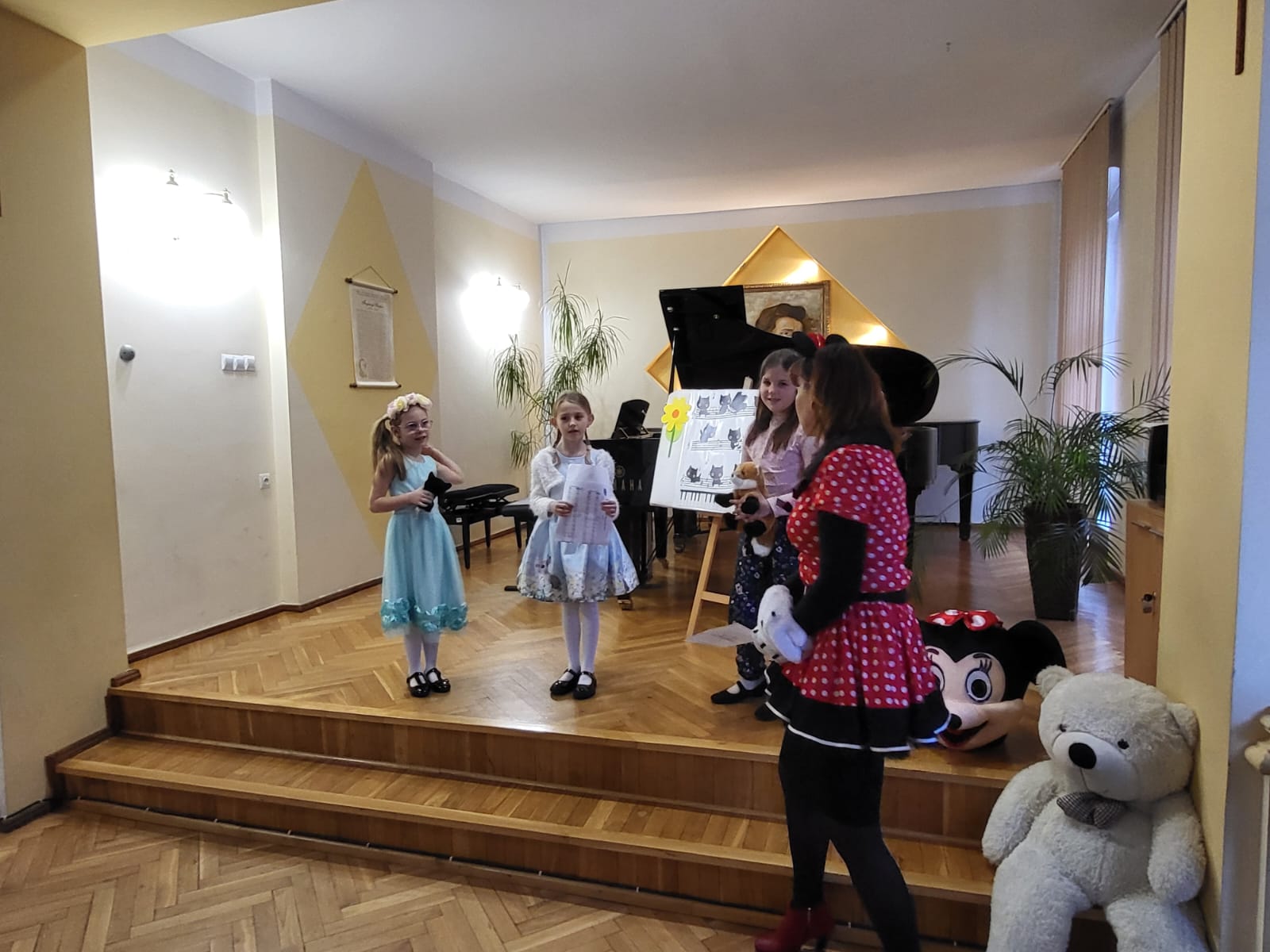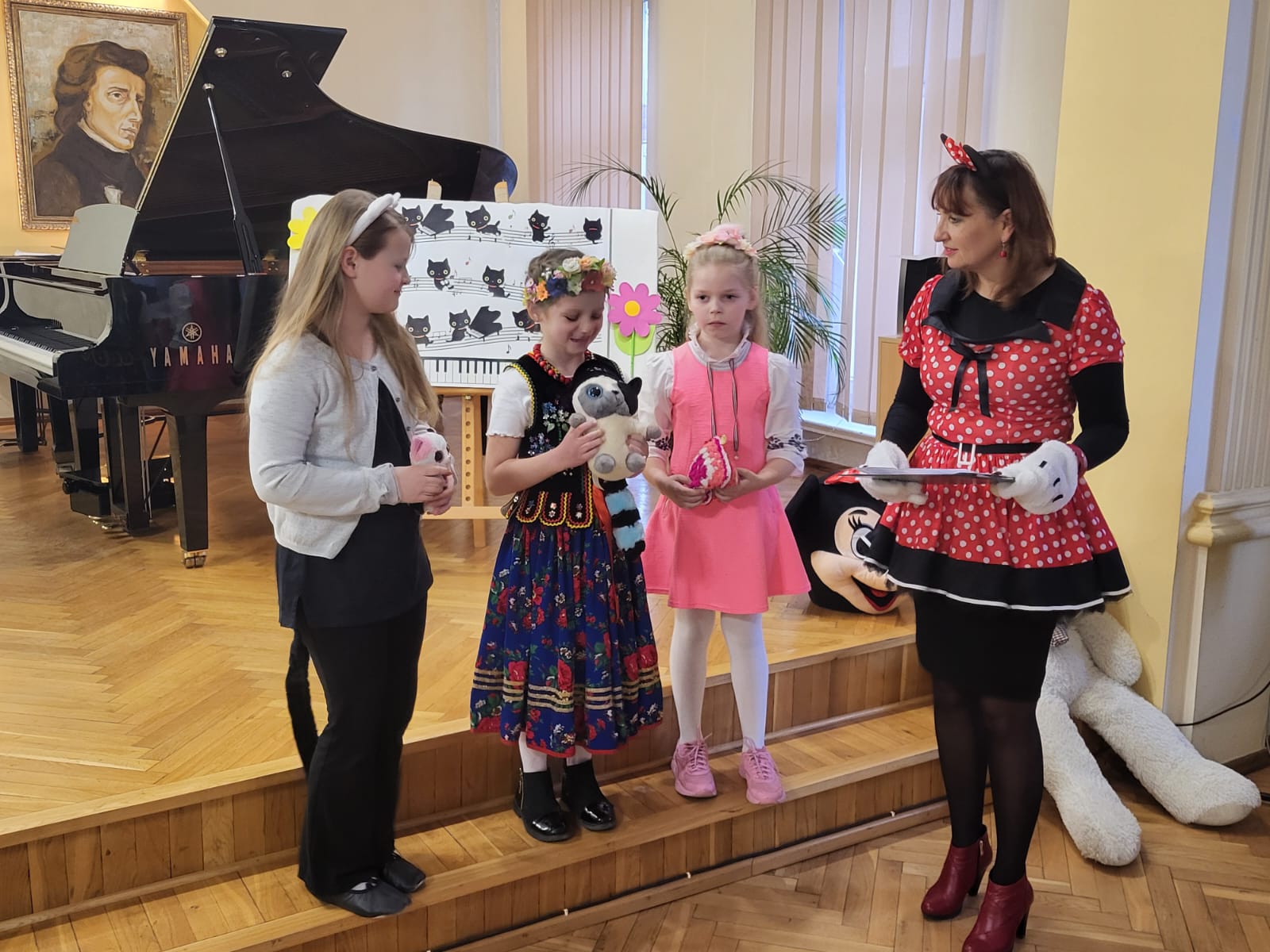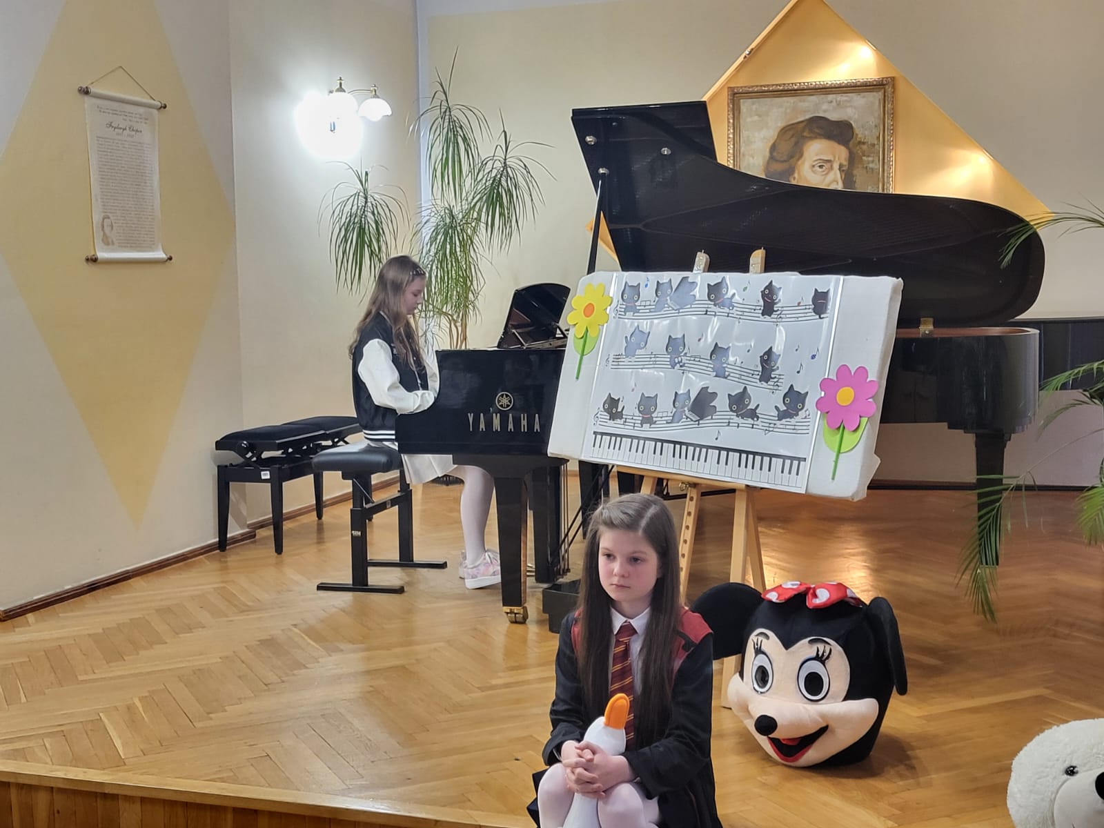 27.03.2024 odbył się w sali koncertowej PSM I stopnia w Kłodzku nadzwyczajny koncert z pluszakiem. W ramach "Międzyszkolnych Prezentacji Najmłodszych Pianistów" uczniowie pierwszych i drugich klas fortepianu z zaprzyjaźnionych szkół muzycznych w Bystrzycy Kłodzkiej i Kłodzka, wspólnie prezentowali swoje umiejętności w grze na fortepianie. Koncert poprowadziła, w osobie pani Joanny Kocyan, sympatyczna postać z bajki "Myszka Miki". Spotkanie upłynęło w wesołej i prawdziwie pianistycznej atmosferze. Gratulujemy wspaniałych występów pianistom i już czekamy na kolejne prezentacje!