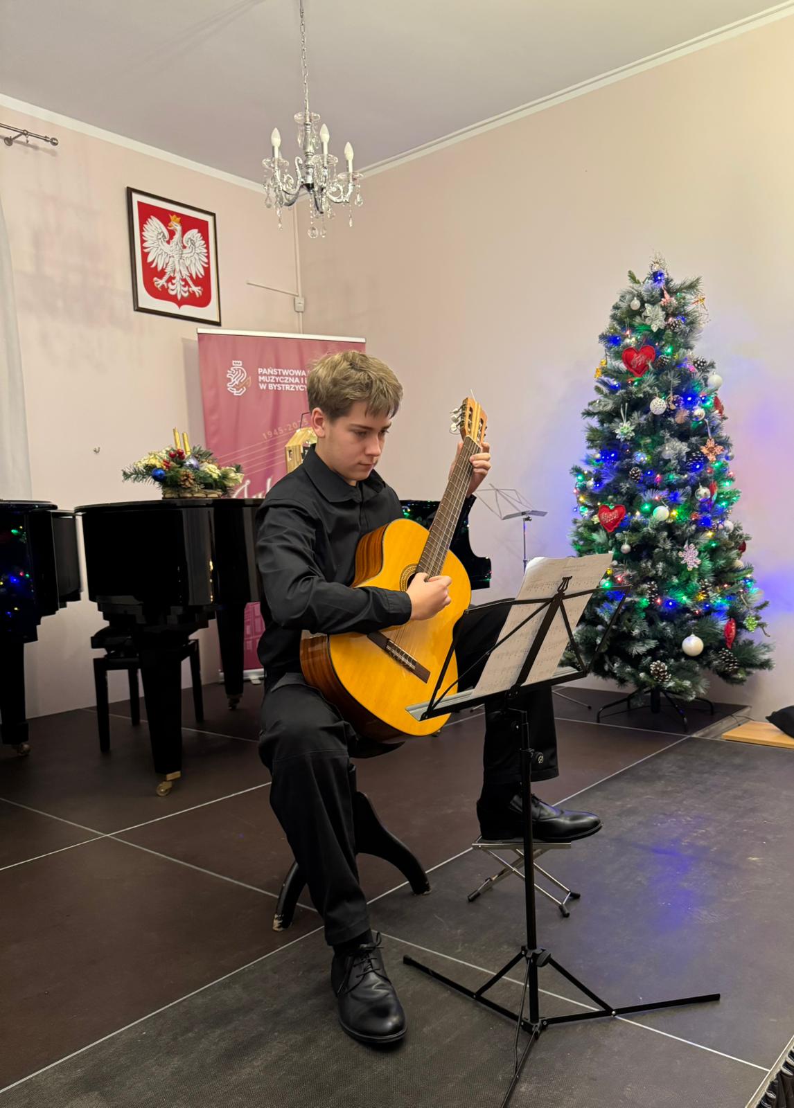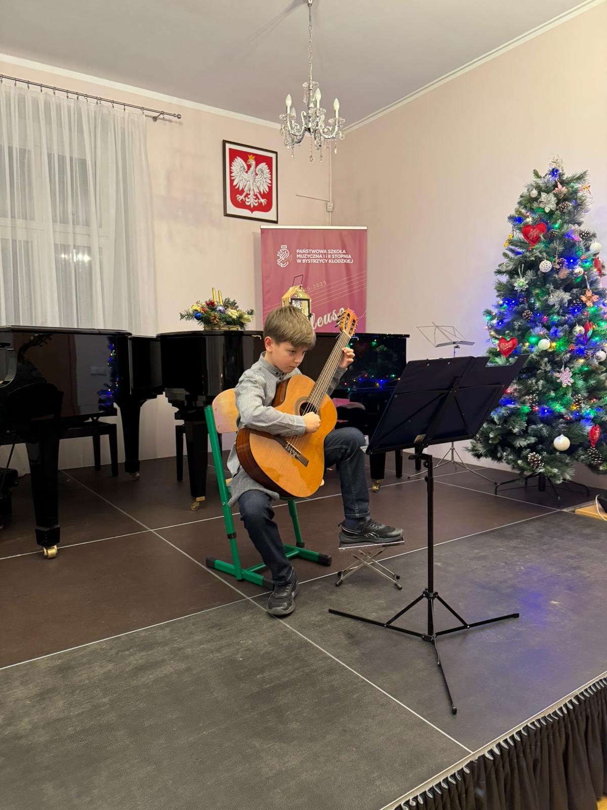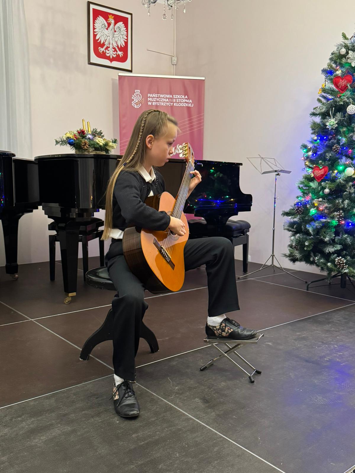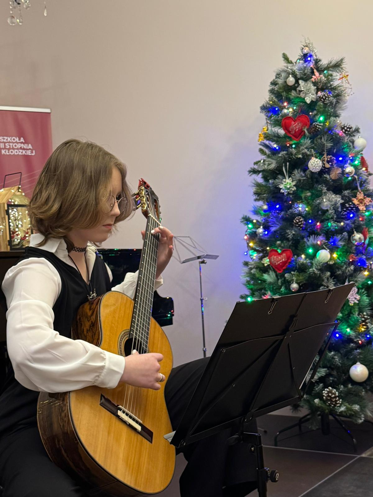 Kolejny koncert gitarowy za nami! Tym razem uczniowie klas gitary p. Justyny Dąbrowskiej i p. Joanny Nowackiej zaprezentowali się, wprowadzając publiczność w mikołajkowy klimat. W ich wykonaniu usłyszeliśmy utwory popularne, klasyczne oraz utwory świąteczne, nawiązujące do zbliżających się Świąt Bożego Narodzenia. Serdecznie gratulujemy wszystkim młodym wykonawcom i czekamy na ich kolejne koncerty!