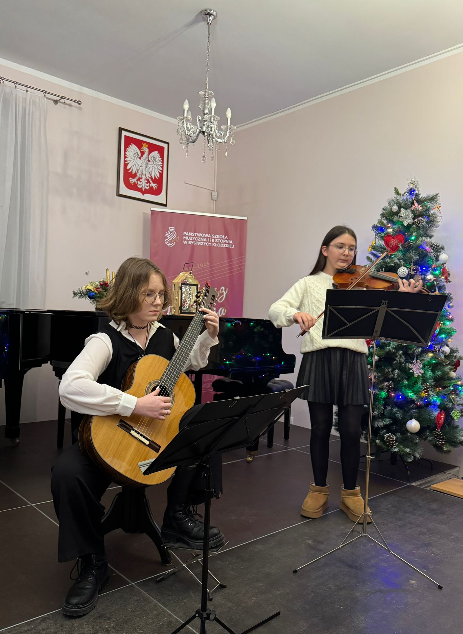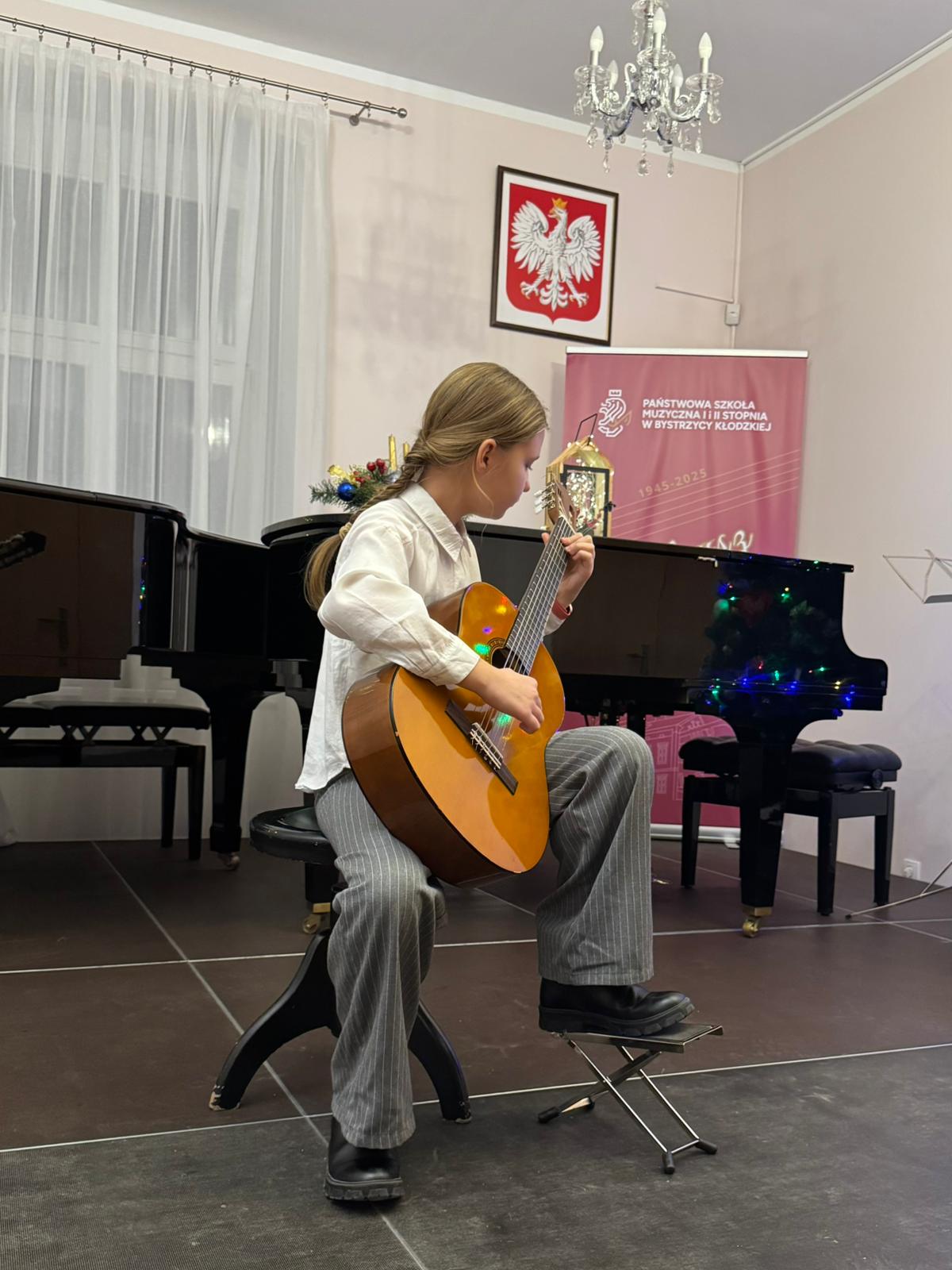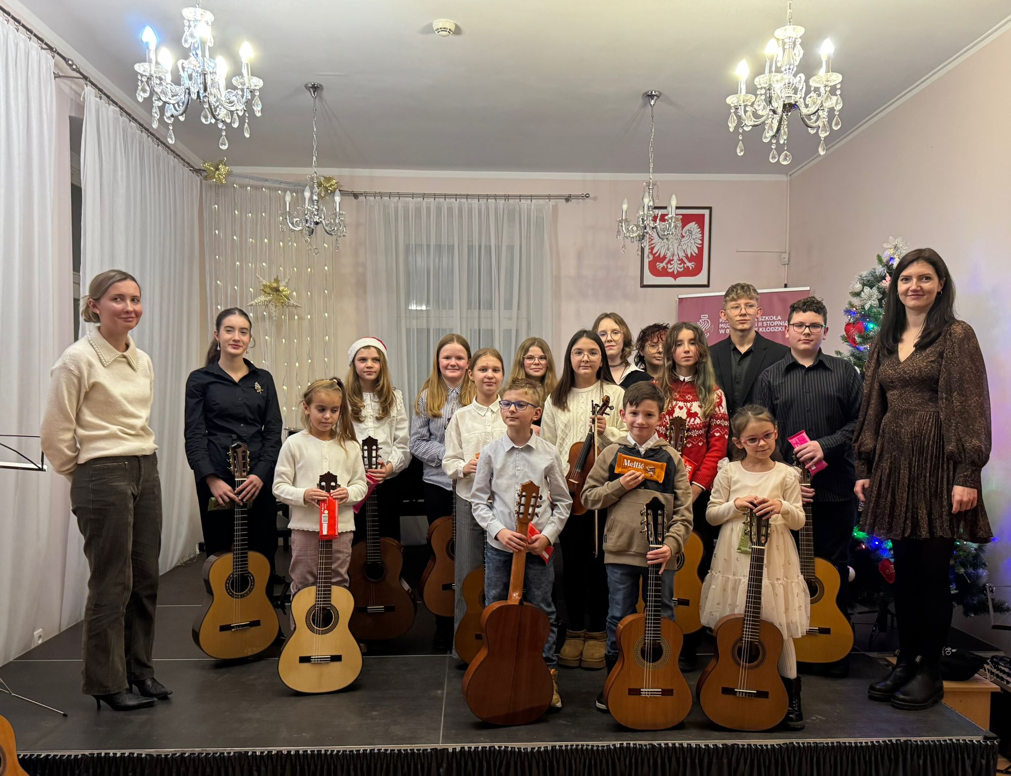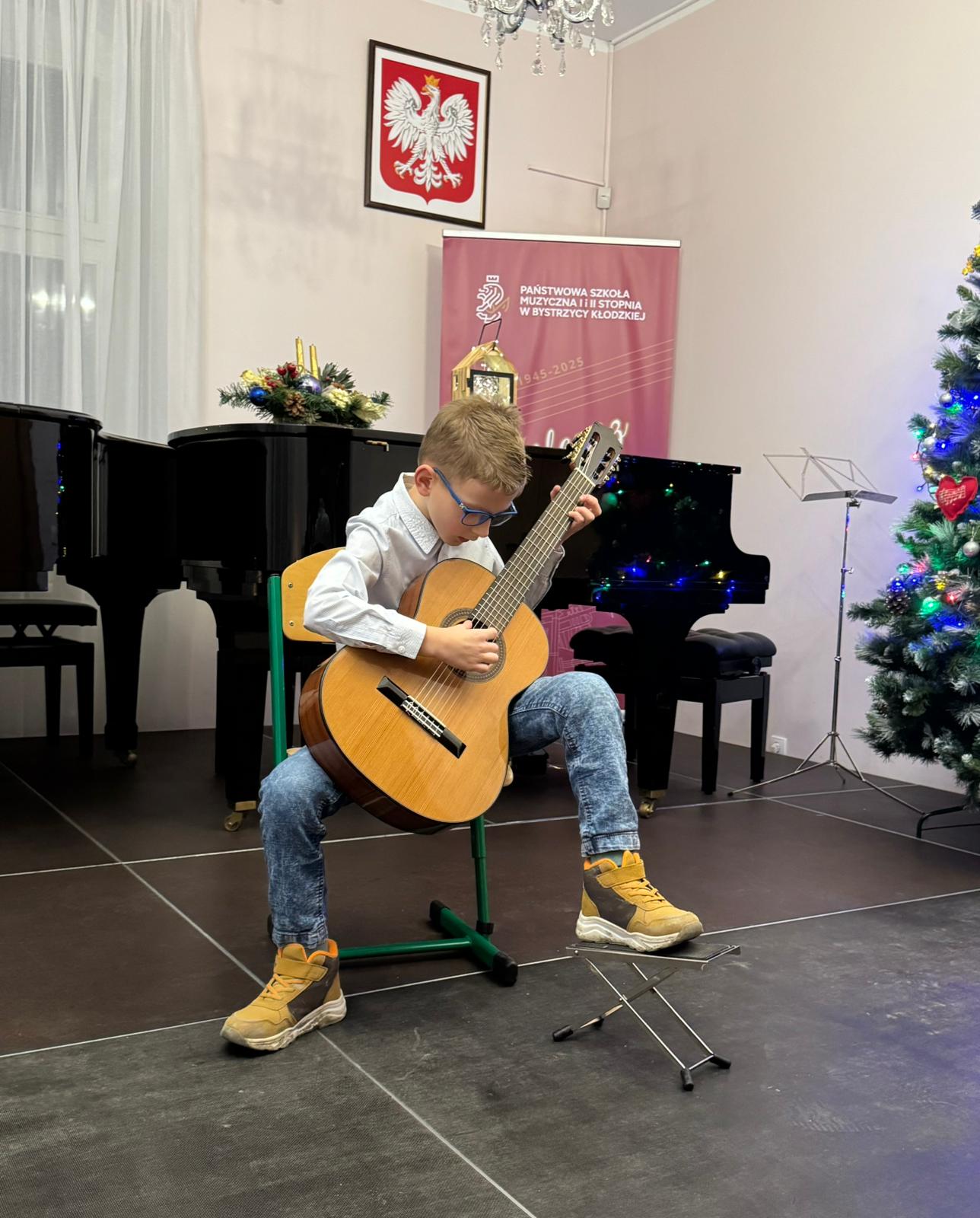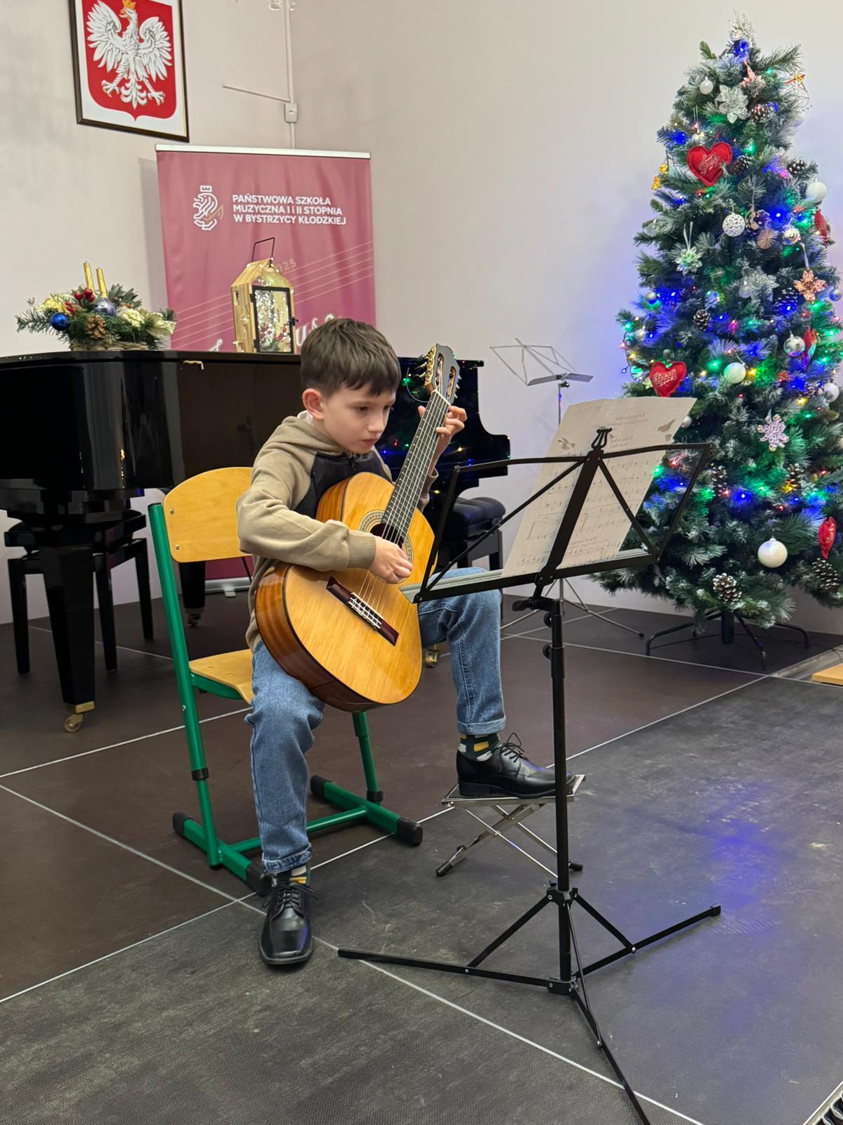 Kolejny koncert gitarowy za nami! Tym razem uczniowie klas gitary p. Justyny Dąbrowskiej i p. Joanny Nowackiej zaprezentowali się, wprowadzając publiczność w mikołajkowy klimat. W ich wykonaniu usłyszeliśmy utwory popularne, klasyczne oraz utwory świąteczne, nawiązujące do zbliżających się Świąt Bożego Narodzenia. Serdecznie gratulujemy wszystkim młodym wykonawcom i czekamy na ich kolejne koncerty!