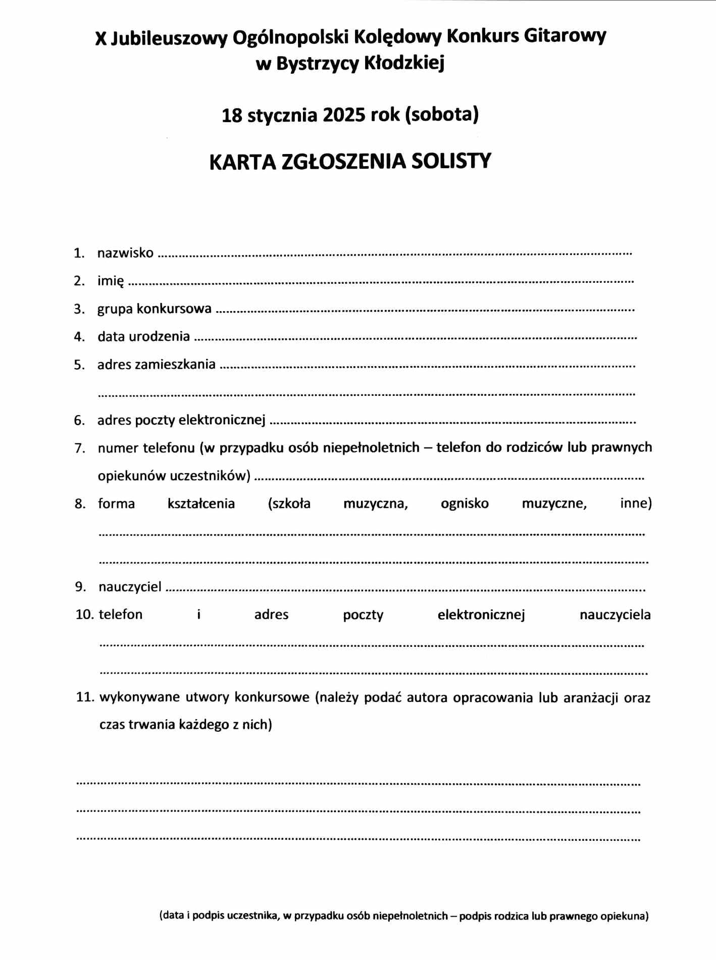 Ogłoszenie kolejnej, tym razem już jubileuszowej edycji Ogólnopolskiego Kolędowego Konkursu Gitarowego w Bystrzycy Kłodzkiej