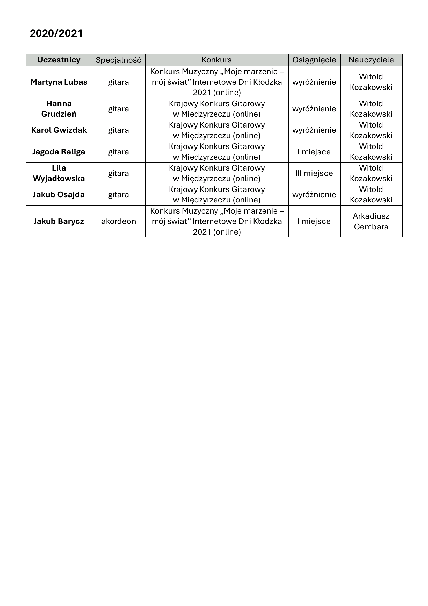 Osiągnięcia uczniów w roku szkolnym 2020/2021