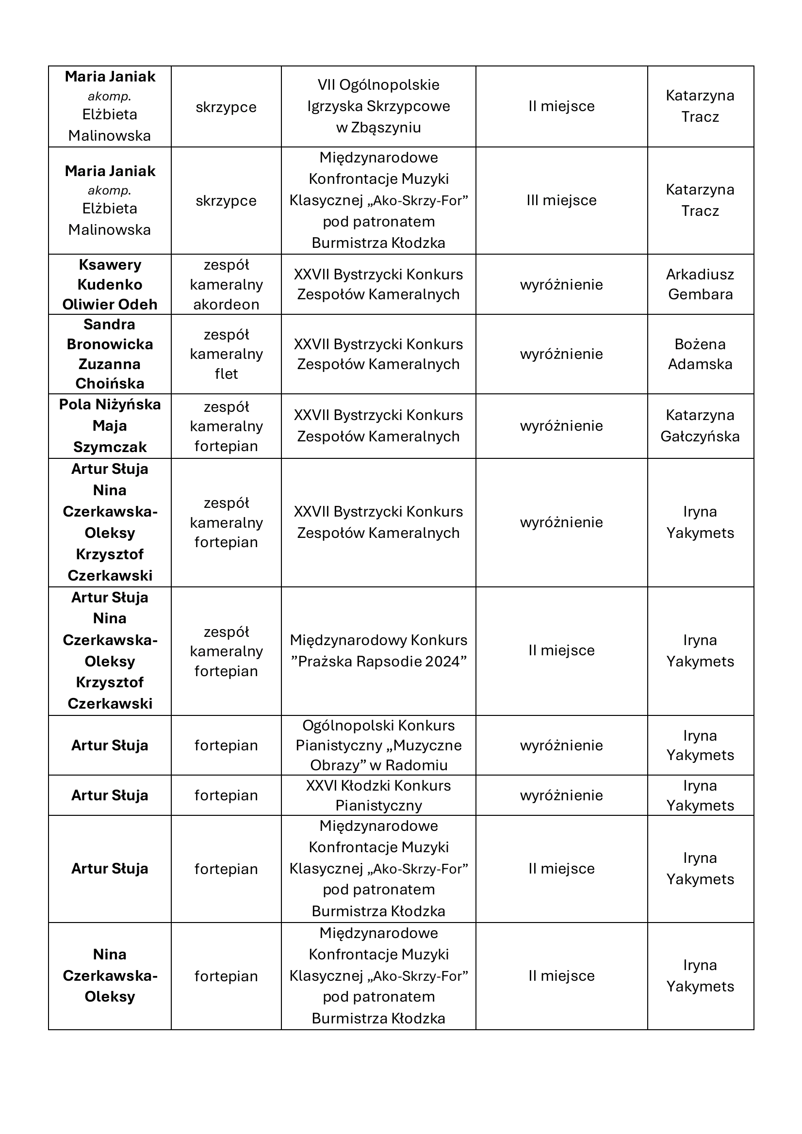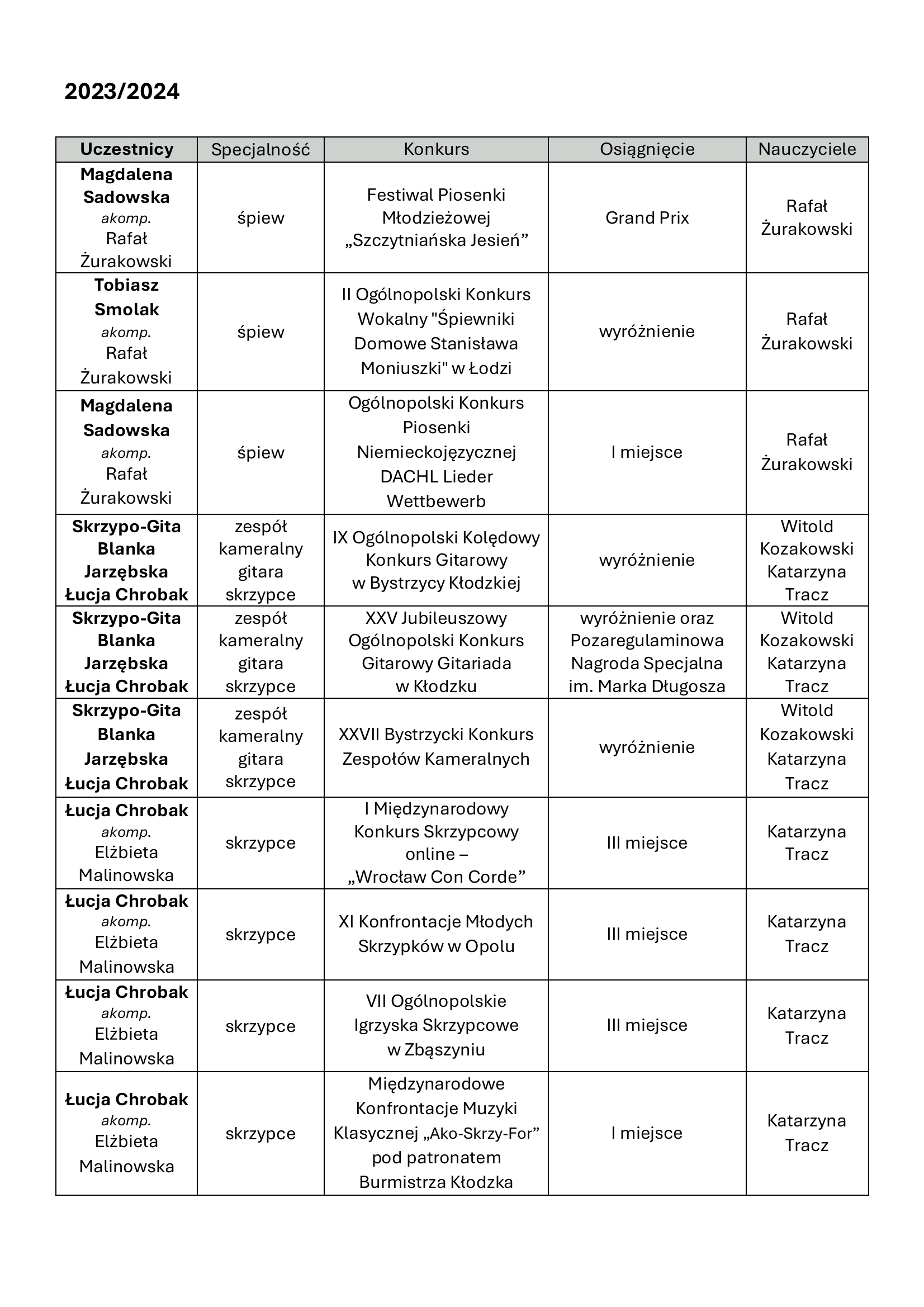Osiągnięcia uczniów w roku szkolnym 2023/2024