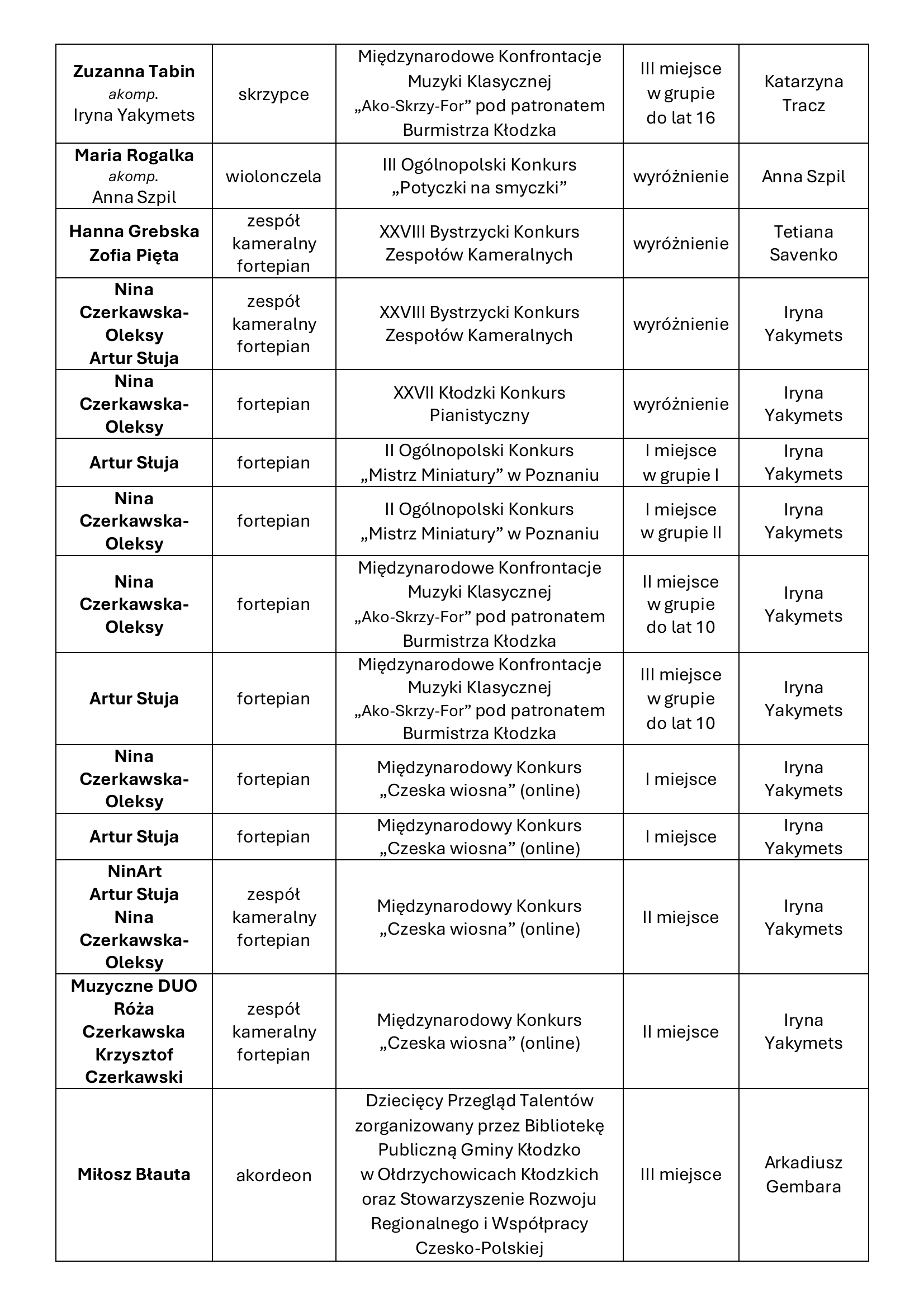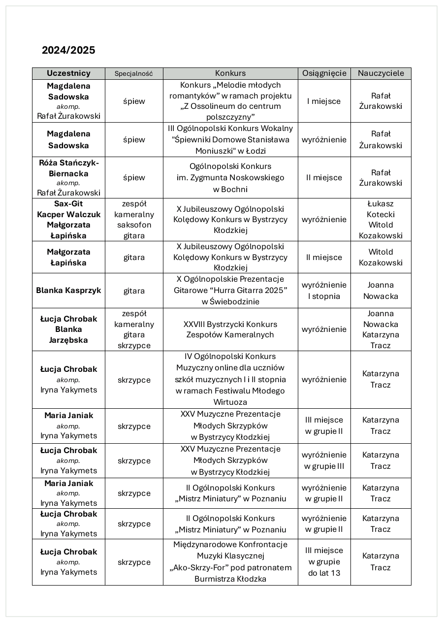 Osiągnięcia uczniów w roku szkolnym 2024/2025
