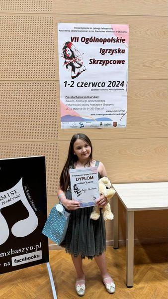 W sobotę 1 czerwca 2024 r. nasze skrzypaczki z klasy pani Katarzyny Tracz wzięły udział w VII Ogólnopolskich Igrzyskach Skrzypcowych, które odbyły się w PSM I st. w Zbąszyniu. Maria Janiak otrzymała 2 miejsce w grupie pierwszej, a Łucja Chrobak 3 miejsce w grupie drugiej.