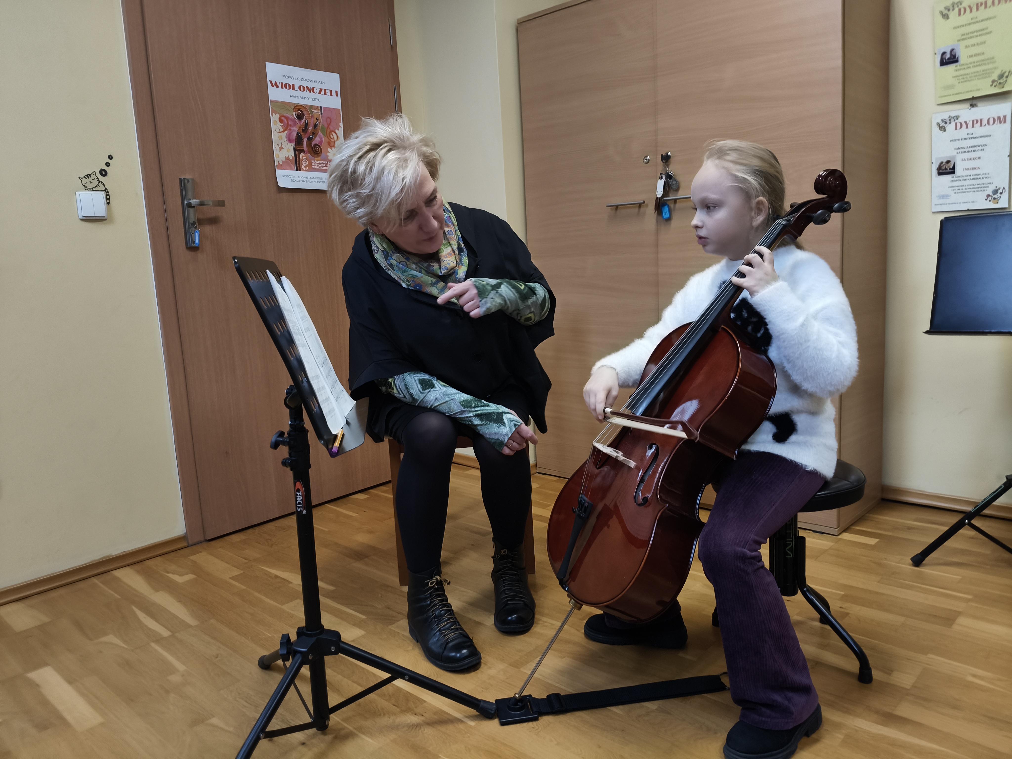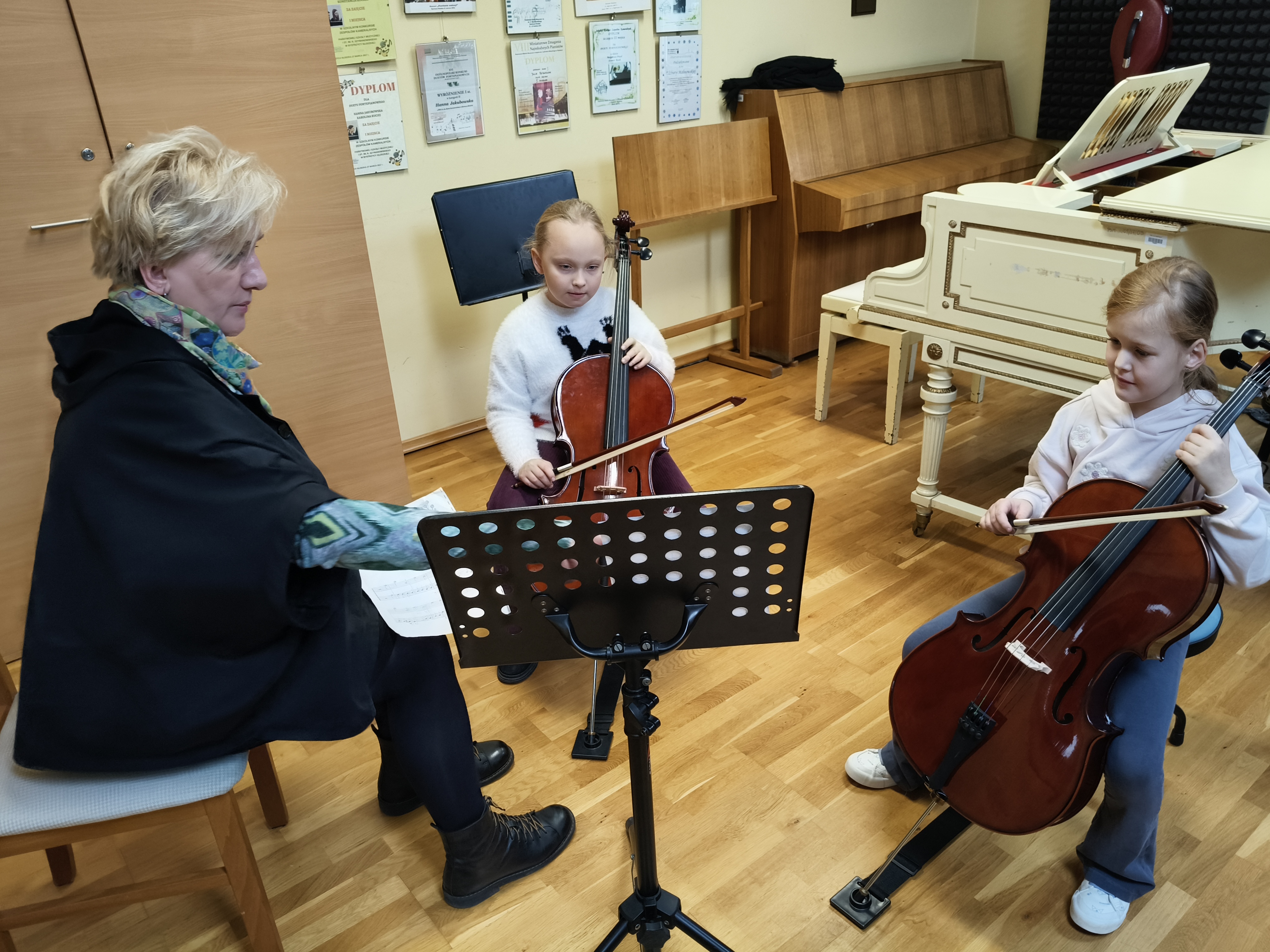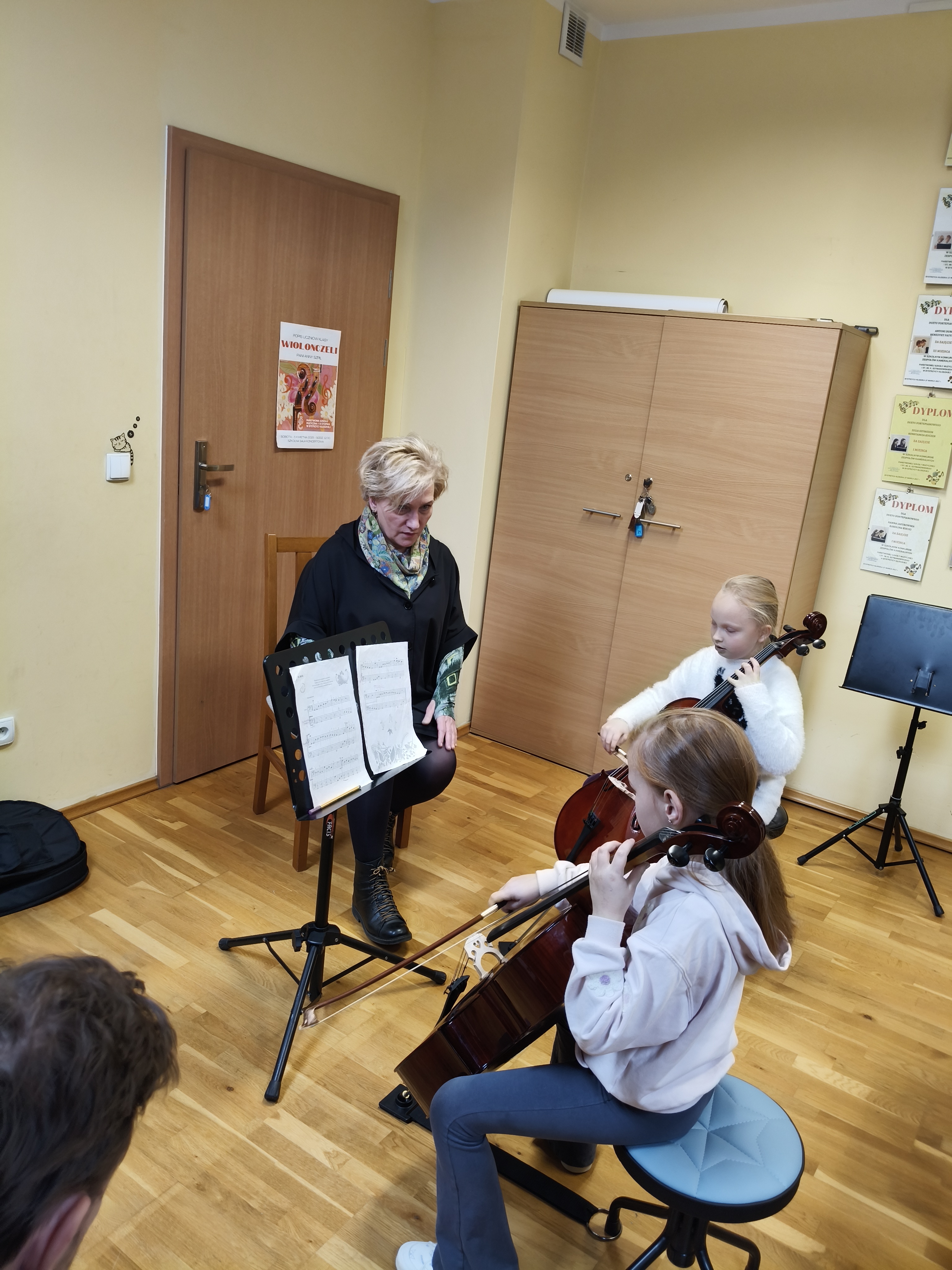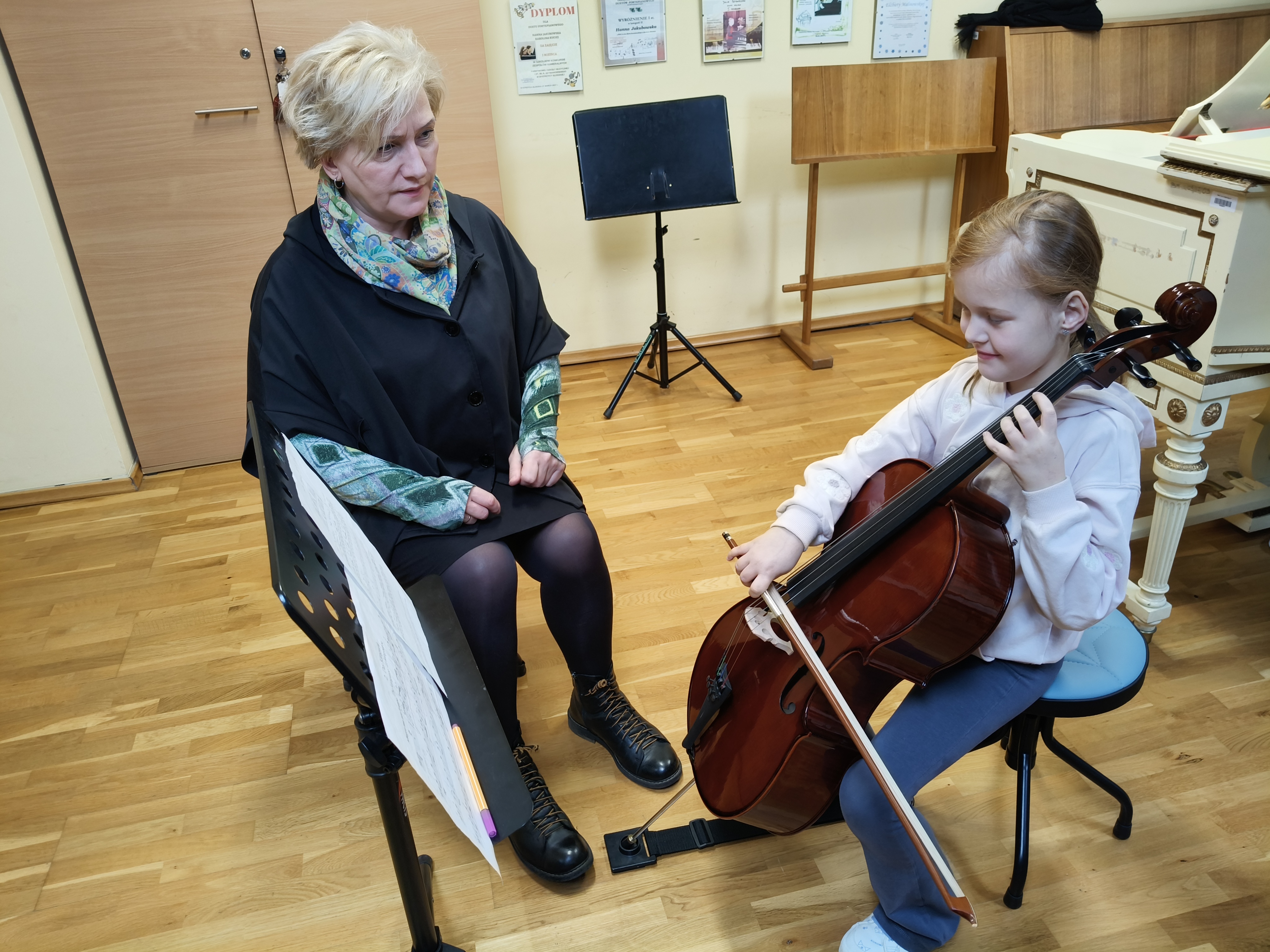 W sobotę 29 listopada 2025 r. w naszej szkole odbyły się wyjątkowe warsztaty wiolonczelowe, które poprowadziła Pani Profesor Urszula Marciniec-Mazur z Akademii Muzycznej we Wrocławiu. Uczniowie mieli okazję pracować nad techniką gry, brzmieniem oraz interpretacją, korzystając z doświadczenia i inspirujących wskazówek znakomitego pedagoga. Atmosfera była pełna skupienia, ale też radości ze wspólnego muzykowania.