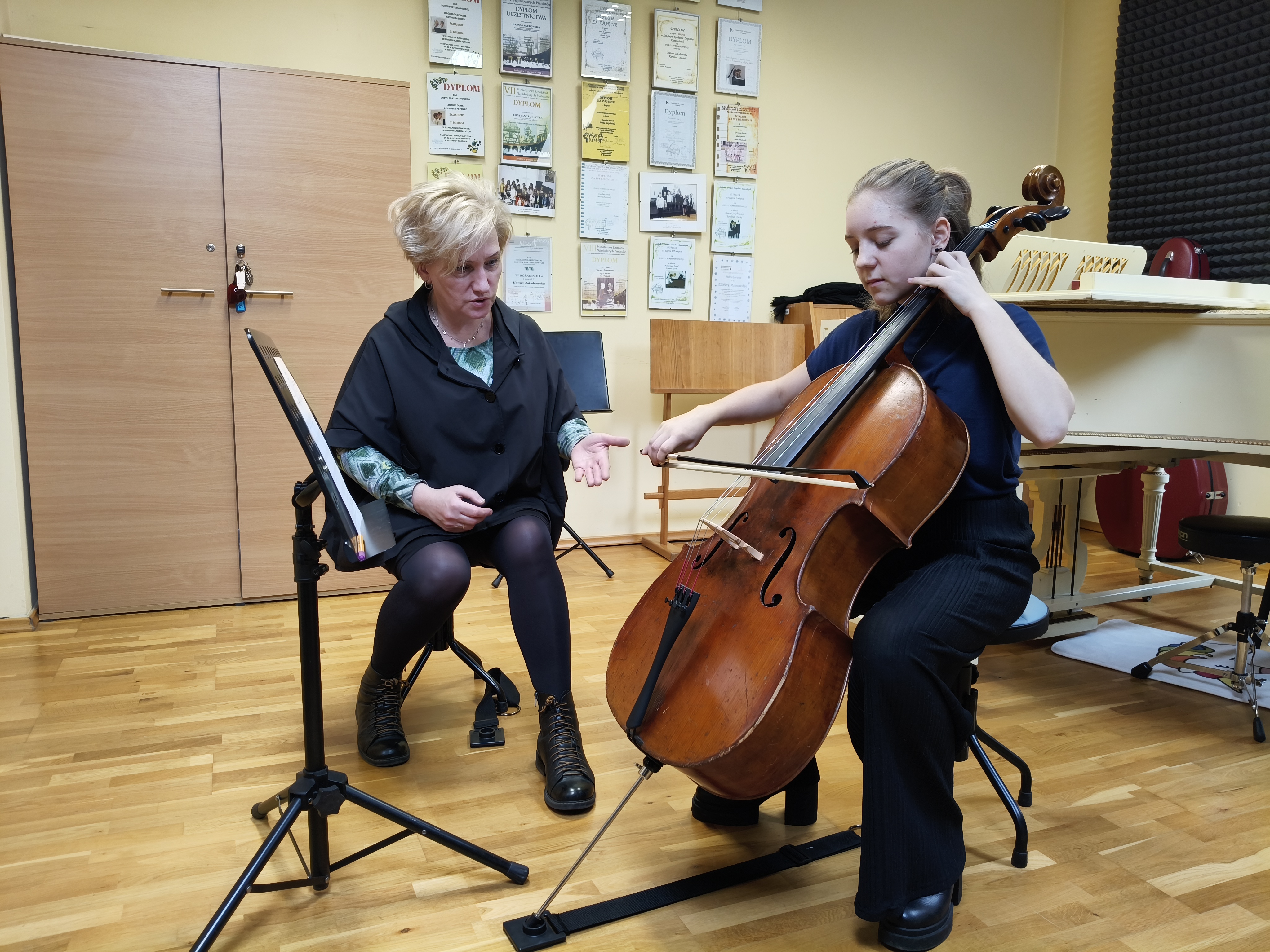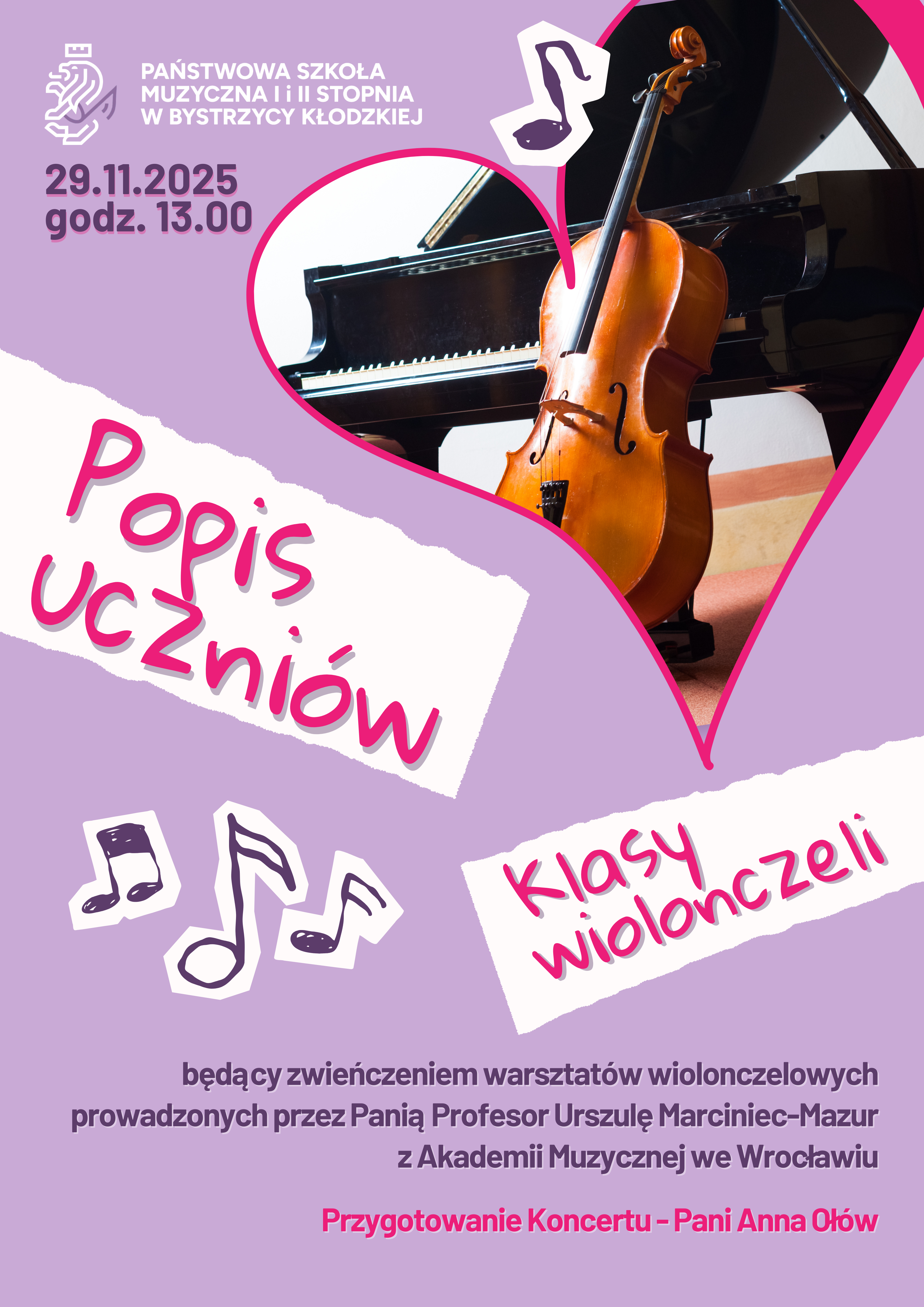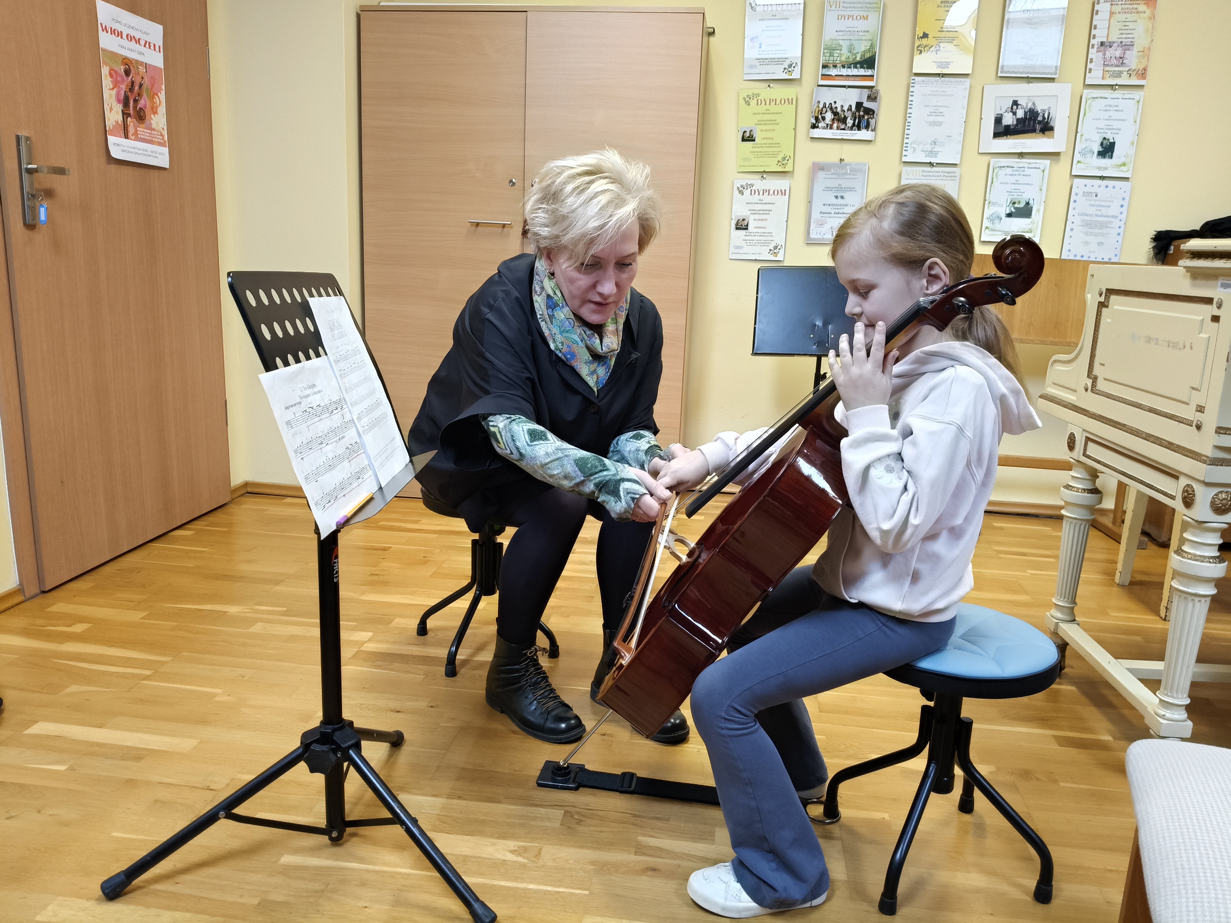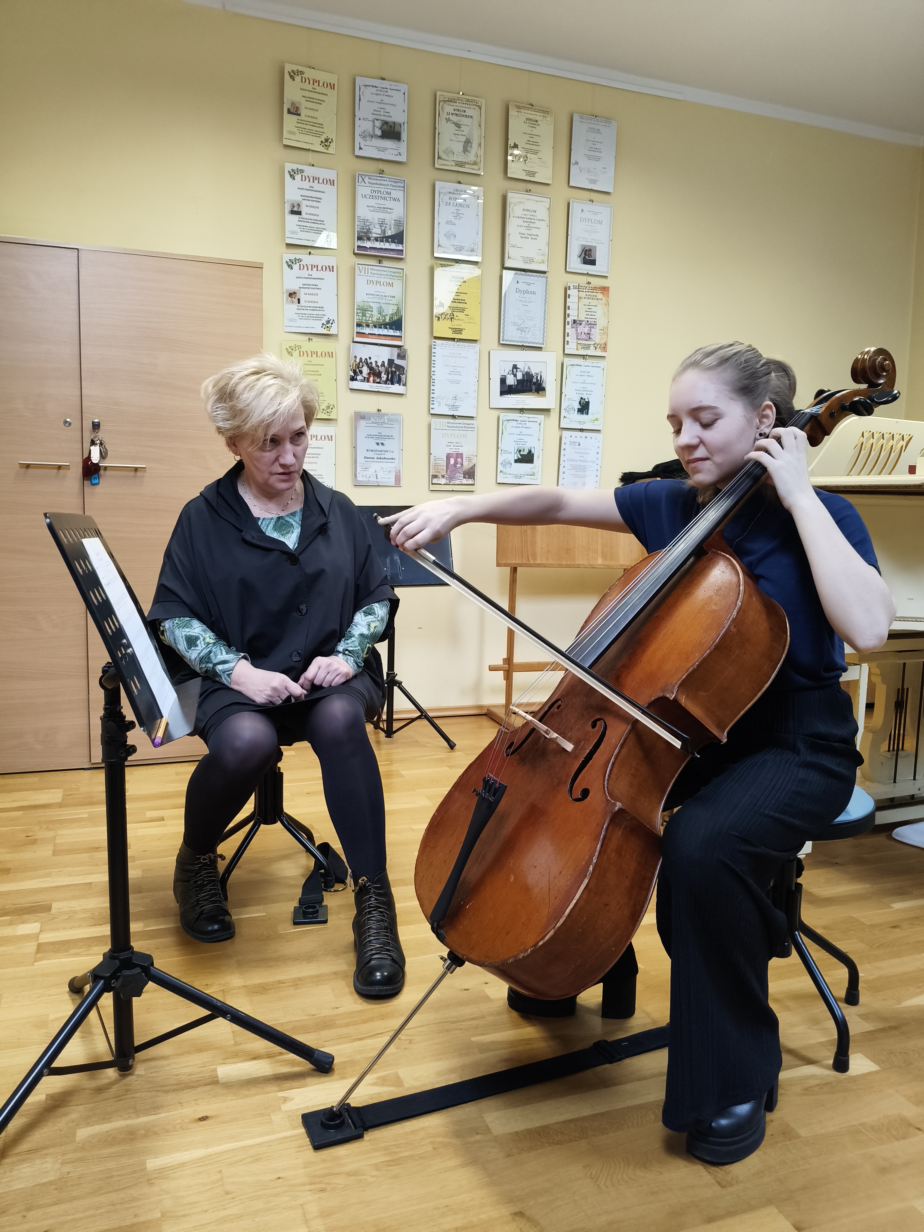 W sobotę 29 listopada 2025 r. w naszej szkole odbyły się wyjątkowe warsztaty wiolonczelowe, które poprowadziła Pani Profesor Urszula Marciniec-Mazur z Akademii Muzycznej we Wrocławiu. Uczniowie mieli okazję pracować nad techniką gry, brzmieniem oraz interpretacją, korzystając z doświadczenia i inspirujących wskazówek znakomitego pedagoga. Atmosfera była pełna skupienia, ale też radości ze wspólnego muzykowania.