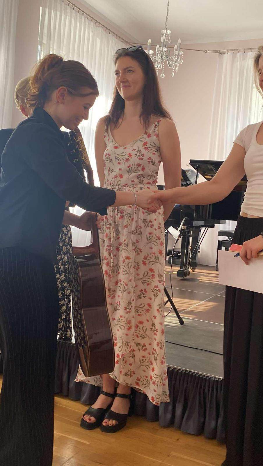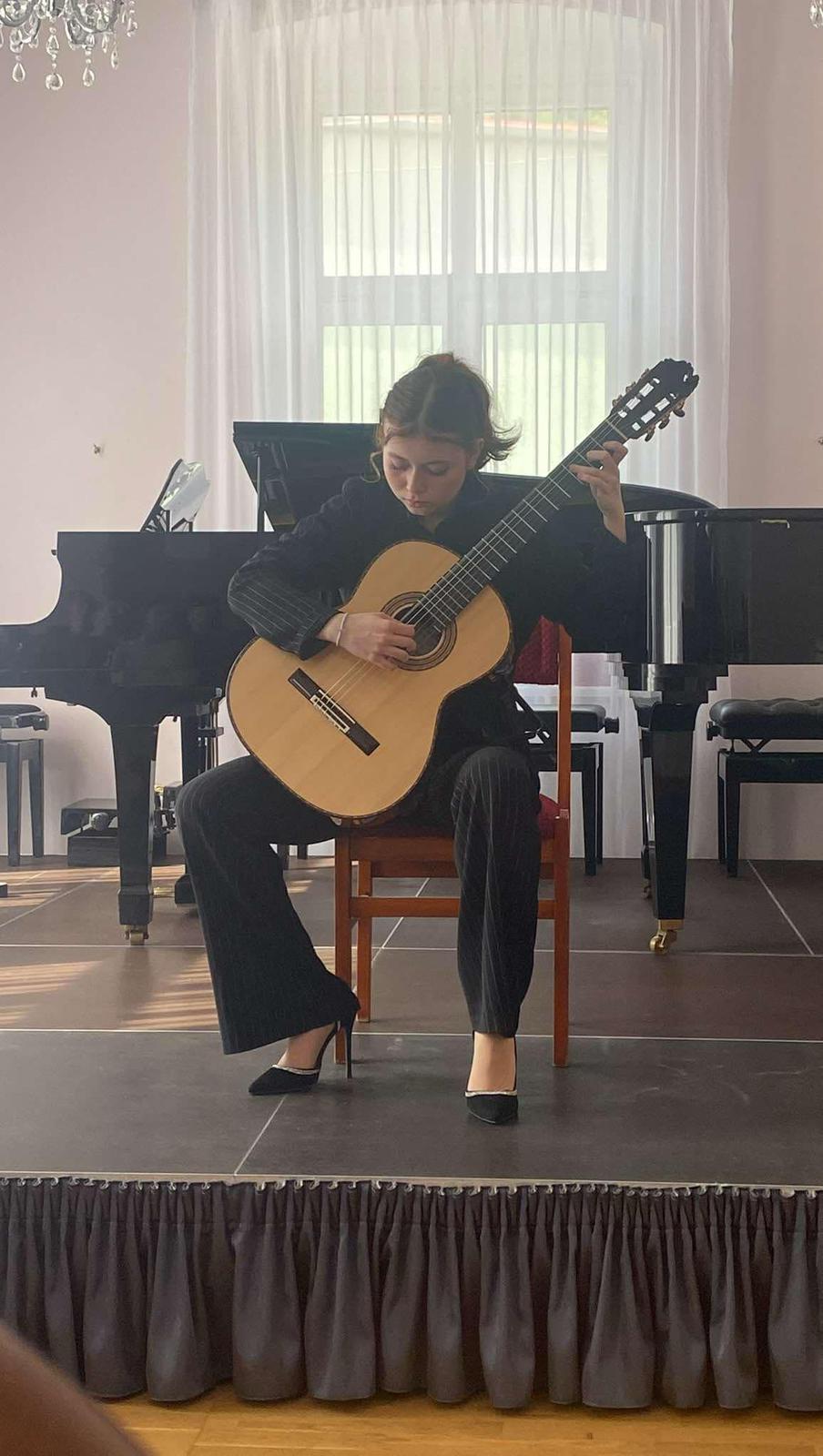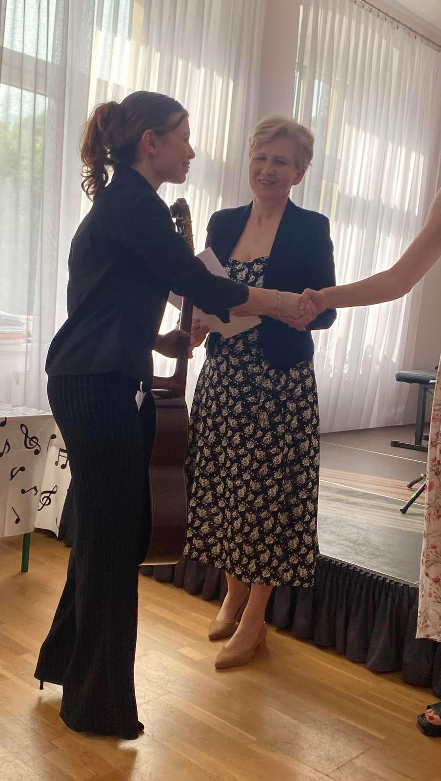 4 czerwca 2025 r. o godz. 16:00 odbył się recital dyplomowy naszej uczennicy klasy gitary szkoły II st. - Lili Wyjadłowskiej. Młoda gitarzystka zakończyła swoją naukę w naszej szkole w klasie p. Joanny Nowackiej, była również wieloletnią podopieczną p. Witolda Kozakowskiego. Koncert gitarowy solo został wzbogacony o duet fortepianowo-gitarowy przy współpracy z Mają Sawicką, tegoroczną dyplomantką w klasie fortepianu p. Angeliki Strzygockiej. Recital dostarczył wszystkim wielu emocji, a naszym dyplomantkom satysfakcji.