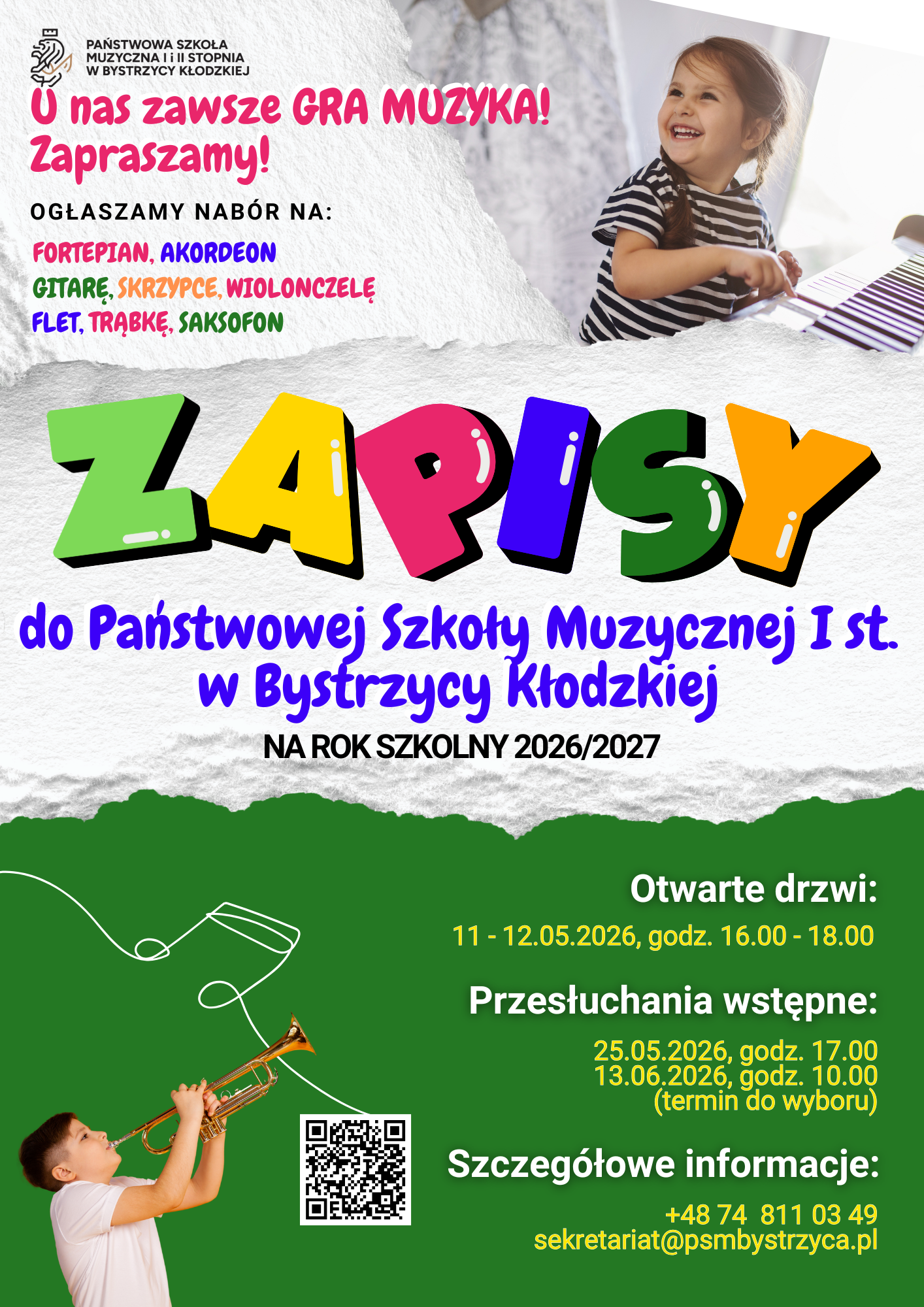 Rozpoczynamy rekrutację do PSM I stopnia na rok szkolny 2026/2027