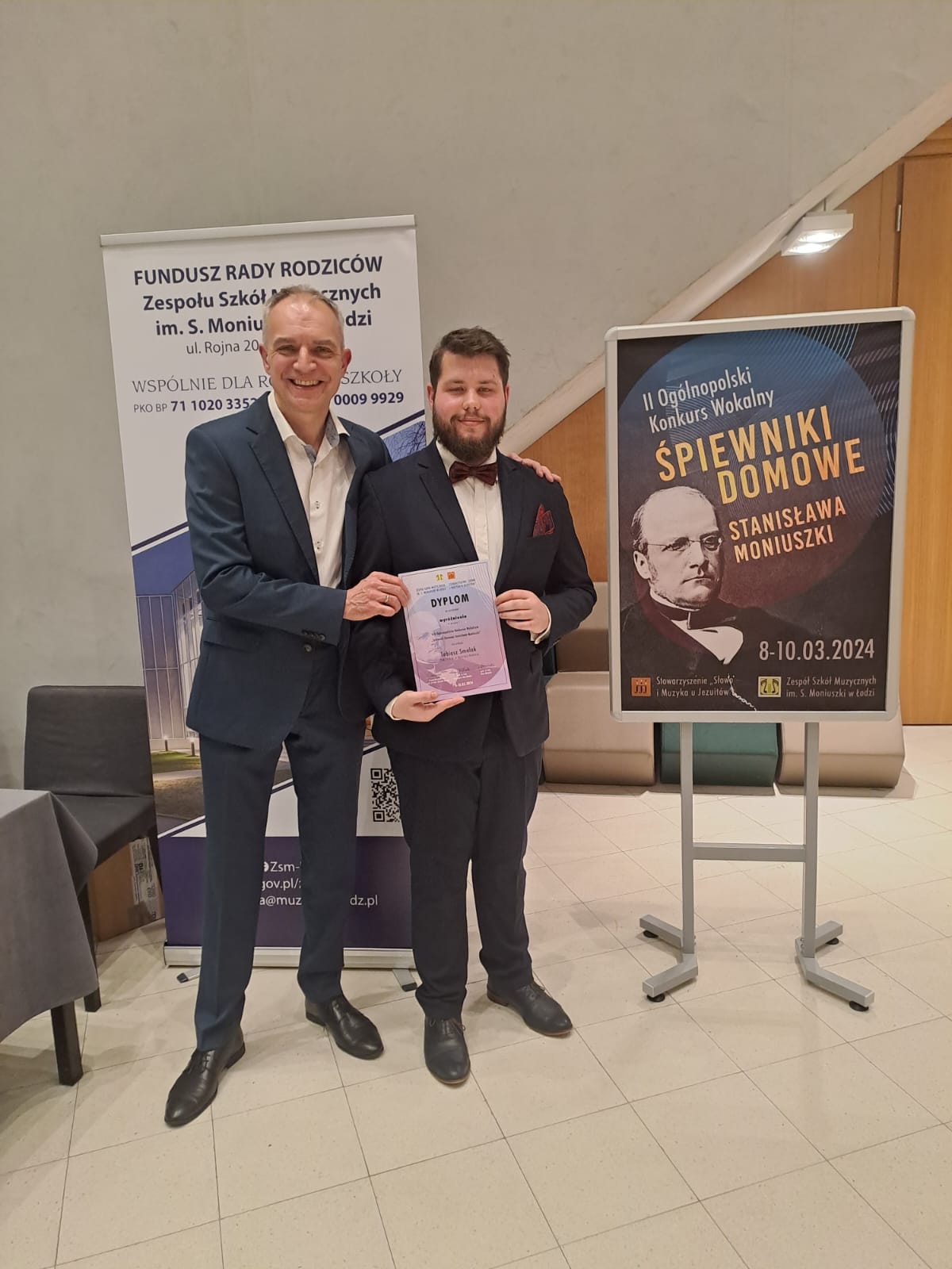 Z dumą informujemy, że nasz uczeń Tobiasz Smolak otrzymał wyróżnienie w II Ogólnopolskim Konkursie Wokalnym "Śpiewniki Domowe Stanisława Moniuszki", zorganizowanym przez ZSM w Łodzi.