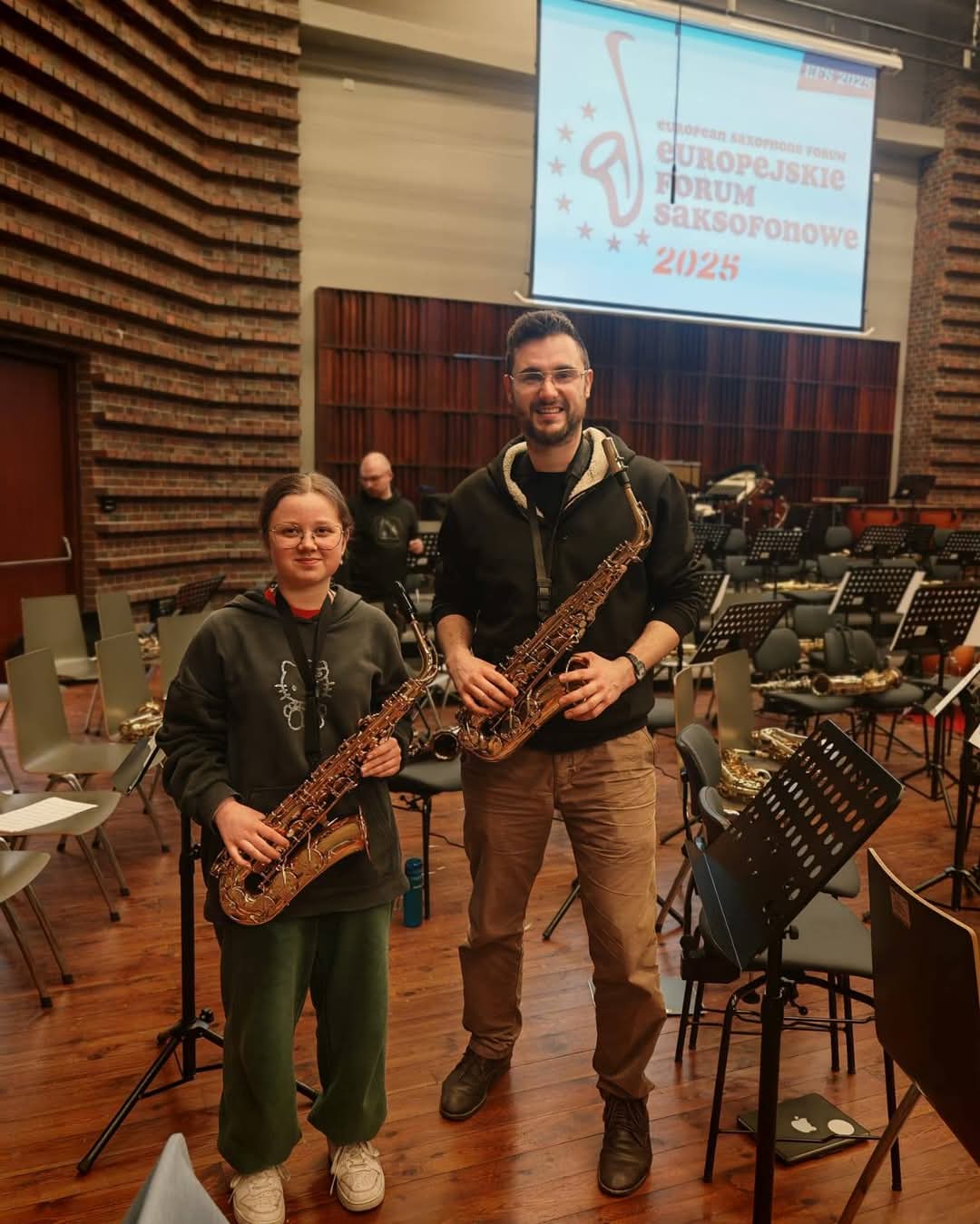 W dniach 13-15 marca 2025 nasza uczennica Kamila Klekowiecka i pan Łukasz Kotecki uczestniczyli w Europejskim Forum Saksofonowym w Akademii Muzycznej we Wrocławiu. Było to niezwykle cenne doświadczenie, które zakończyło się wspólnym koncertem wszystkich saksofonistów biorących udział w tym wydarzeniu.