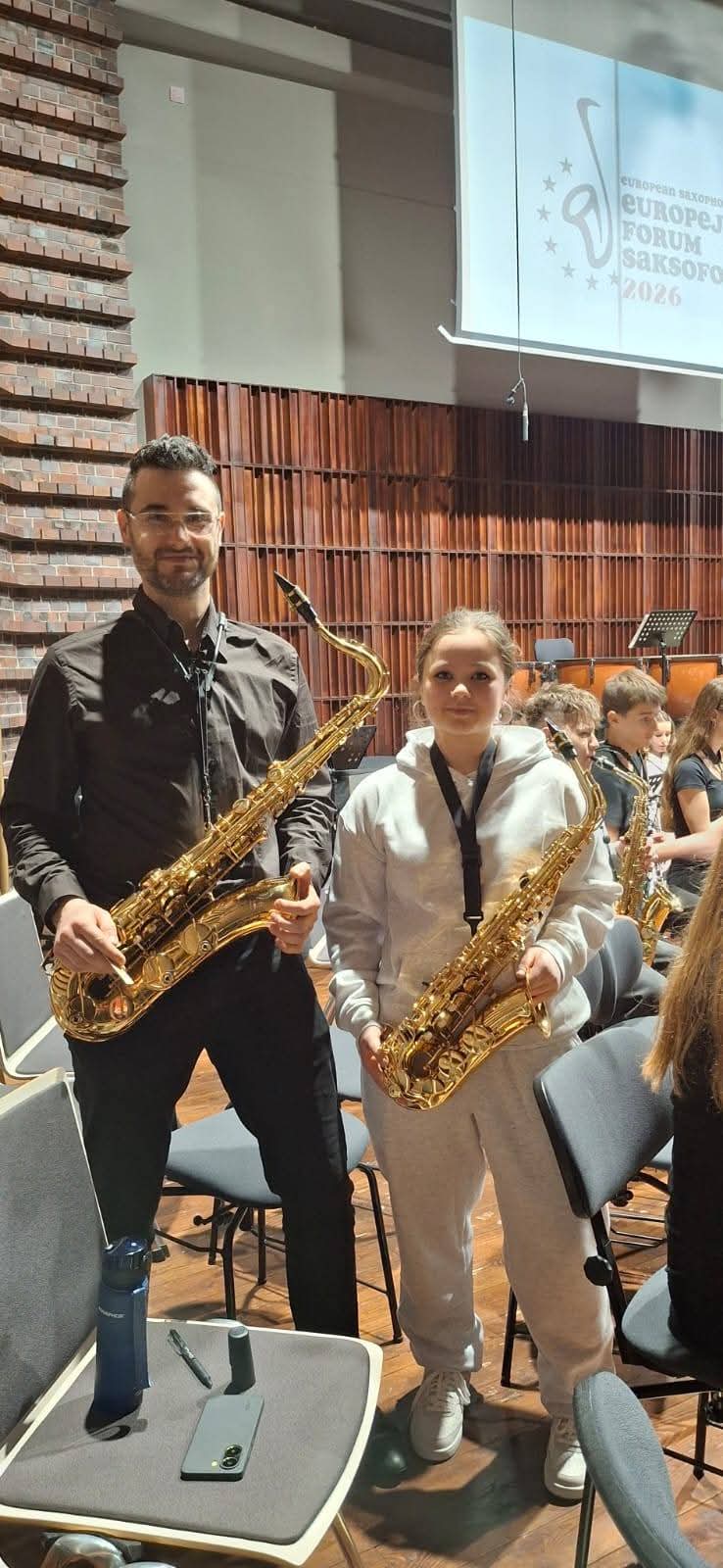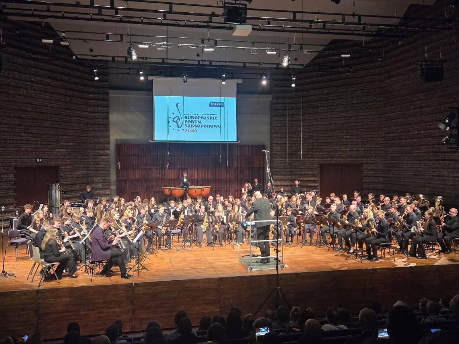 Nasza uczennica Kamila Klekowiecka wraz z nauczycielem Łukaszem Koteckim w dniach 11–14 marca wzięli udział w Europejskim Forum Saksofonowym we Wrocławiu. Wydarzenie było okazją do udziału w warsztatach, spotkaniach z wybitnymi muzykami oraz wspólnego muzykowania z saksofonistami z różnych krajów. Forum zakończyło się uroczystym koncertem orkiestry saksofonowej, który był wyjątkowym podsumowaniem kilku dni intensywnej pracy.