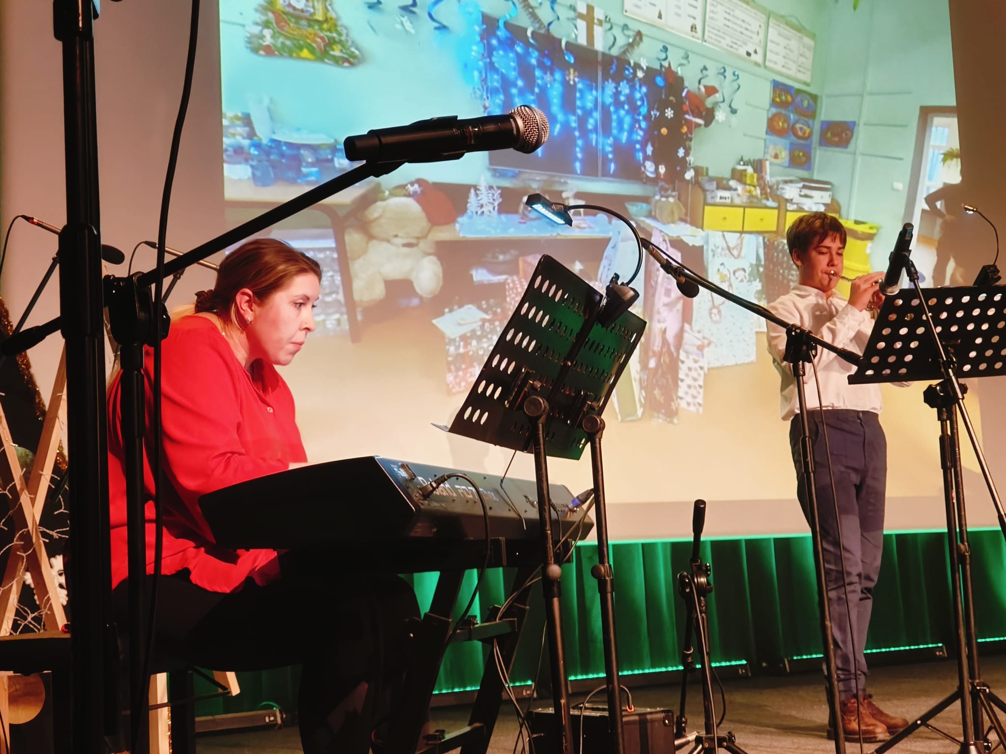 W sobotę 14 grudnia nasi uczniowie wzięli udział w koncercie pt. "Nutami za dobro", który odbył się w ramach "Bystrzyckiego kolędowania". Występy dedykowane były powodzianom i osobom niosącym im pomoc. W wykonaniu młodych instrumentalistów zabrzmiały kolędy i inne świąteczne utwory. Wszyscy pięknie się zaprezentowali. Uczniom towarzyszyły: pani Angelika Strzygocka i pani Iryna Yakymets.