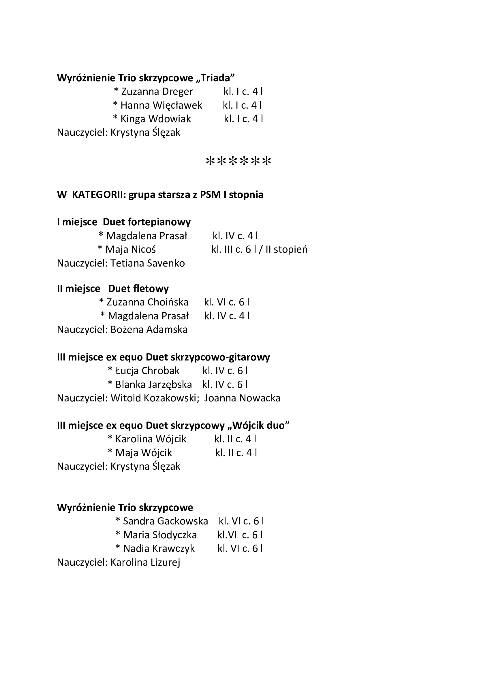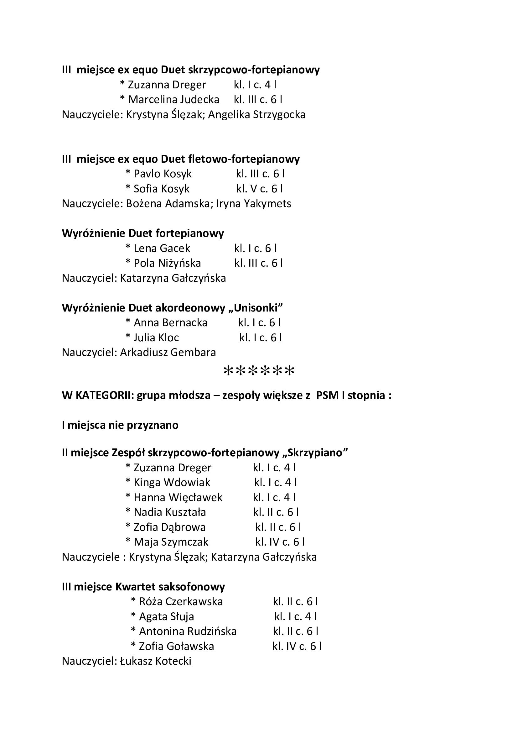 XXXIII Szkolny Konkurs Zespołów Kameralnych
