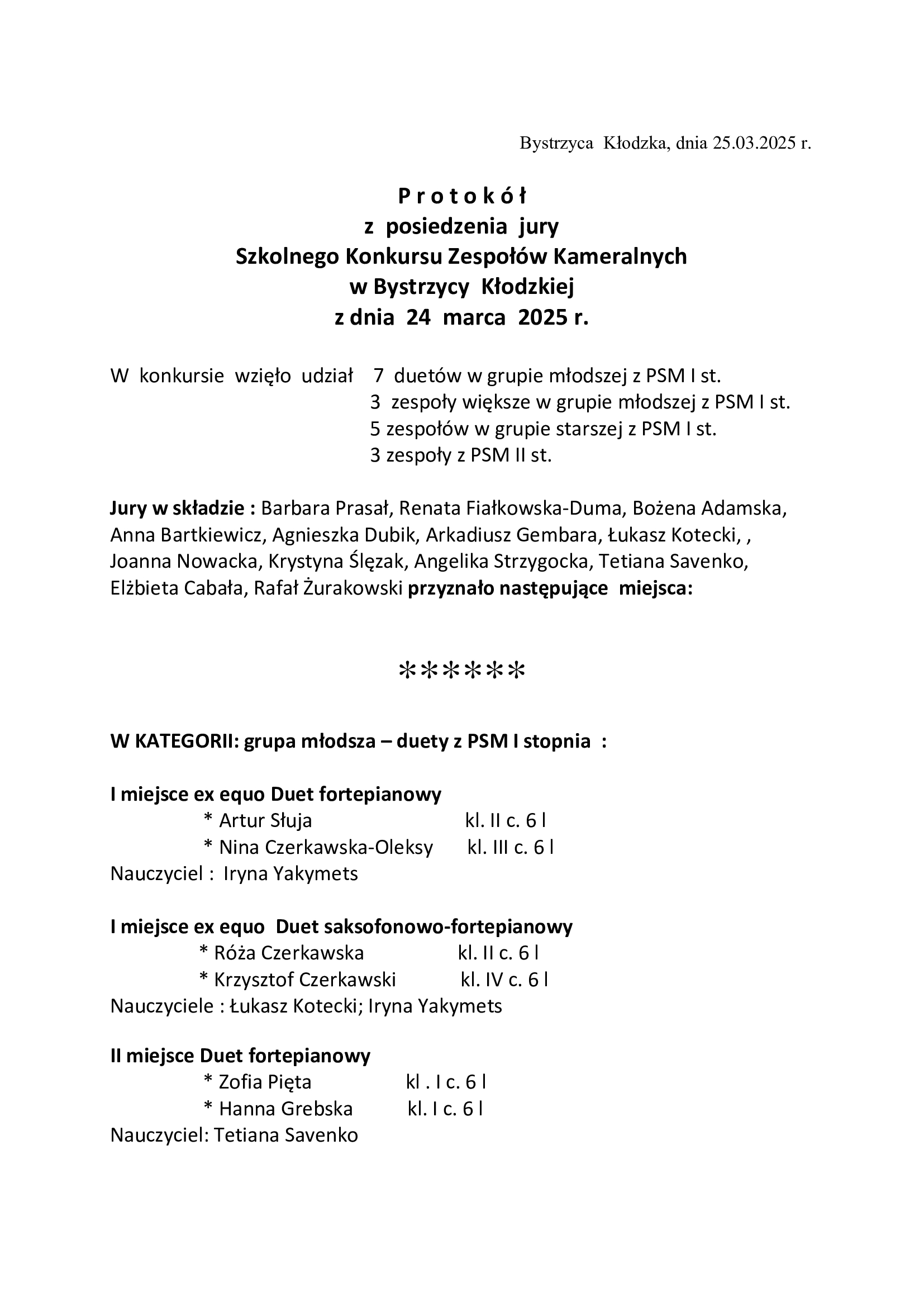 W poniedziałek 24 marca 2025 r. w naszej szkole odbył się XXXIII Szkolny Konkurs Zespołów Kameralnych. Wszystkim wykonawcom gratulujemy pięknych występów, a na oficjalne wręczenie nagród i koncert laureatów zapraszamy 7 kwietnia o godzinie 17.30.