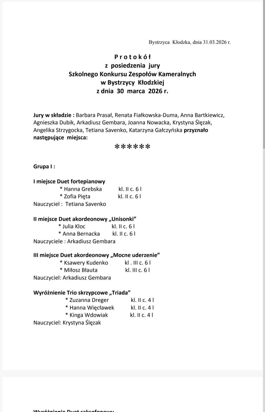 W ostatni poniedziałek marca odbył się w naszej szkole - już po raz trzydziesty czwarty - Szkolny Konkurs Zespołów Kameralnych.